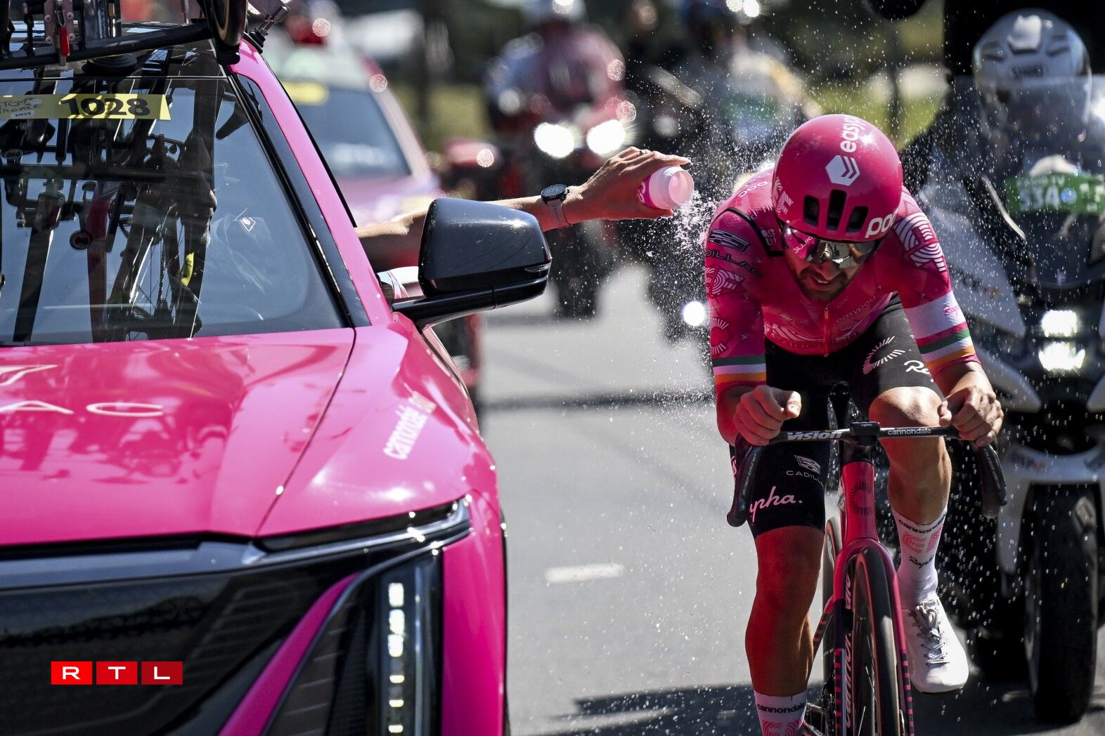 Et huet allerdéngs bis nom Tëschesprint bei Kilometer 22 gedauert, bis d‘Echappée sech forméiert huet. Bis dohinner hunn Intermarché-Wanty fir de Biniam Girmay a Lidl-Trek fir de Jonathan Milan d‘Vitesse am Peloton héich gehalen, fir datt d‘Leit mat de séiere Been sech Punkte fir d‘Sprinterklassement konnt siche goen. De Milan huet sech déi 20 Punkte geholl, virum Mathieu van der Poel (17) an dem Girmay (15).