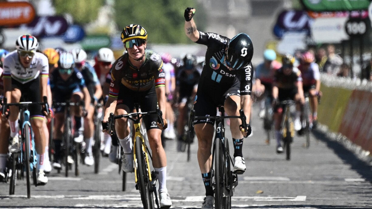 La première lauréate de ce Tour de France Femmes est Lorena Wiebes (Team DSM) qui s’impose au sprint devant Marianne Vos (Team Jumbo Visma) et Lotte Kopecky (Team SD Worx). Elle est donc également la première femme à endosser le maillot jaune de leader du classement général provisoire.