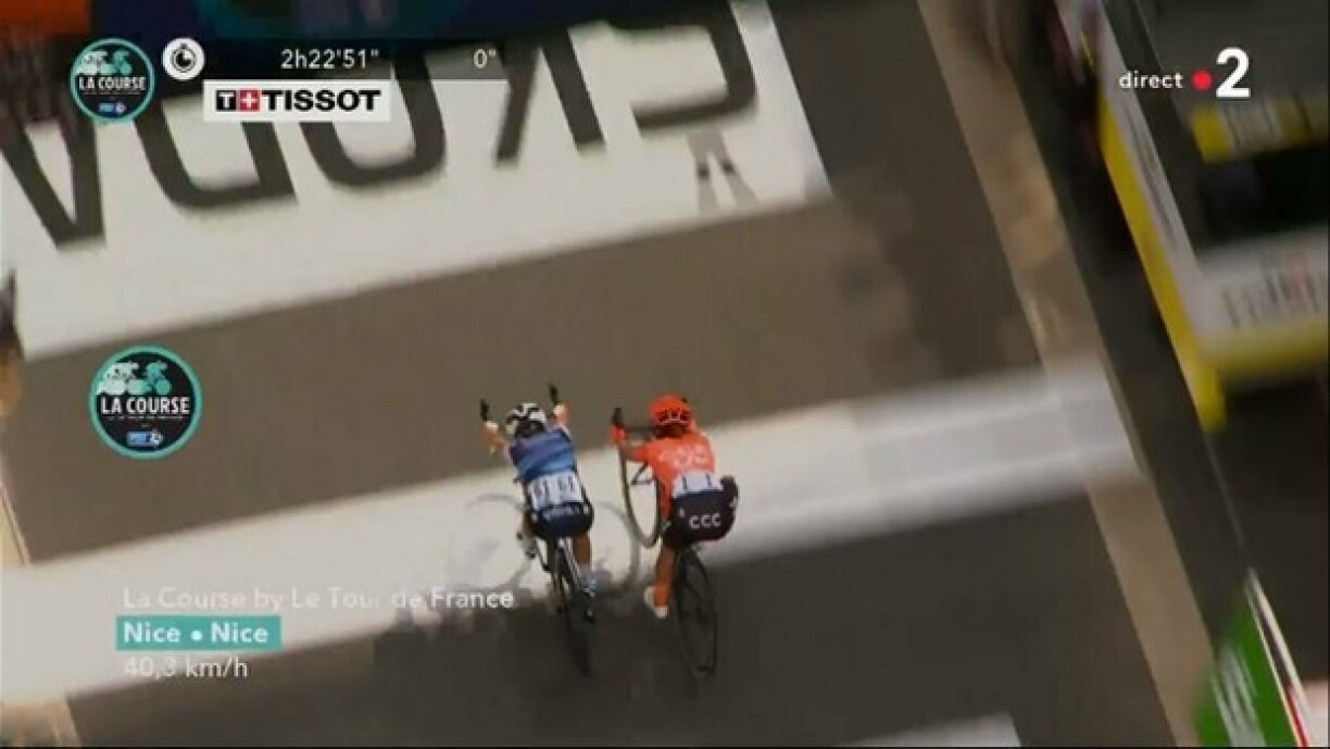 Dës Echappée sollt awer kee Succès hunn a sou goufe si och erëm agefaangen. Duerno war et d’Weltmeeschterin Annemiek van Vleuten, déi beim zweete Passage vun der Côte de Rimiez attackéiert hat. Dëser Attack konnte just 5 weider Dammen eppes dogéint setzen, ënnert anerem d’Marianne Vos, déi sech am leschte Joer d’Victoire séchere konnt.