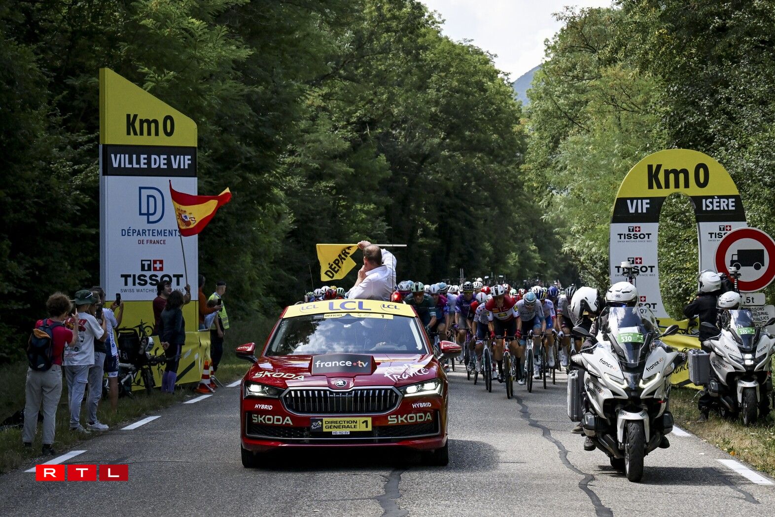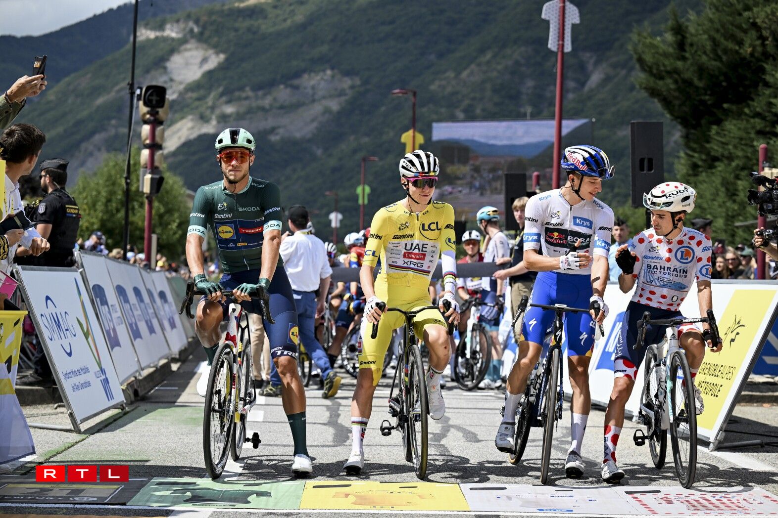 Nom Depart zu Vif waren et d’Equipiere vum Maillot Vert Jonathan Milan (LIDL-TREK), déi den Tempo am Peloton héichgehalen hunn, fir et hirem Sprinter ze erlaben, Punkte beim Tëschesprint ze huelen. Dat ass dem Italiener och no gutt 20 Kilometer gegléckt. De Milan ass als Éischten iwwer de wäisse Stréch gefuer a konnt seng Avance am Klassement vum beschte Sprinter op den Tadej Pogacar op 92 Punkten ausbauen.