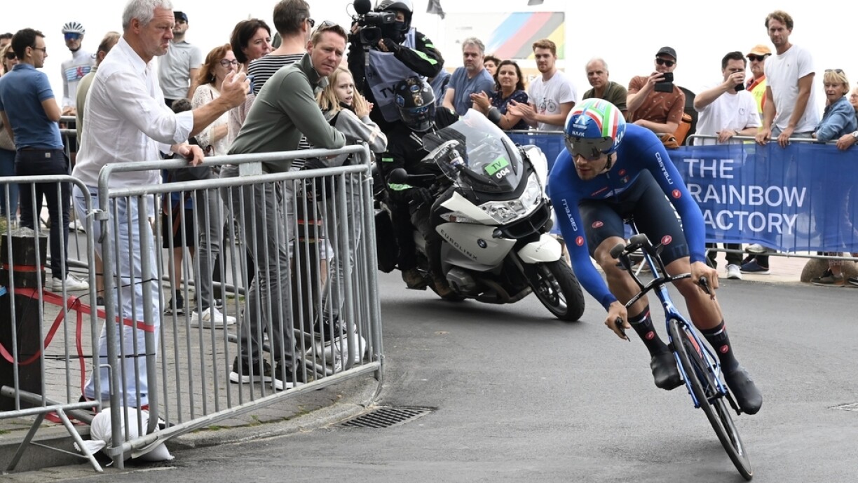 Um Sonndeg war et an der Belsch den Optakt vun den UCI-Stroosseweltmeeschterschaften am Cyclissem. Beim Zäitfueren iwwer 43,3 km vu Knokke-Heist op Brügge war den Filippo Ganna um Enn dee séiersten a séchert sech domat de WM-Titel am Eenzelzäitfuere bei den Hären. Lëtzebuerger ware keng um Depart.