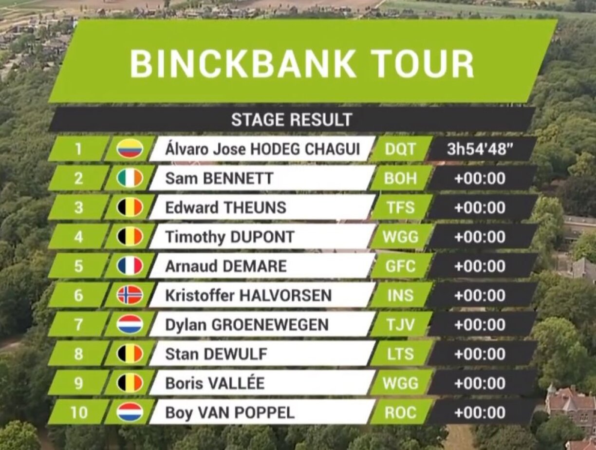 Vir hat de Kolumbianer Alvaro Hodeg déi stäerkste Been a konnt sech virum Sam Bennett behaapten. Op déi 3. Plaz koum, och dank dem gudden Ufuere vum Alex Kirsch, den Edward Theuns. Den Tim Wellens bleift iwwerdeems am Leader Maillot.