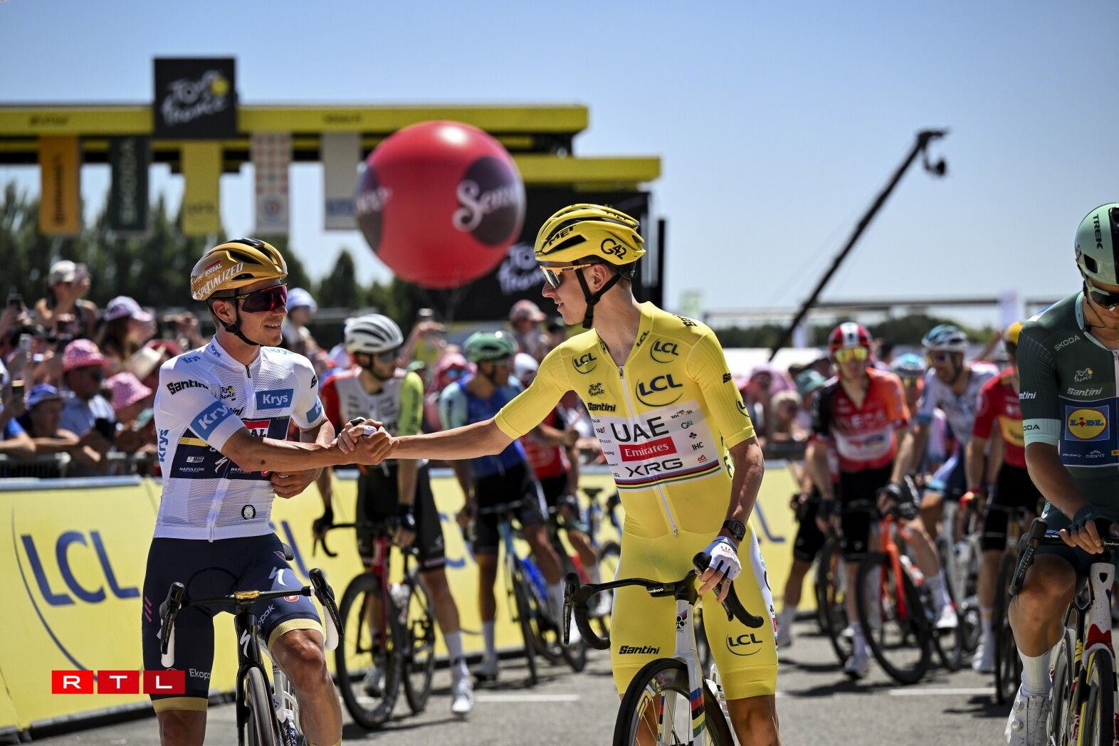 Den Tadej Pogacar koum no 171,4 Kilometer als 42. un a bleift domat am Maillot Jaune, muss den Trikot vum beschte Sprinter awer un de Milan ofginn. Am Generalklassement huet sech näischt geännert. De Sloween huet weider 54 Sekonne Virsprong op de Remco Evenepoel an 1'11'’ op de Kévin Vauquelin.