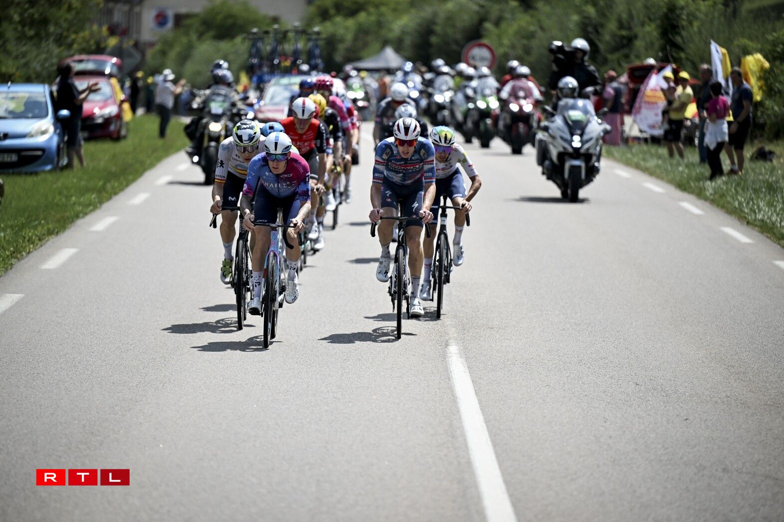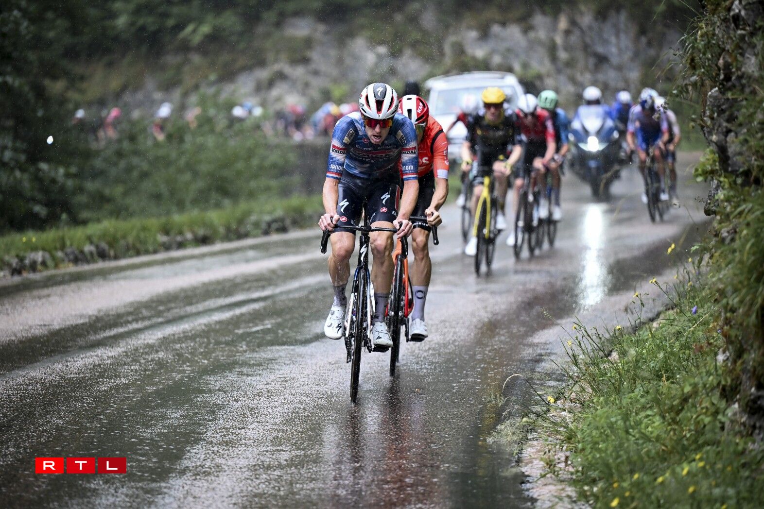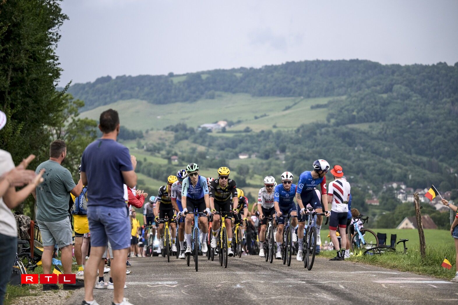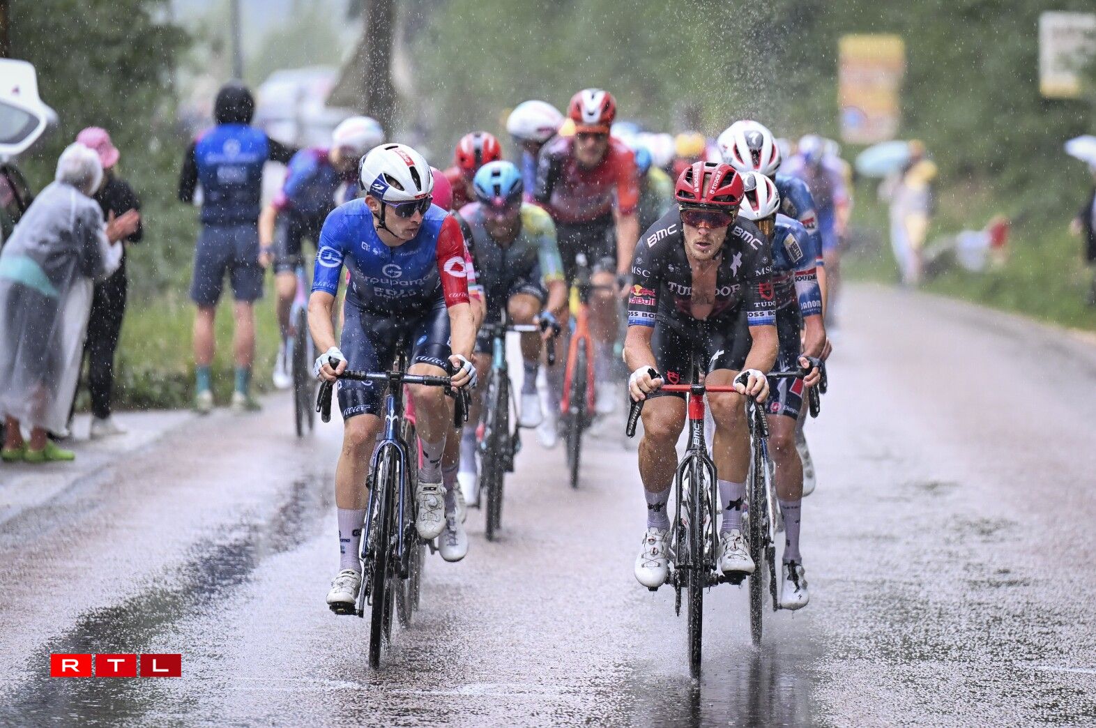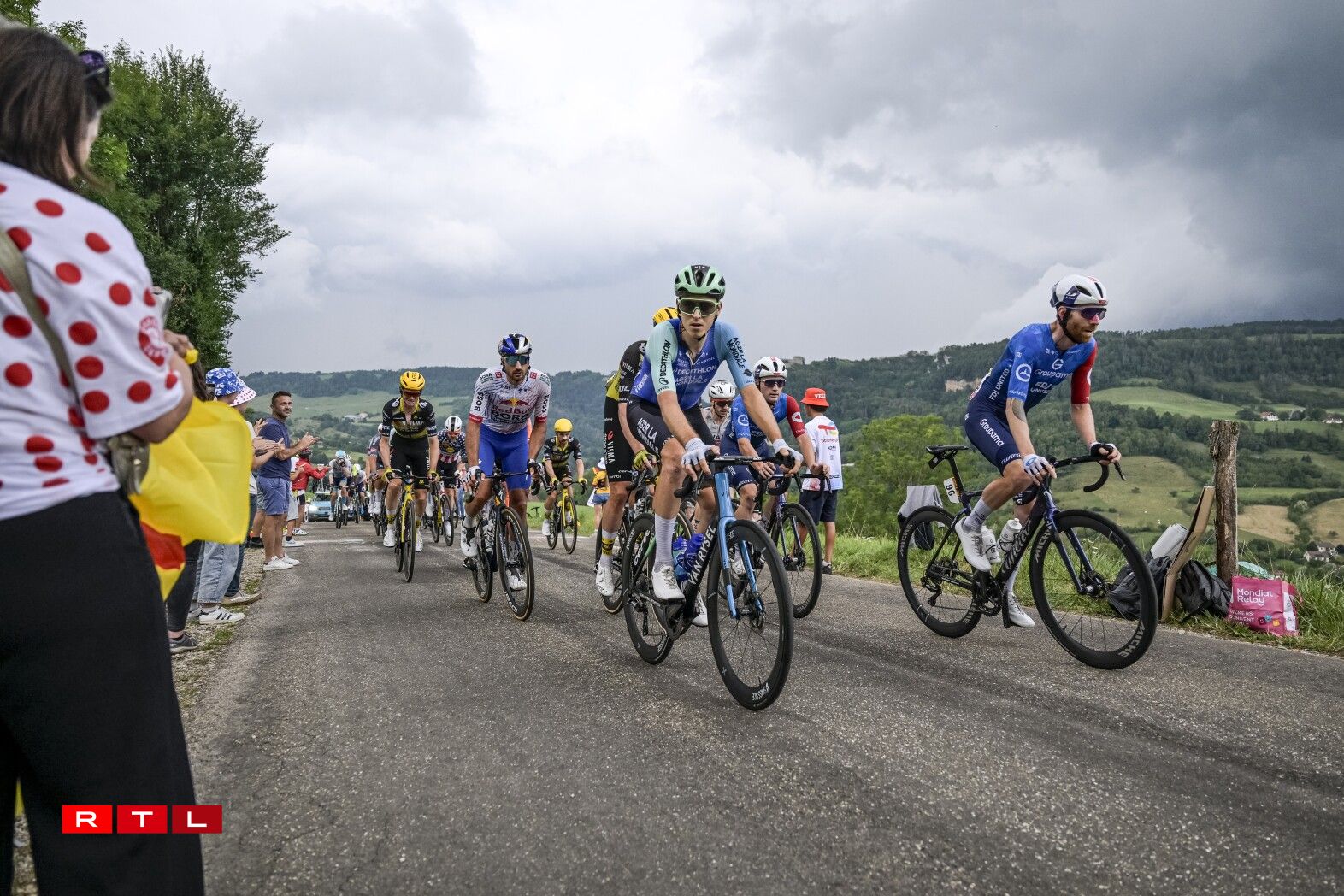 De Peloton mam Maillot Jaune Tadej Pogacar, dem Zweete Jonas Vingegaard an dem Drëtte Florian Lipowitz hat op der zweetleschter Etapp e Retard vu ronn siwe Minutten.