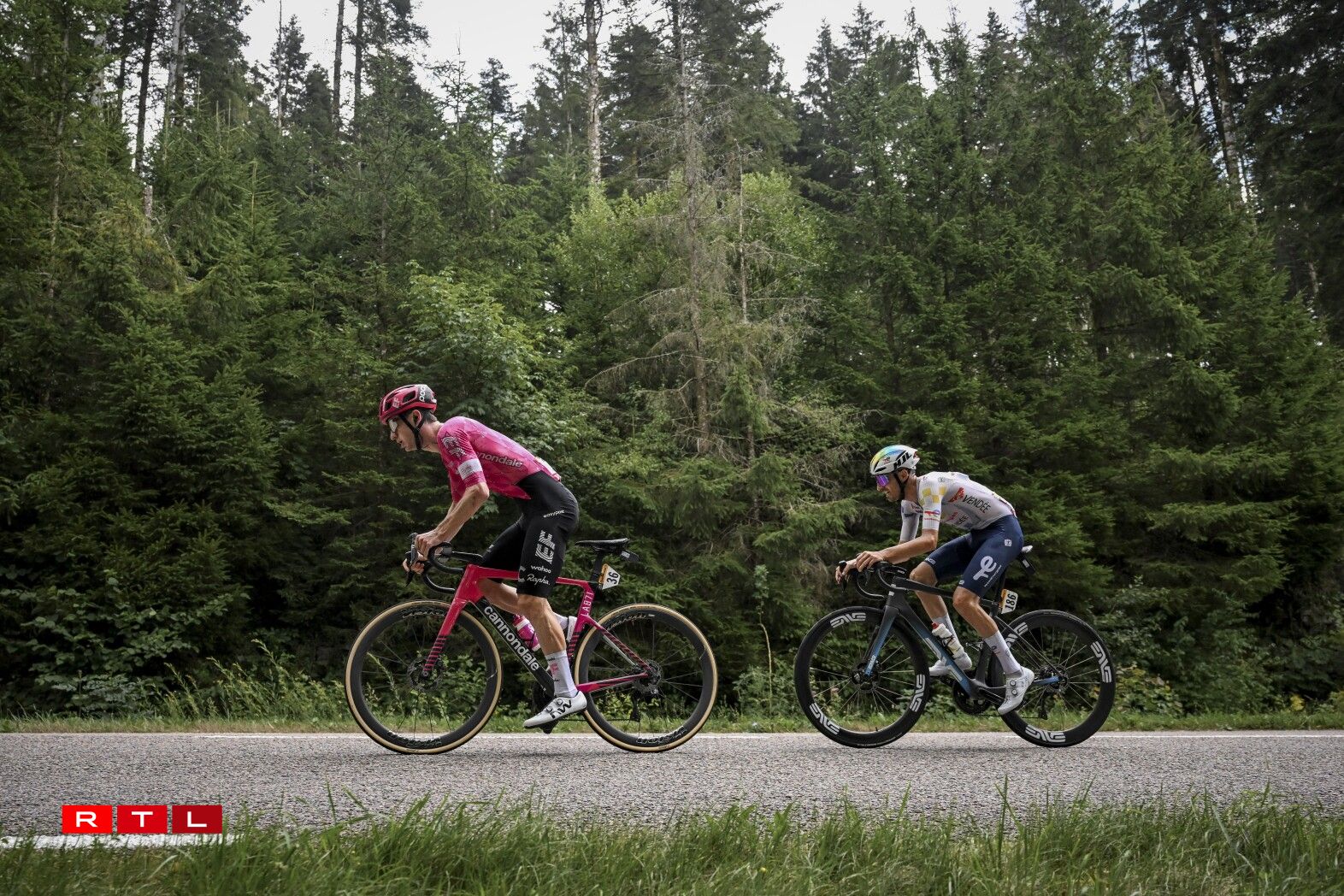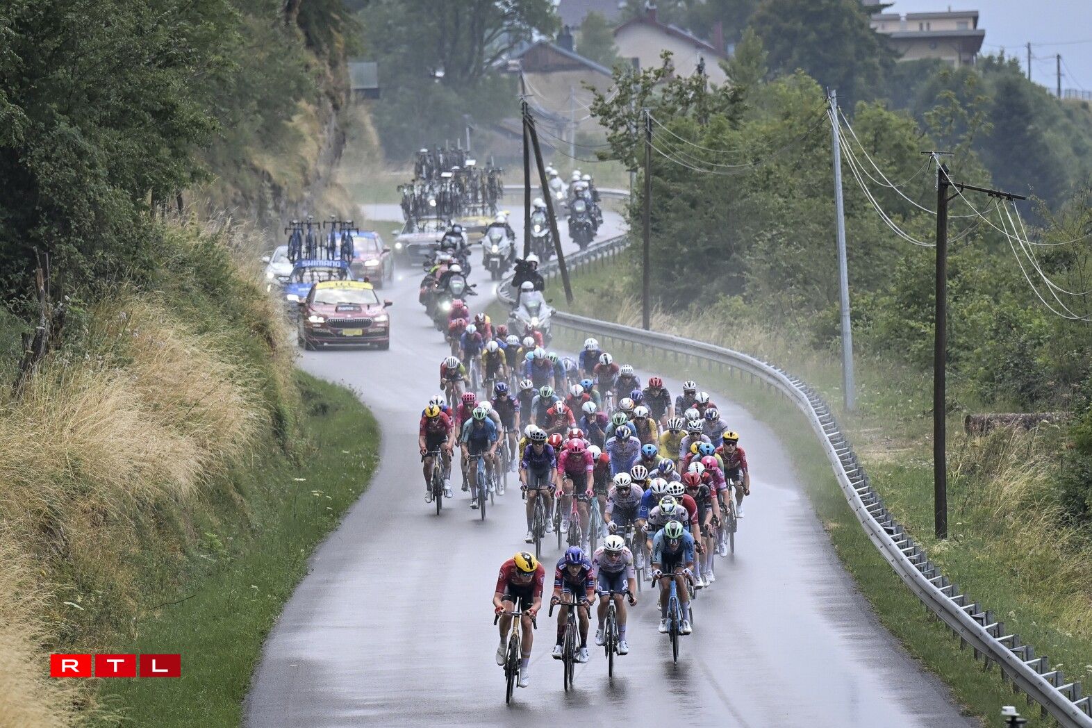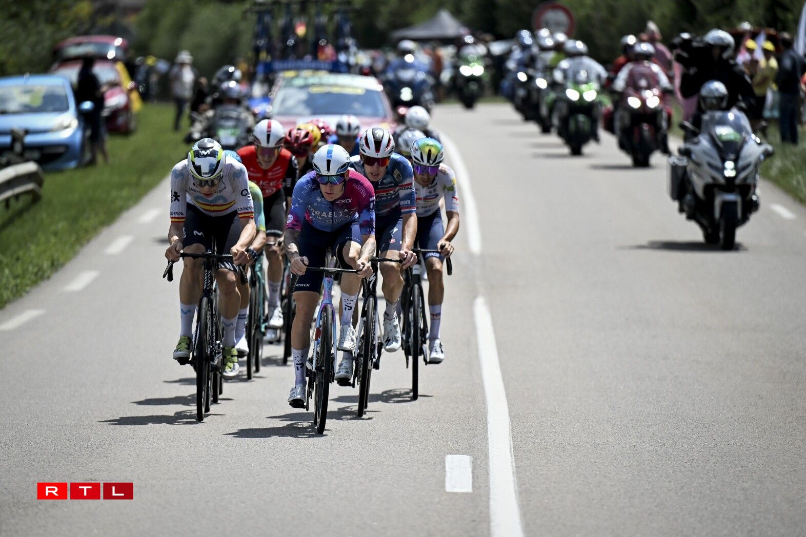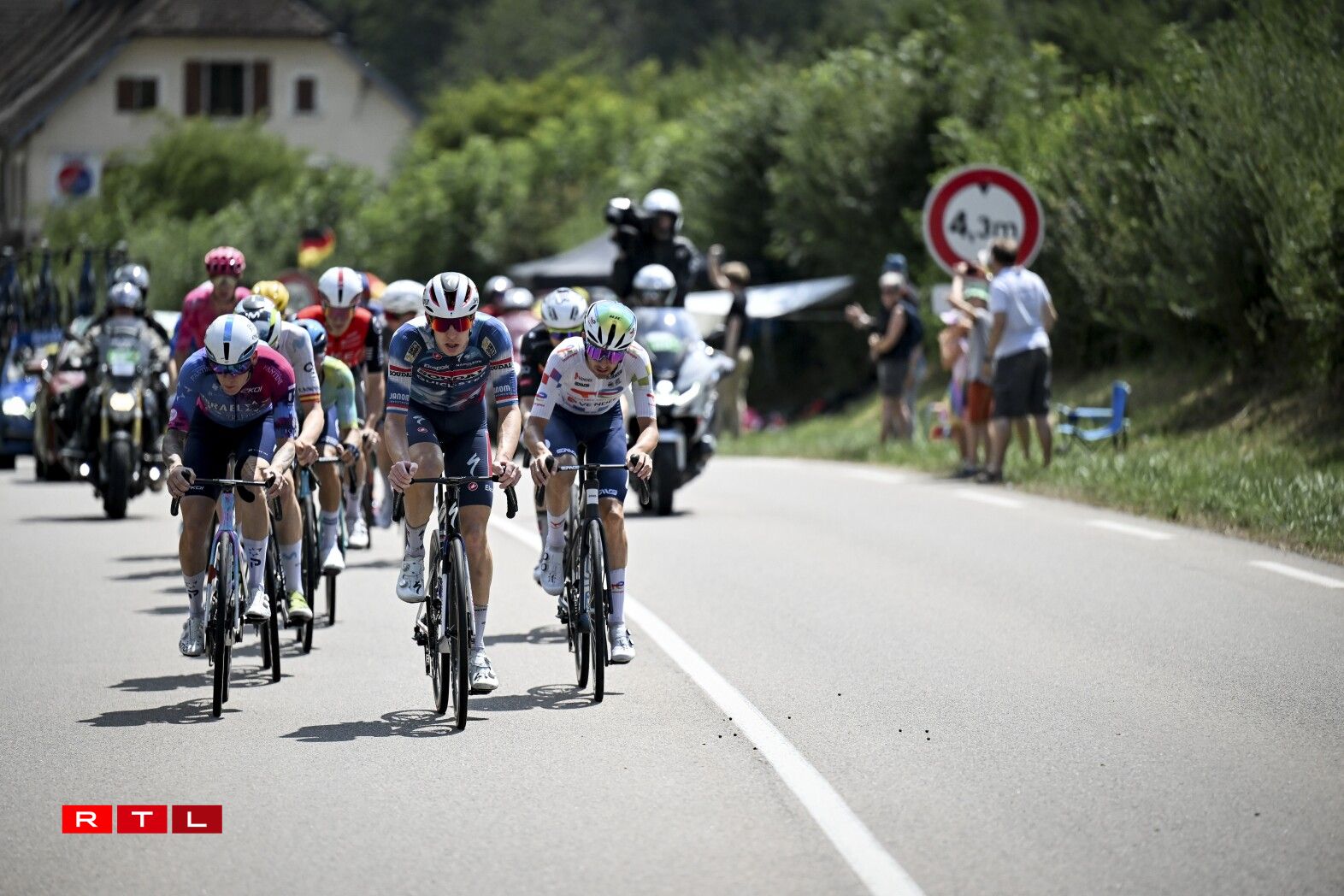 De Peloton mam Maillot Jaune Tadej Pogacar, dem Zweete Jonas Vingegaard an dem Drëtte Florian Lipowitz hat op der zweetleschter Etapp e Retard vu ronn siwe Minutten.