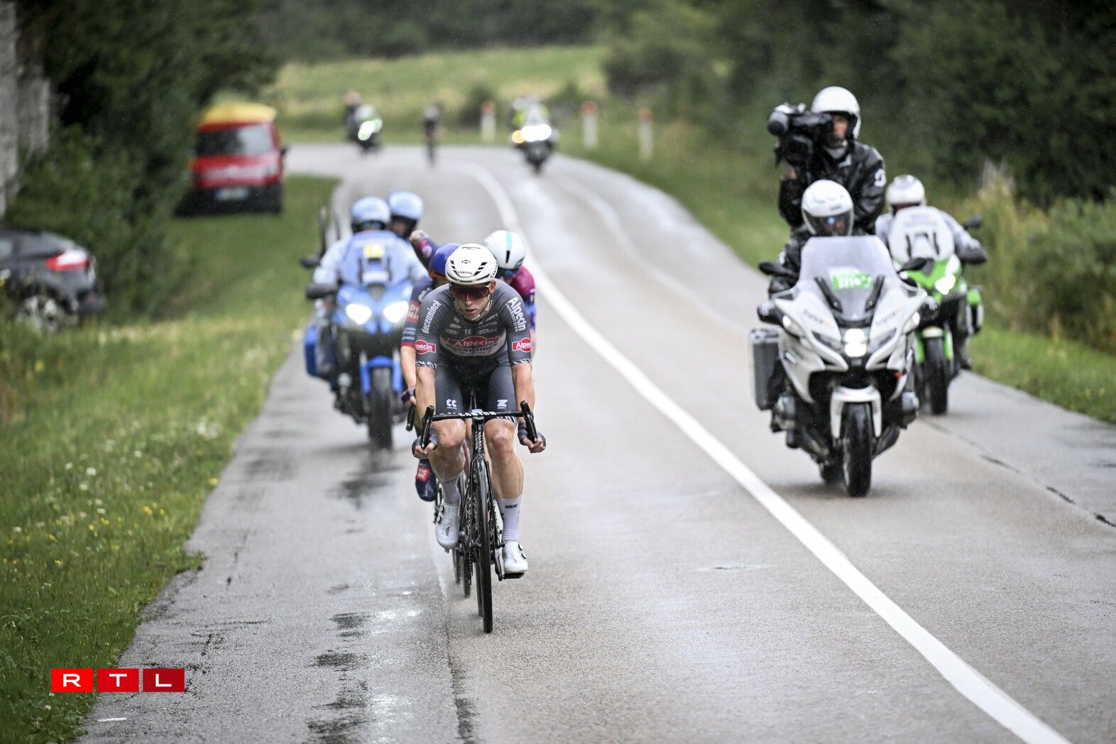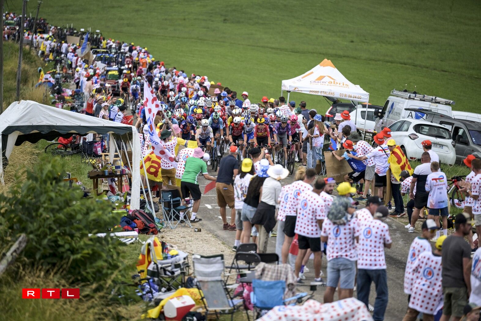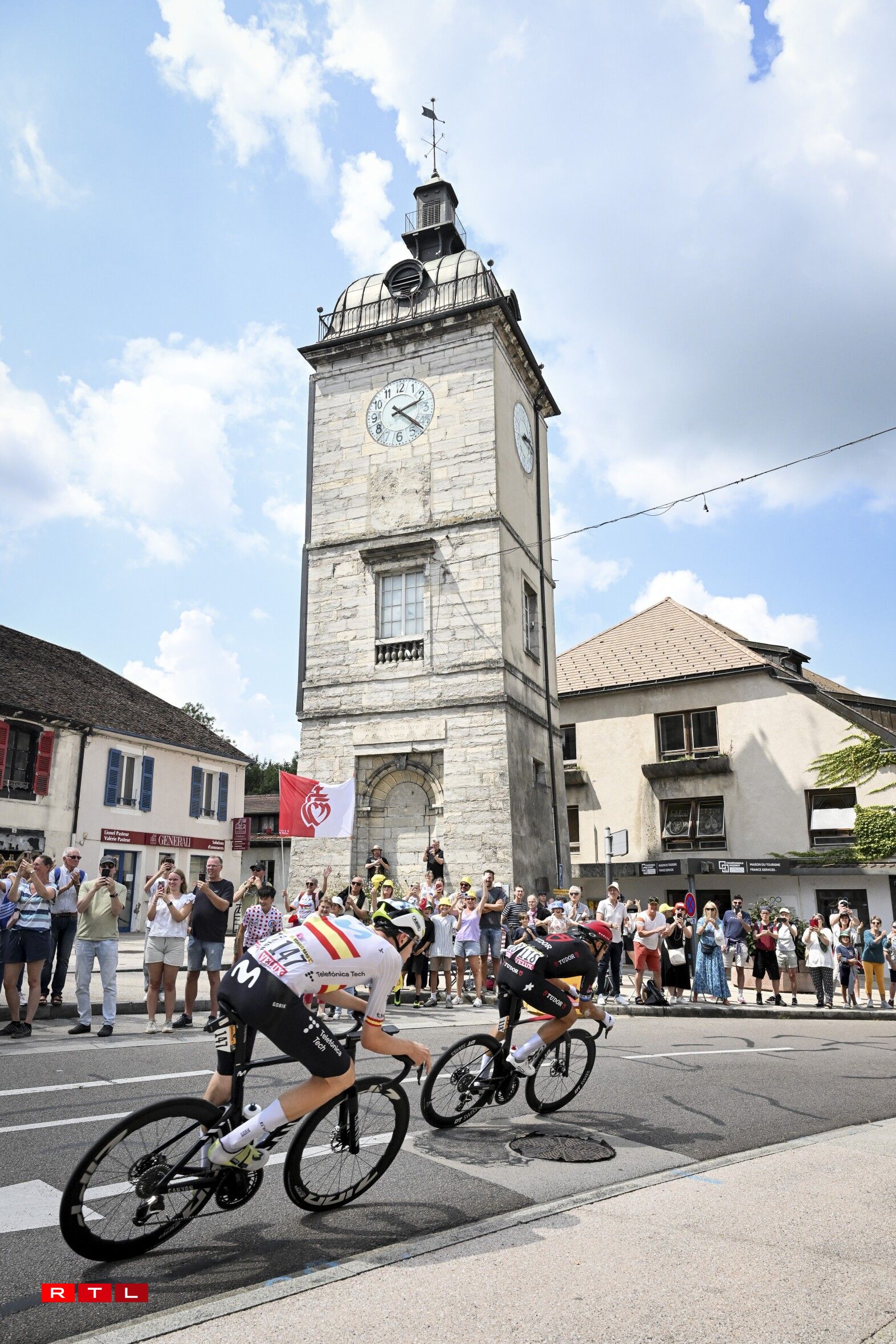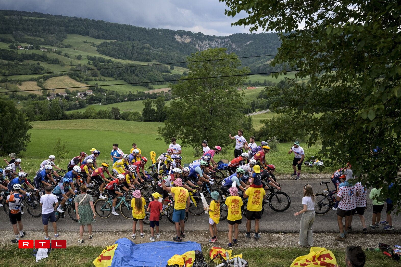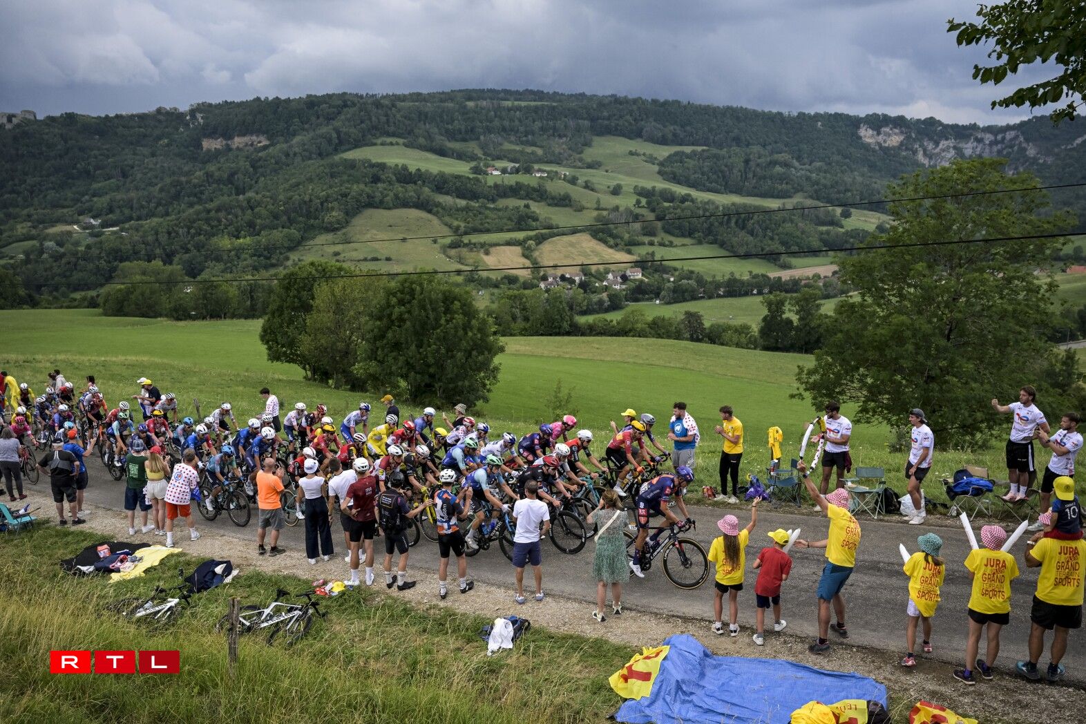 De Peloton mam Maillot Jaune Tadej Pogacar, dem Zweete Jonas Vingegaard an dem Drëtte Florian Lipowitz hat op der zweetleschter Etapp e Retard vu ronn siwe Minutten.