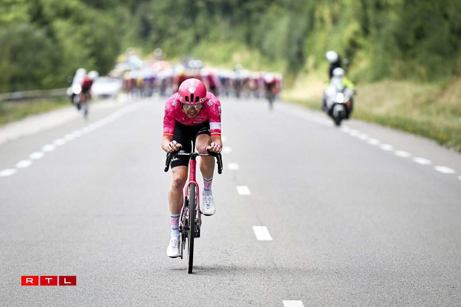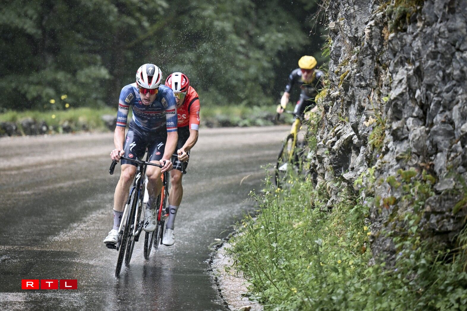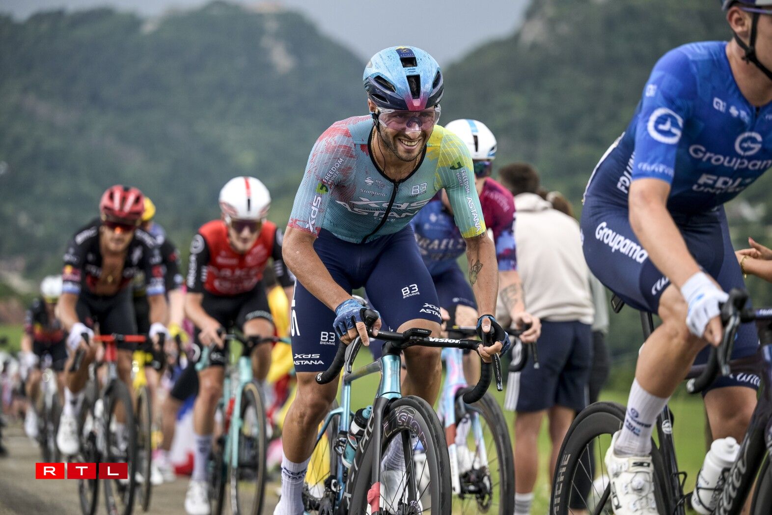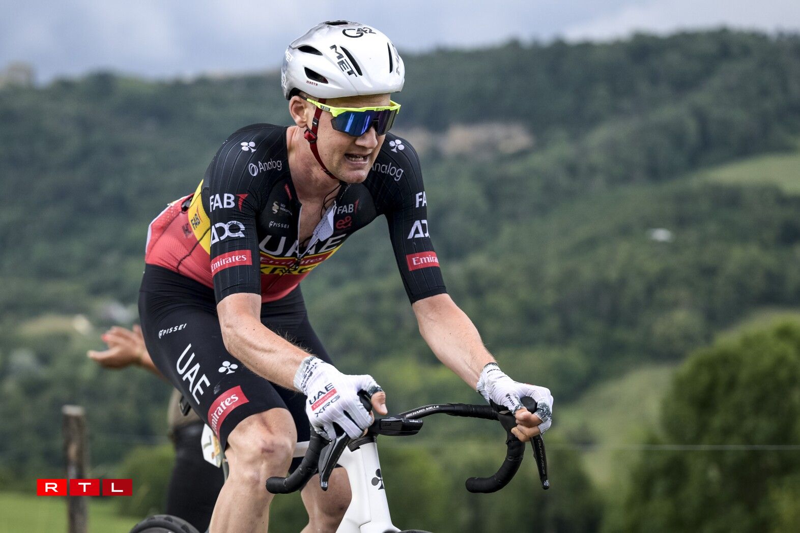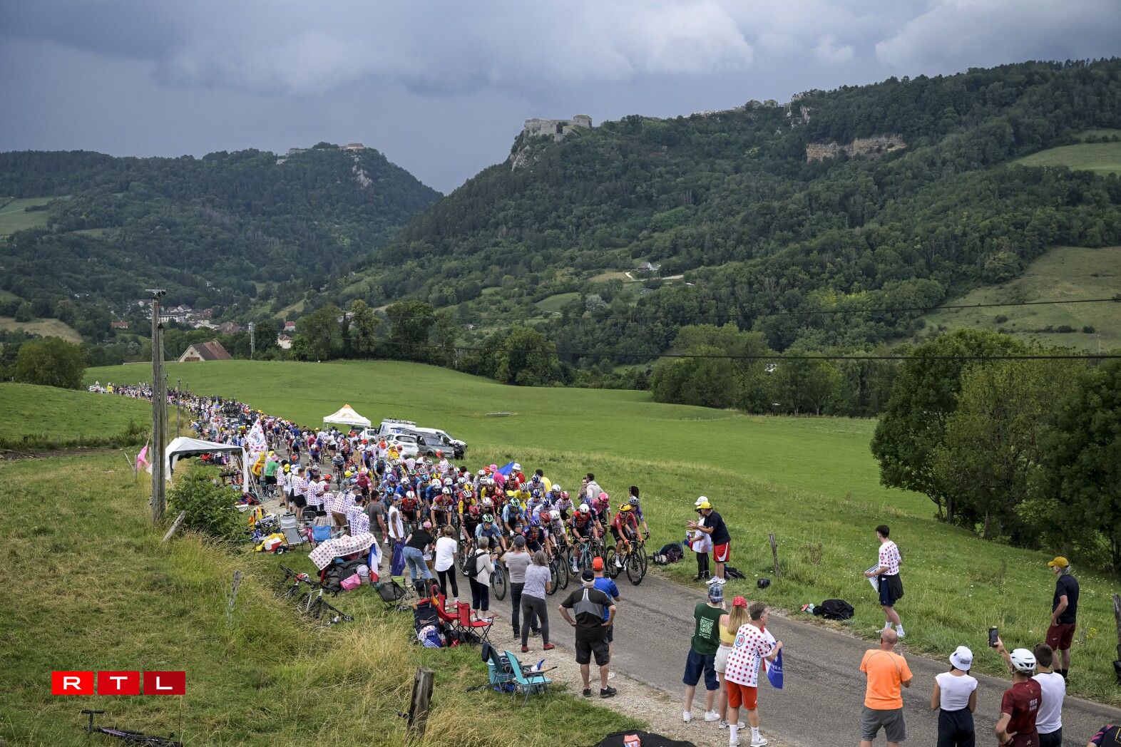 De Peloton mam Maillot Jaune Tadej Pogacar, dem Zweete Jonas Vingegaard an dem Drëtte Florian Lipowitz hat op der zweetleschter Etapp e Retard vu ronn siwe Minutten.