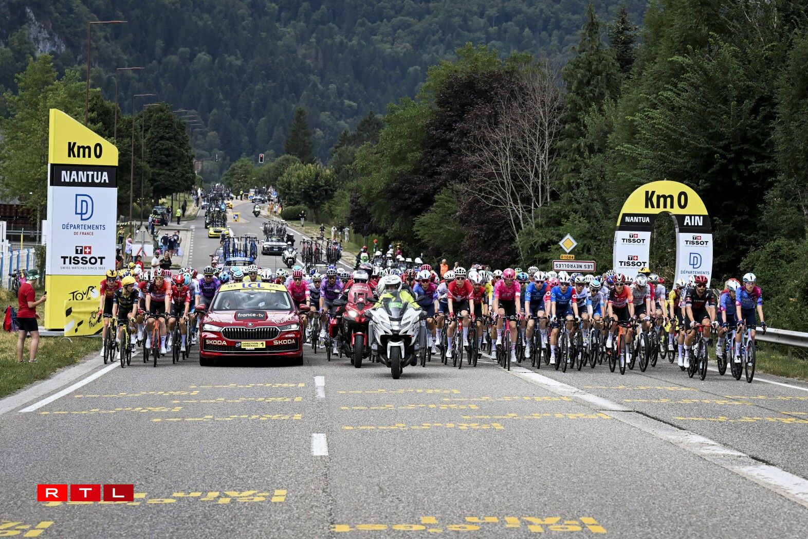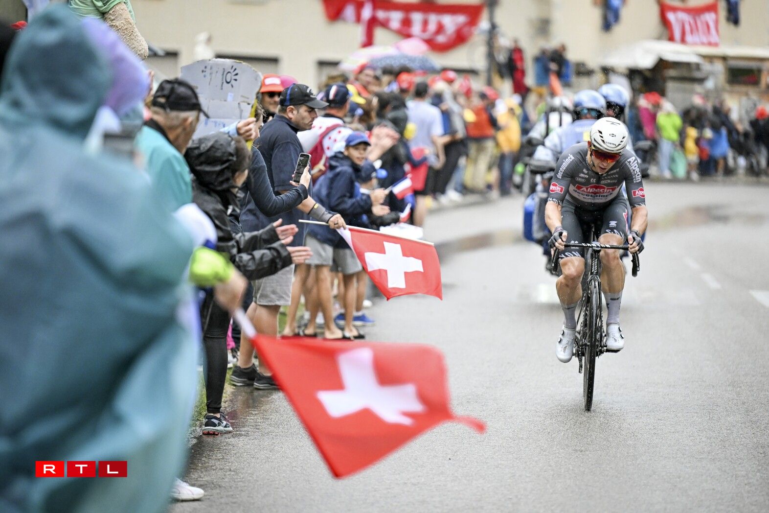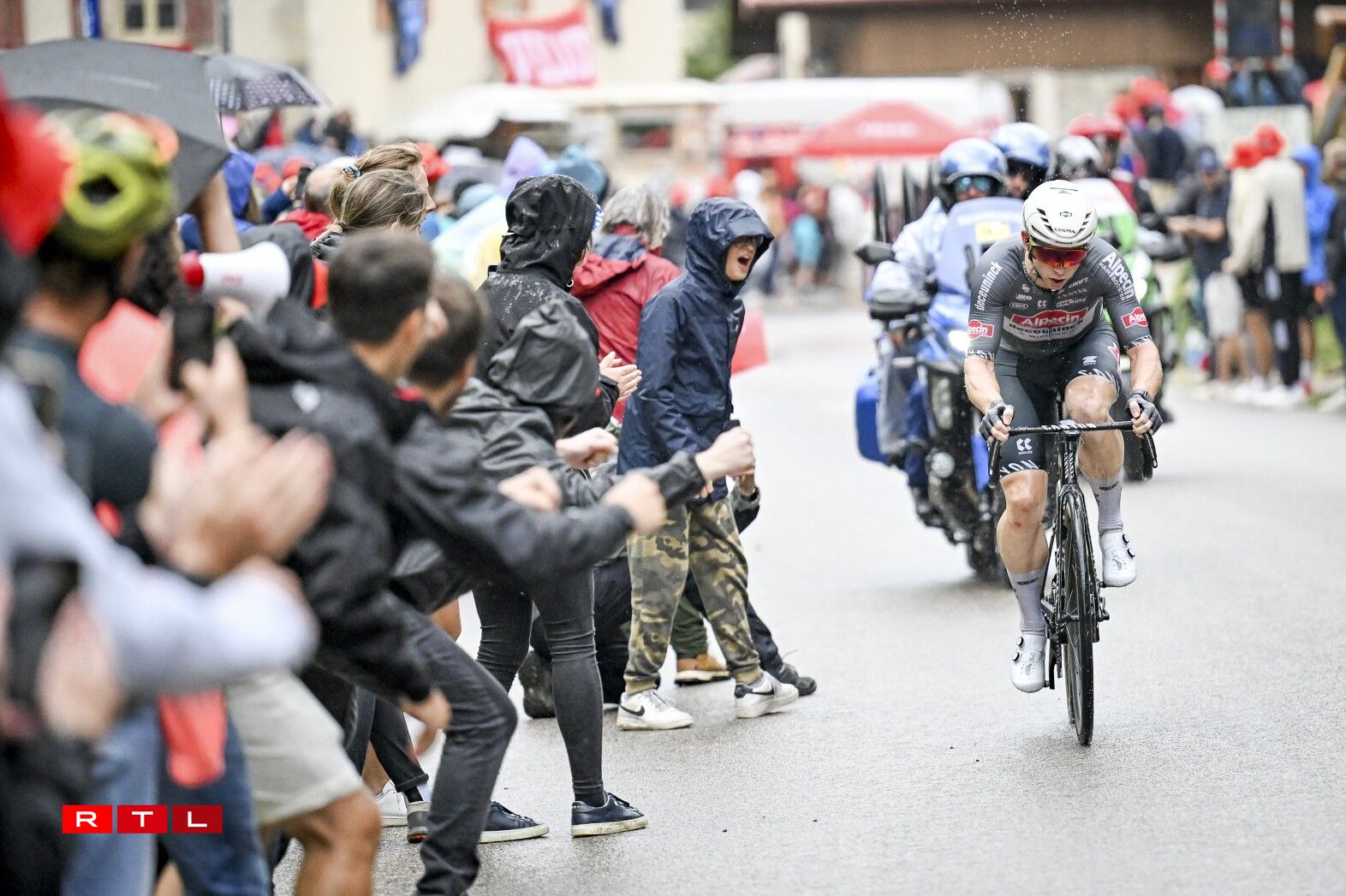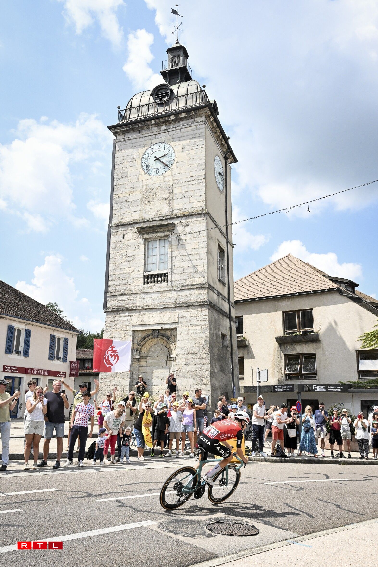 De Peloton mam Maillot Jaune Tadej Pogacar, dem Zweete Jonas Vingegaard an dem Drëtte Florian Lipowitz hat op der zweetleschter Etapp e Retard vu ronn siwe Minutten.