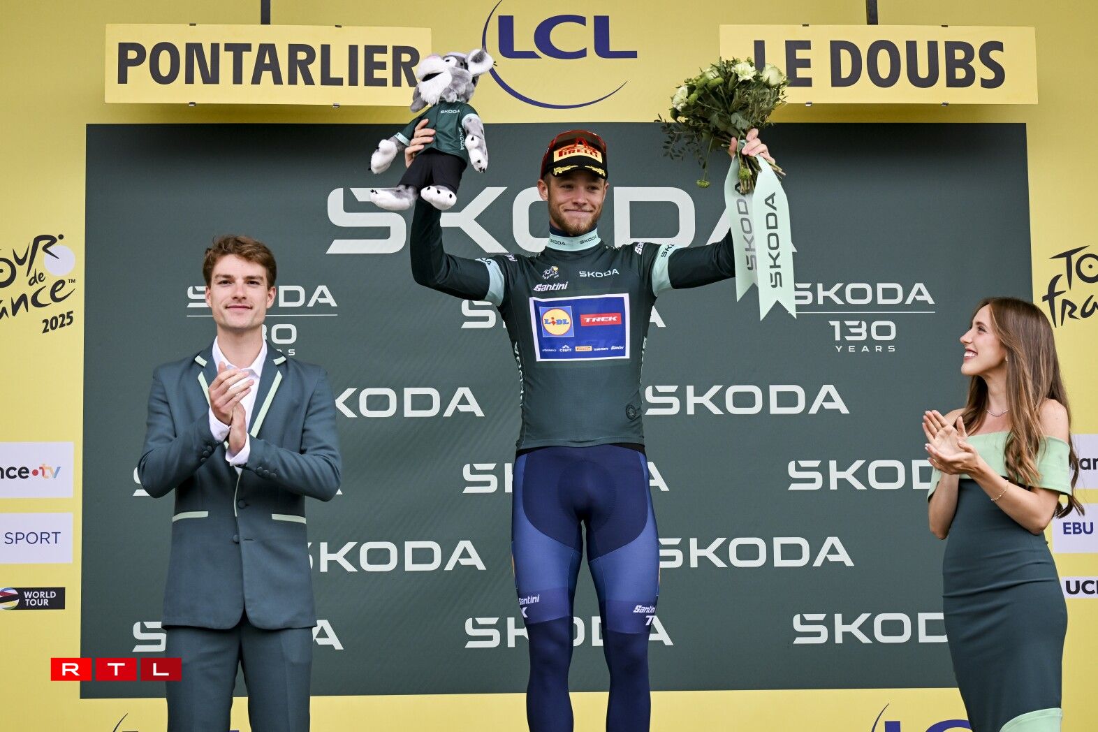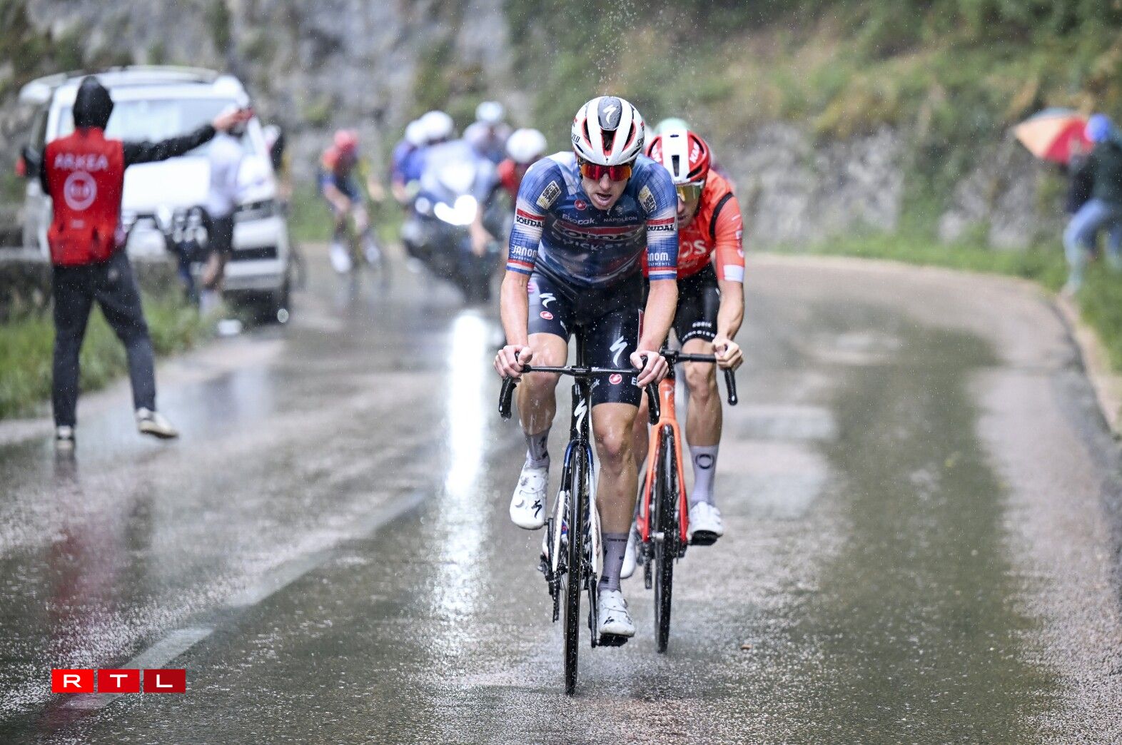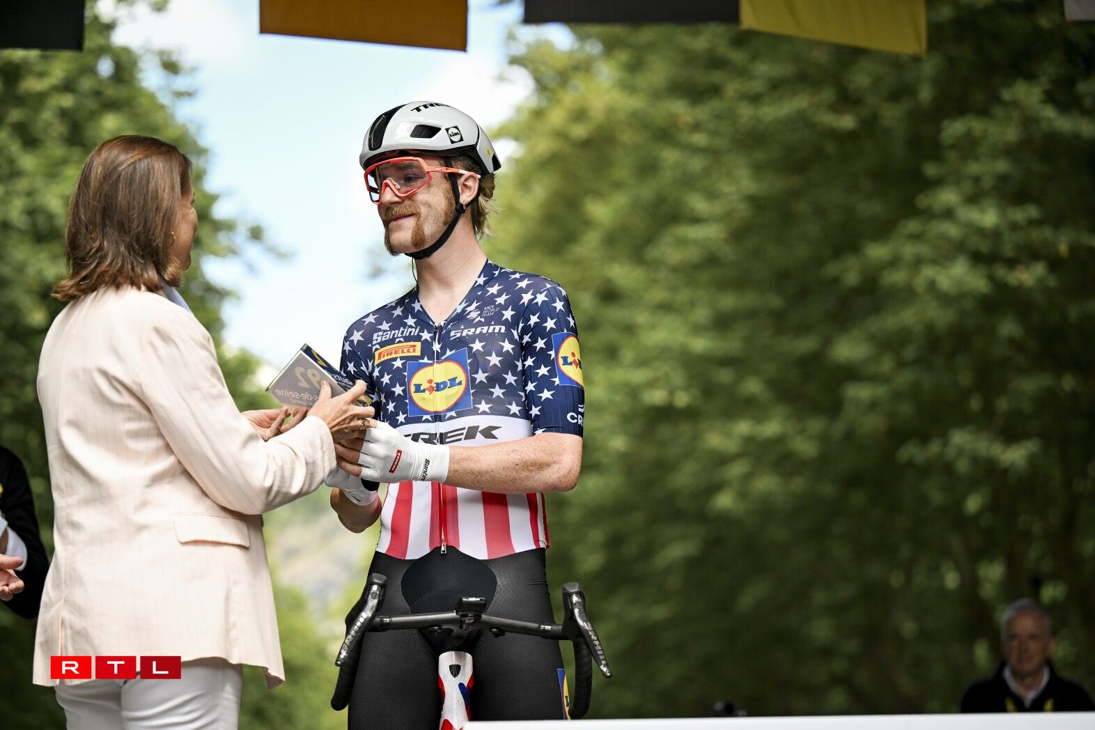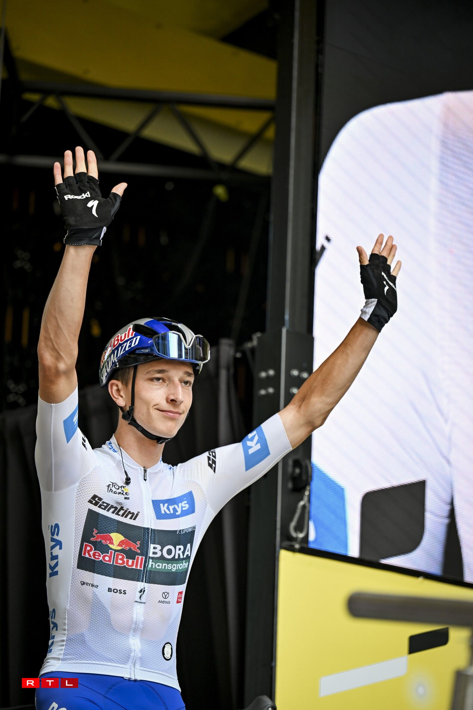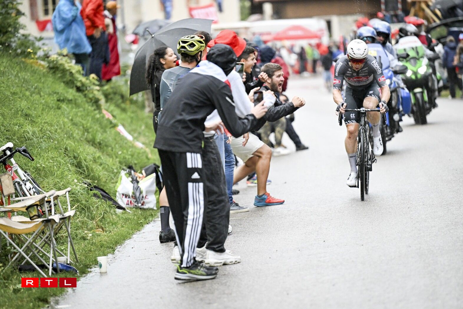 De Peloton mam Maillot Jaune Tadej Pogacar, dem Zweete Jonas Vingegaard an dem Drëtte Florian Lipowitz hat op der zweetleschter Etapp e Retard vu ronn siwe Minutten.