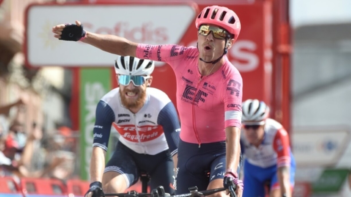 Aus der Echapée gewënnt op en Neits de Magnus Cort am Sprint. De Rui Oliveira fiert op déi 2. Plaz. De Quinn Simmons gëtt den 3.