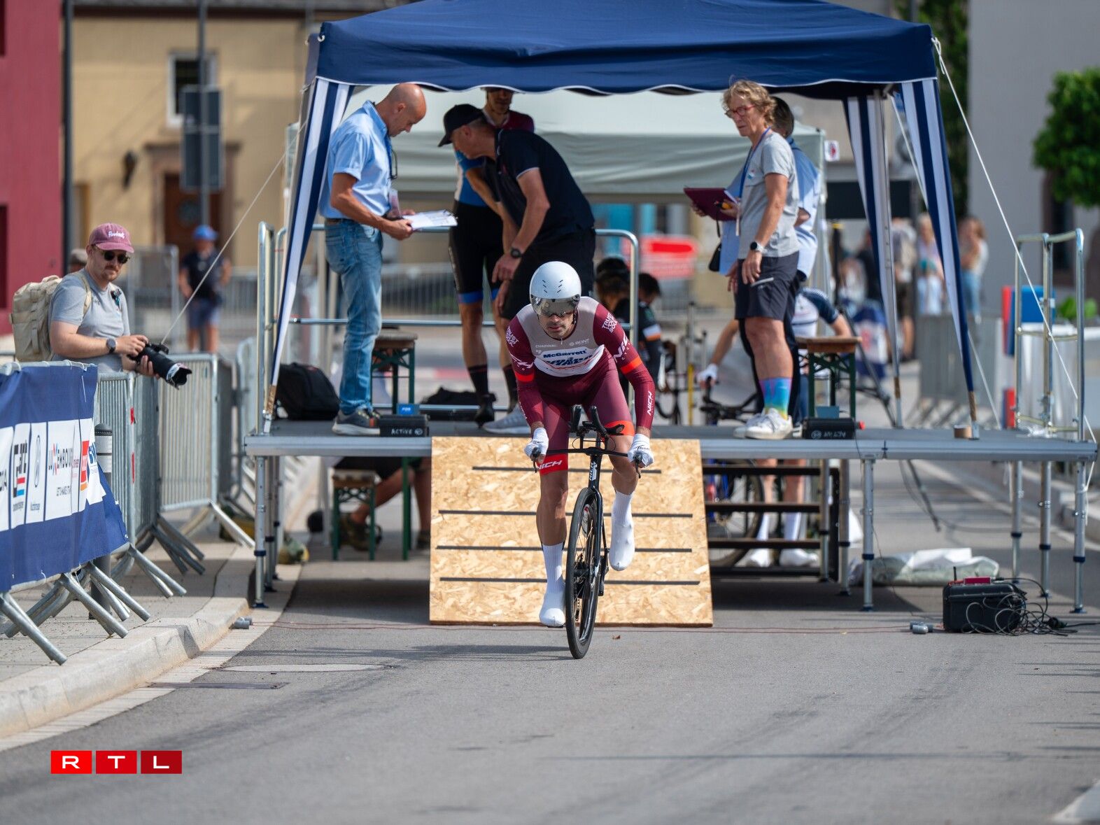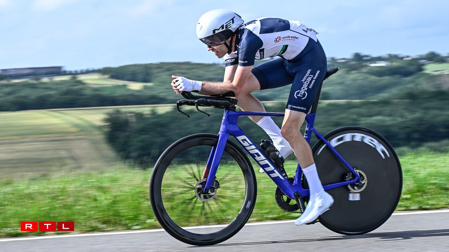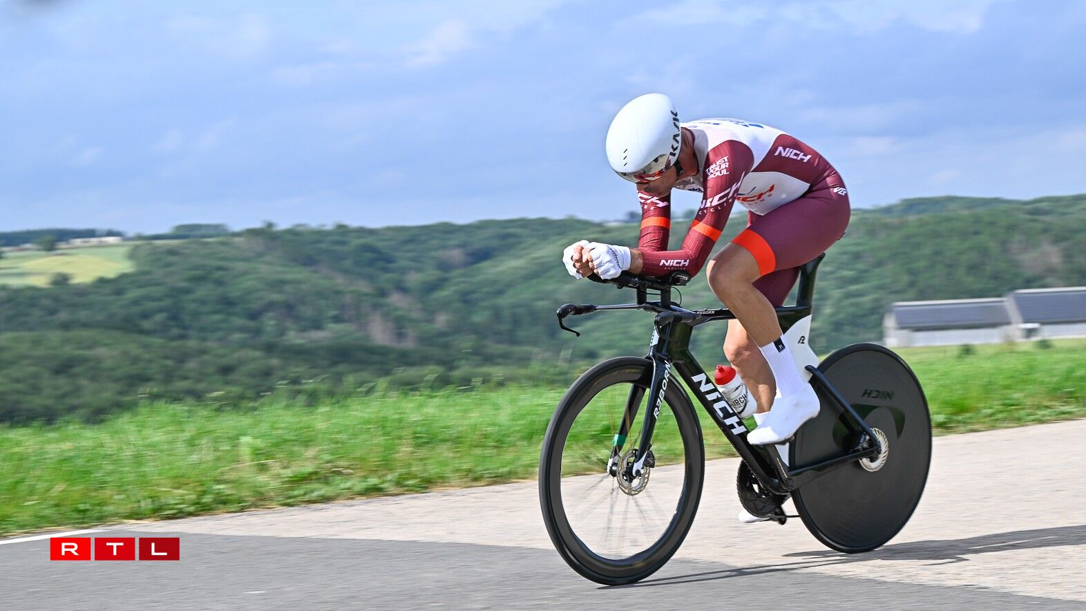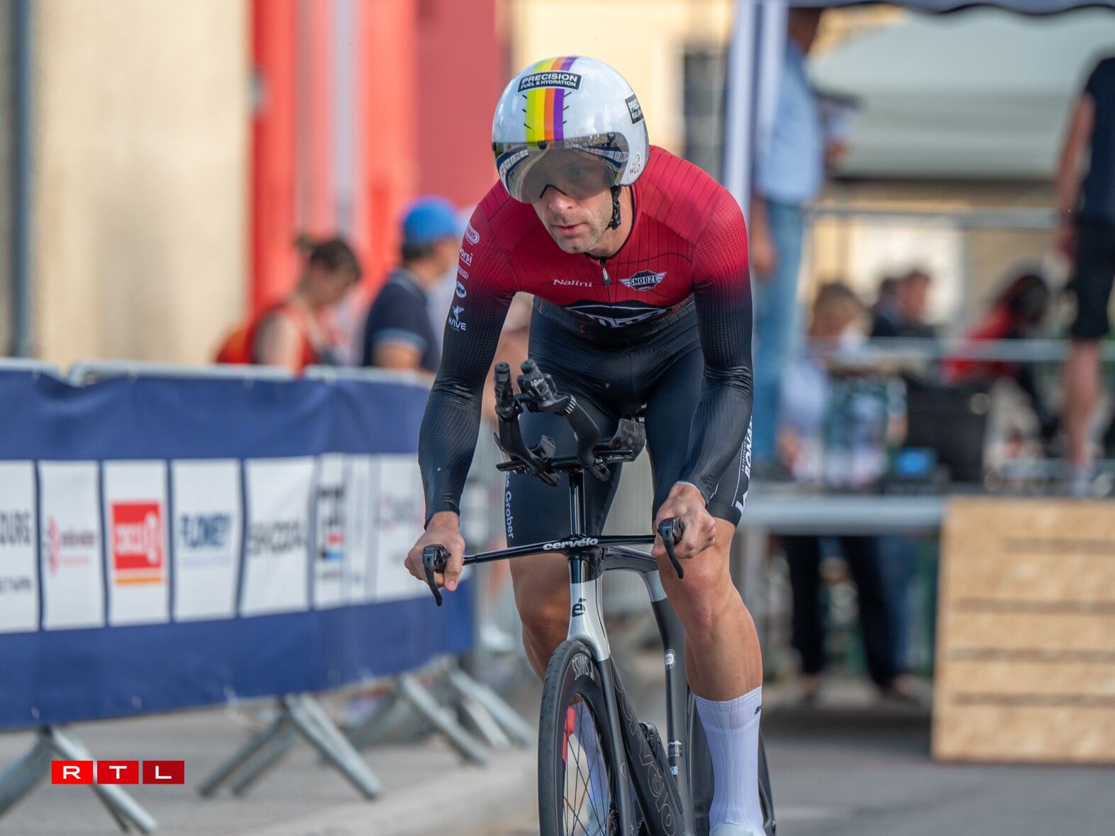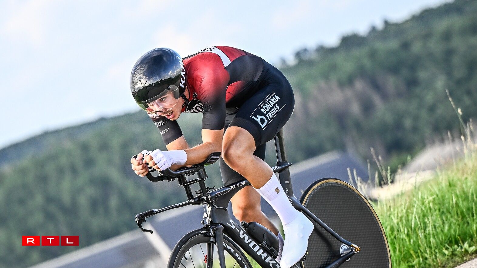 De Bob Jungels ass zeréck am rout-wäiss-bloe-Maillot. Hien huet sech en Donneschdeg de Championstitel am Zäitfuere geséchert.