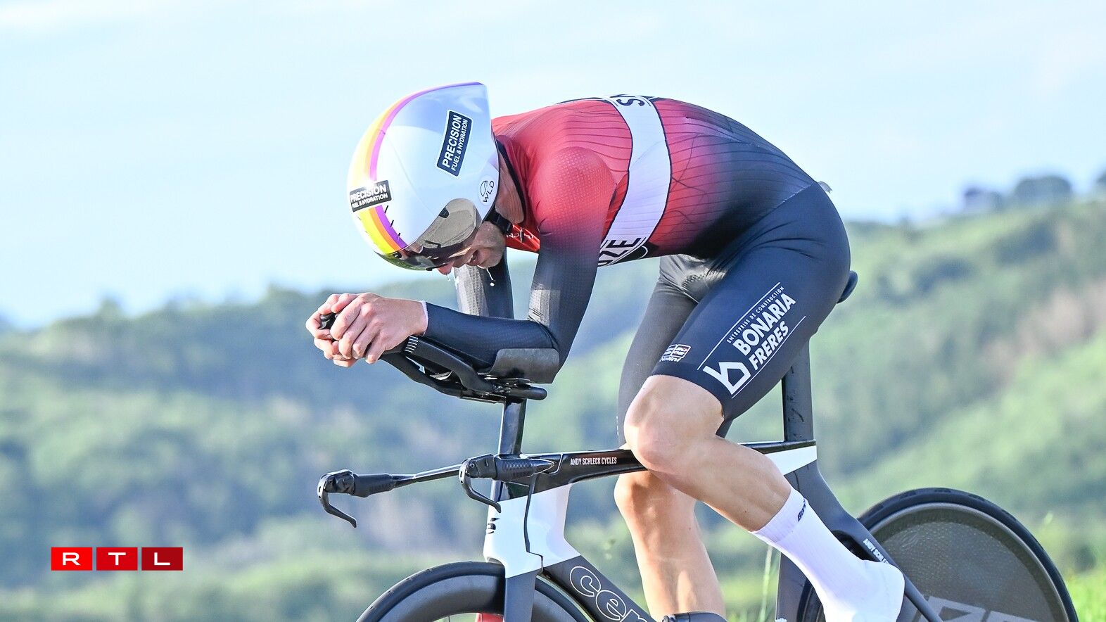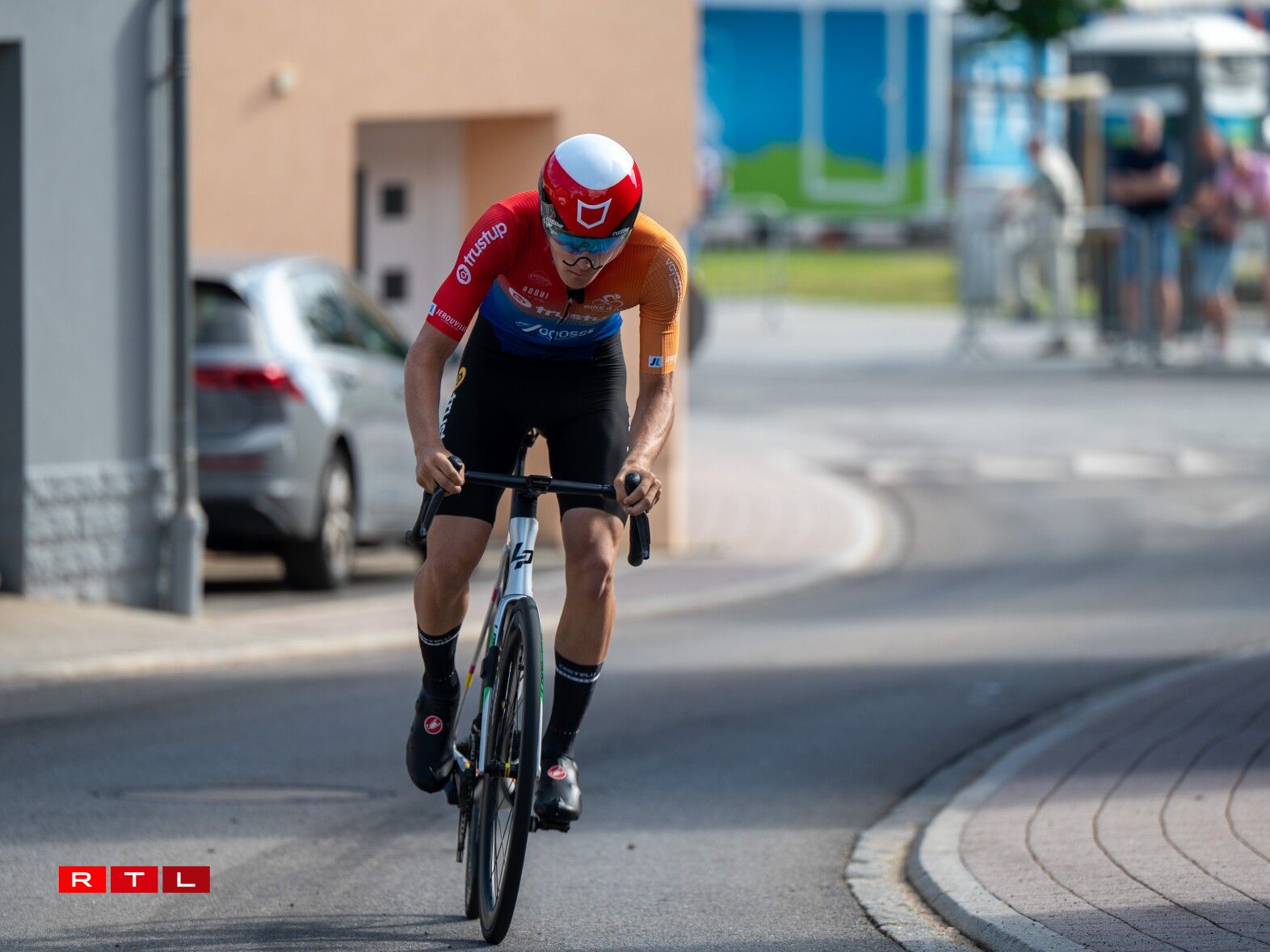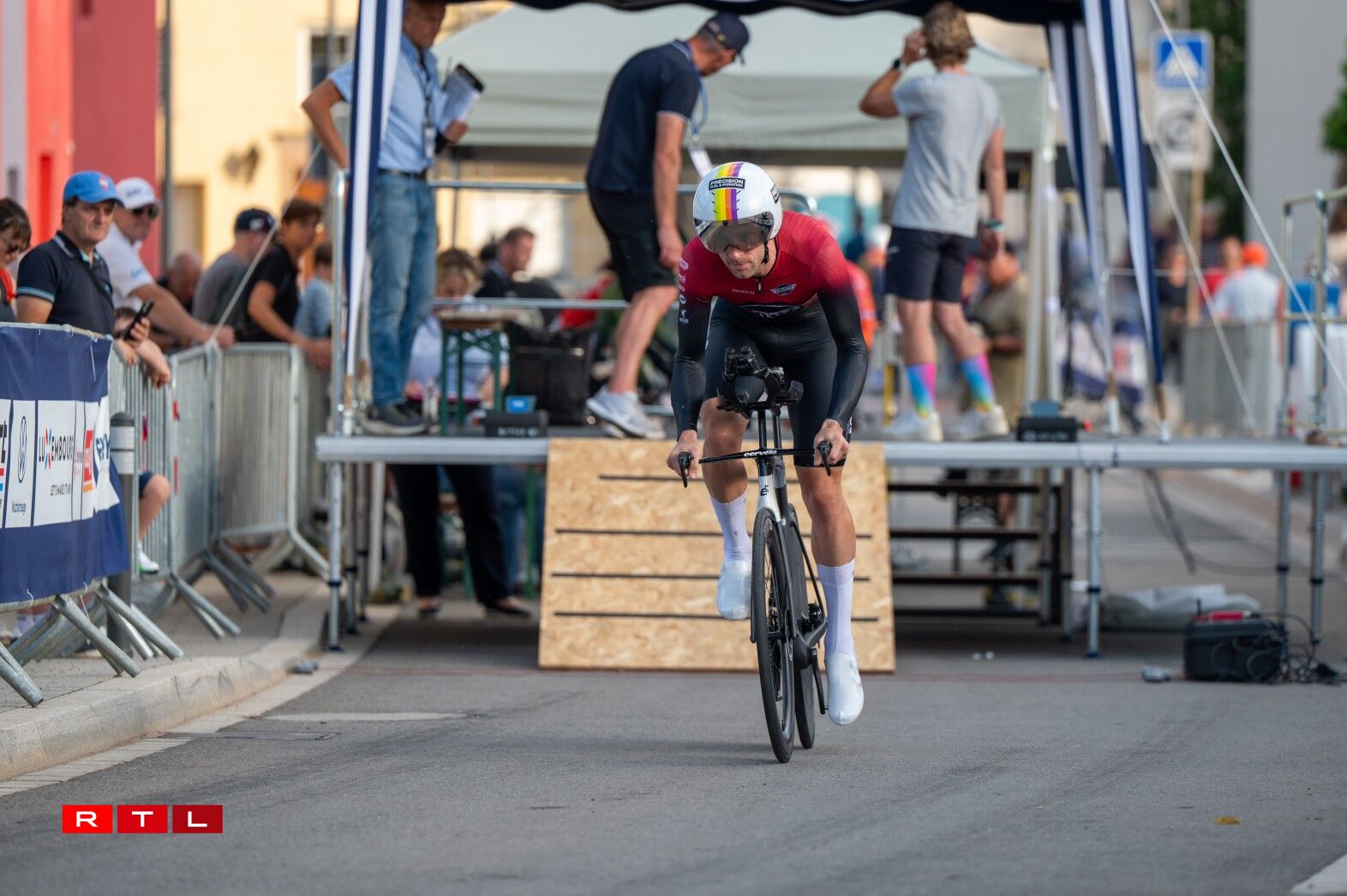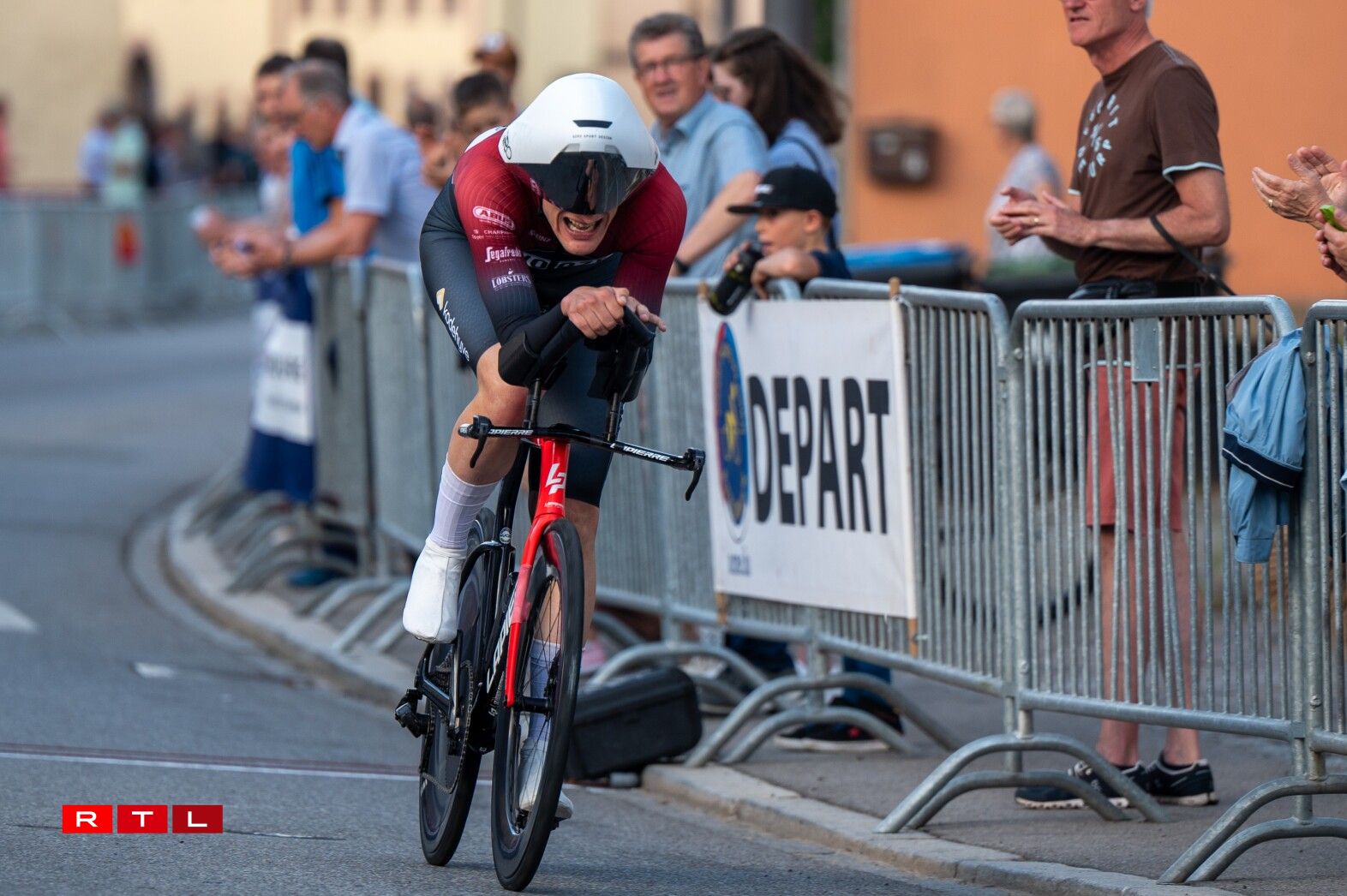 De Bob Jungels ass zeréck am rout-wäiss-bloe-Maillot. Hien huet sech en Donneschdeg de Championstitel am Zäitfuere geséchert.