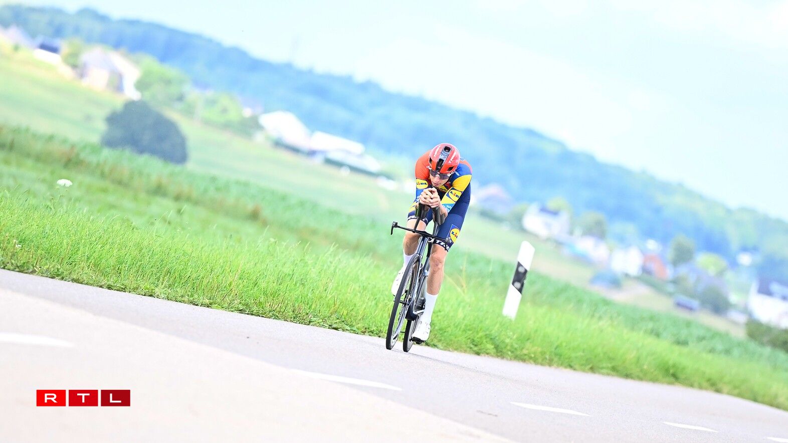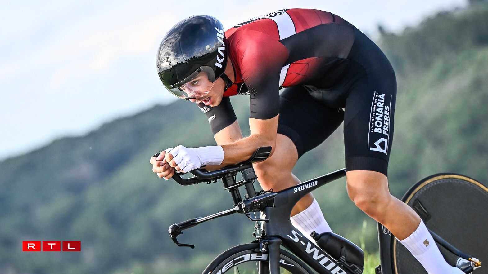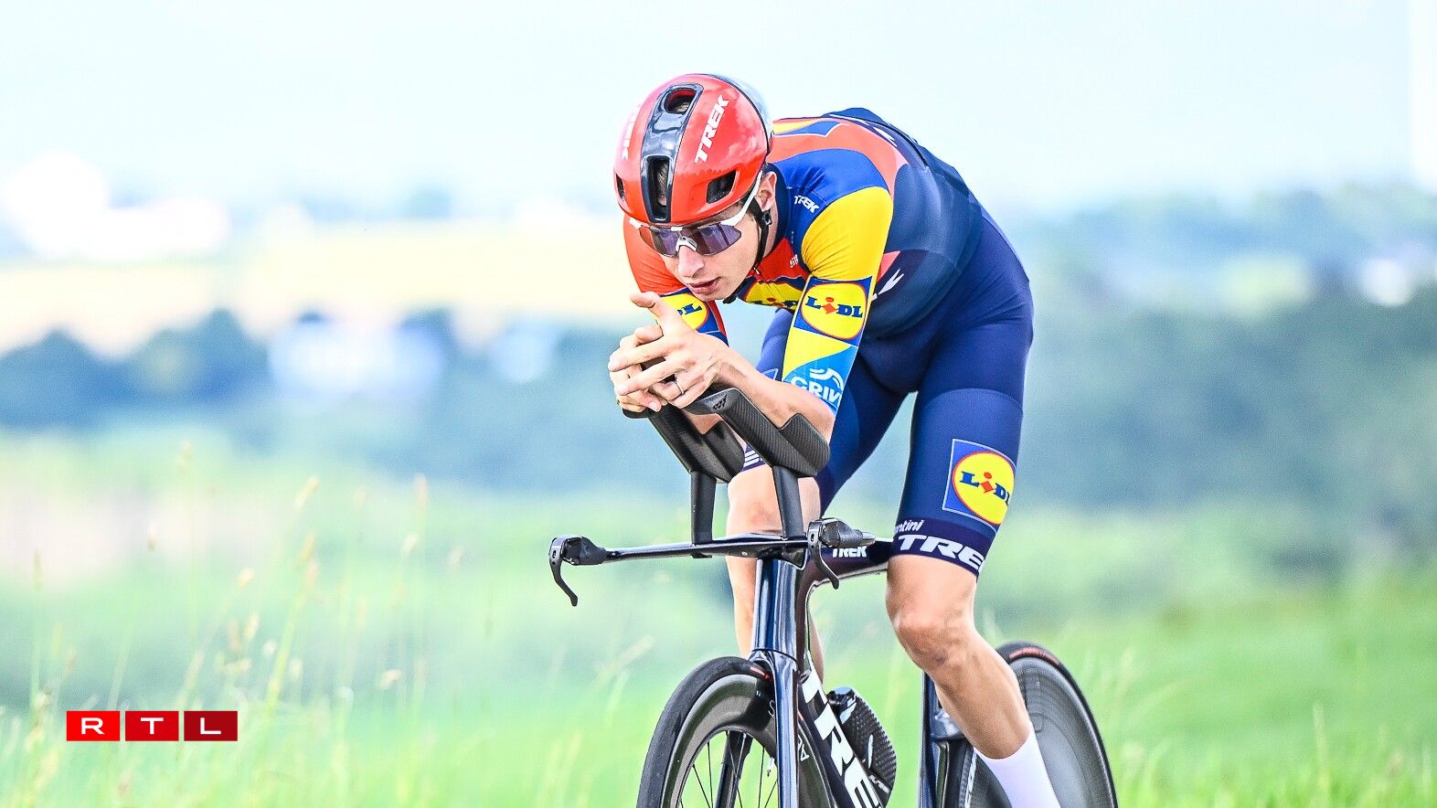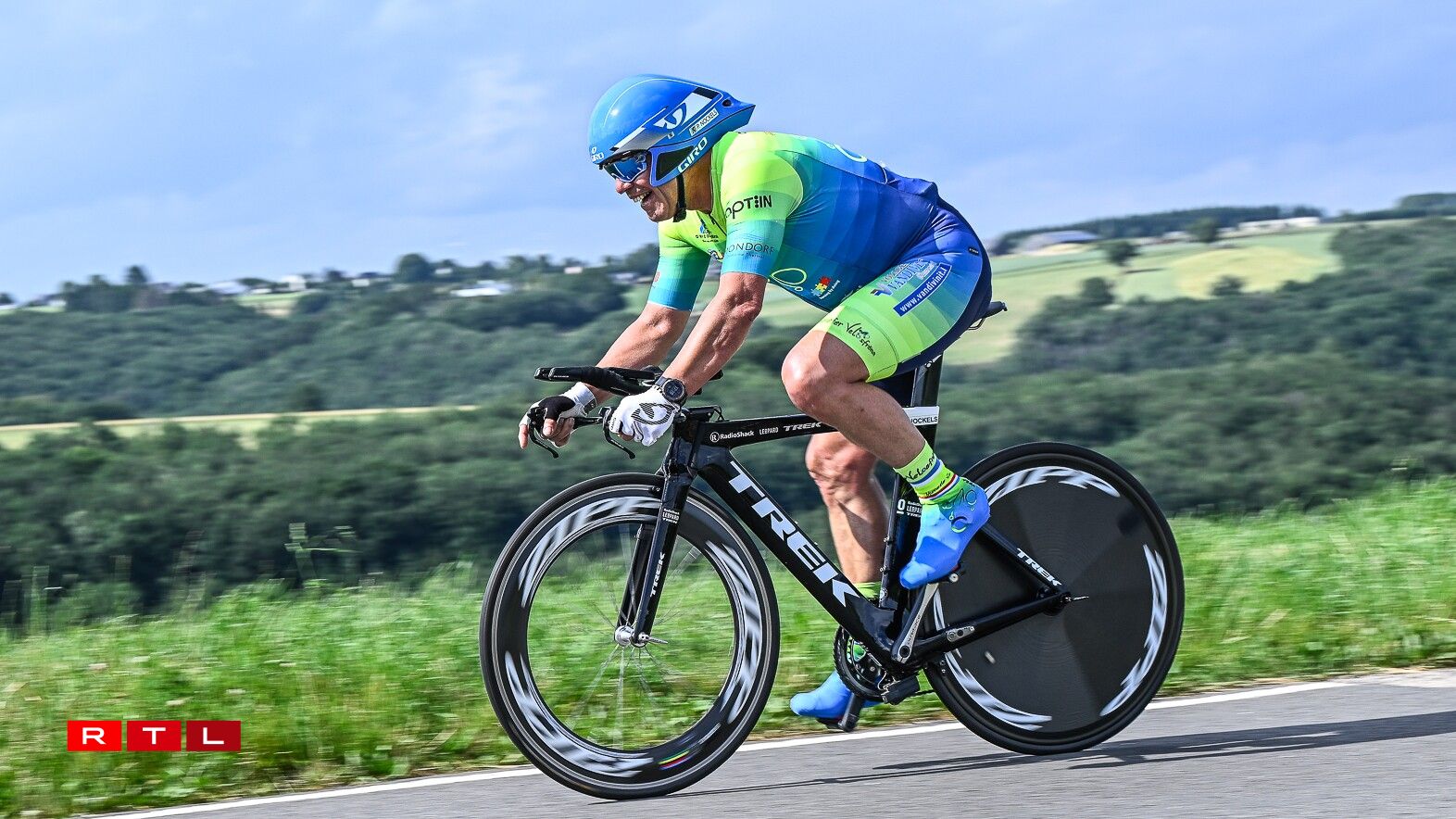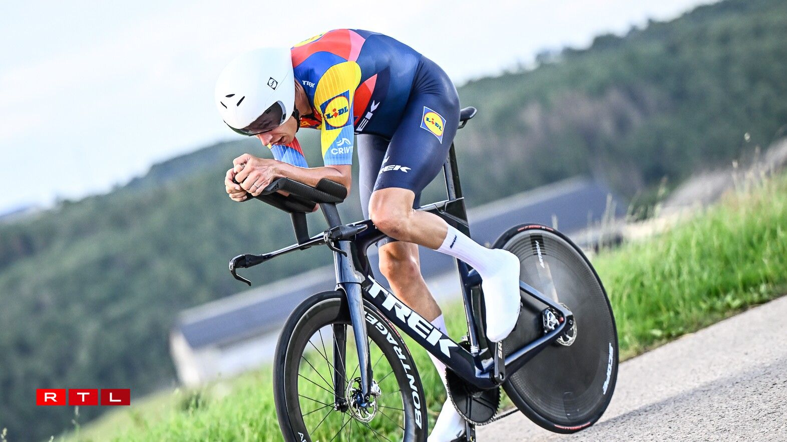 De Bob Jungels ass zeréck am rout-wäiss-bloe-Maillot. Hien huet sech en Donneschdeg de Championstitel am Zäitfuere geséchert.