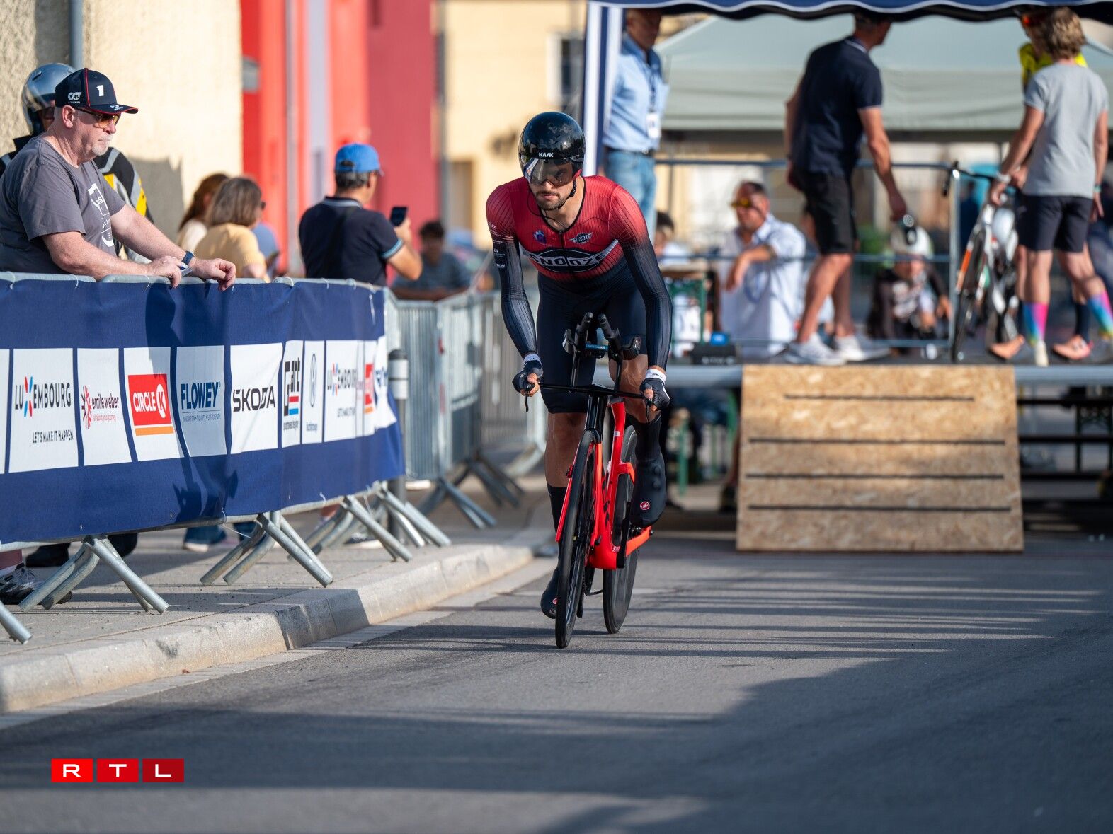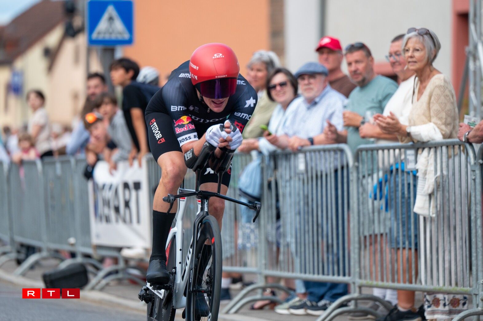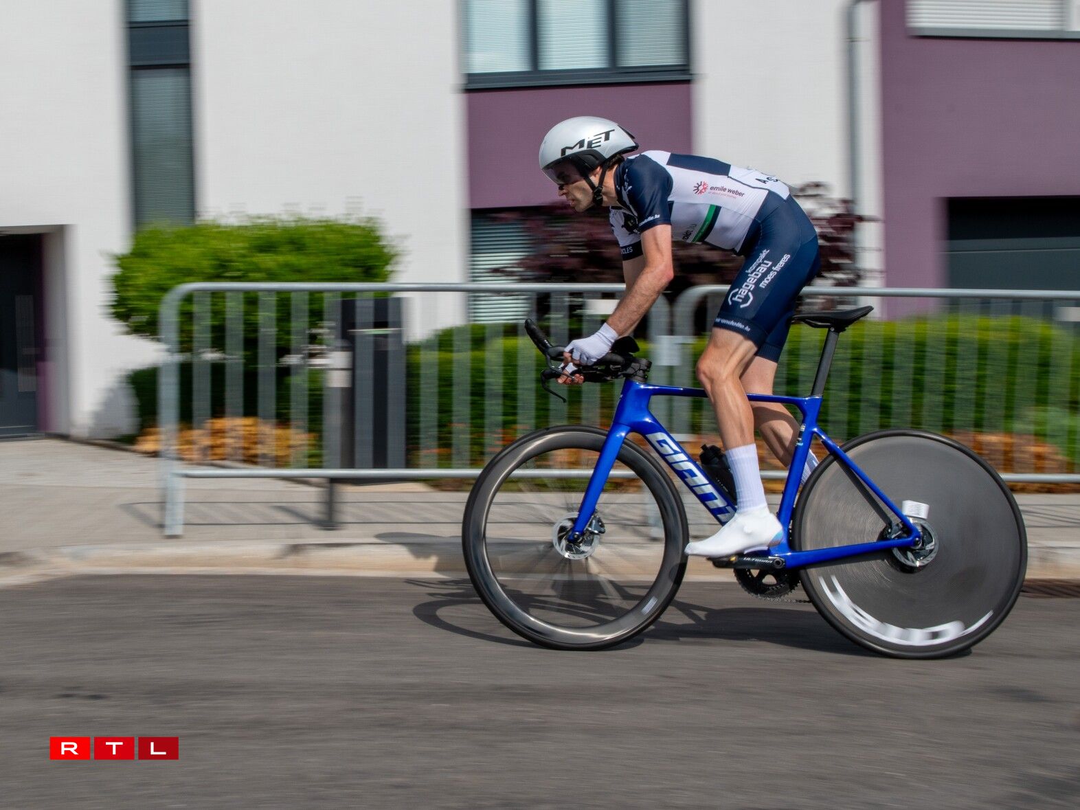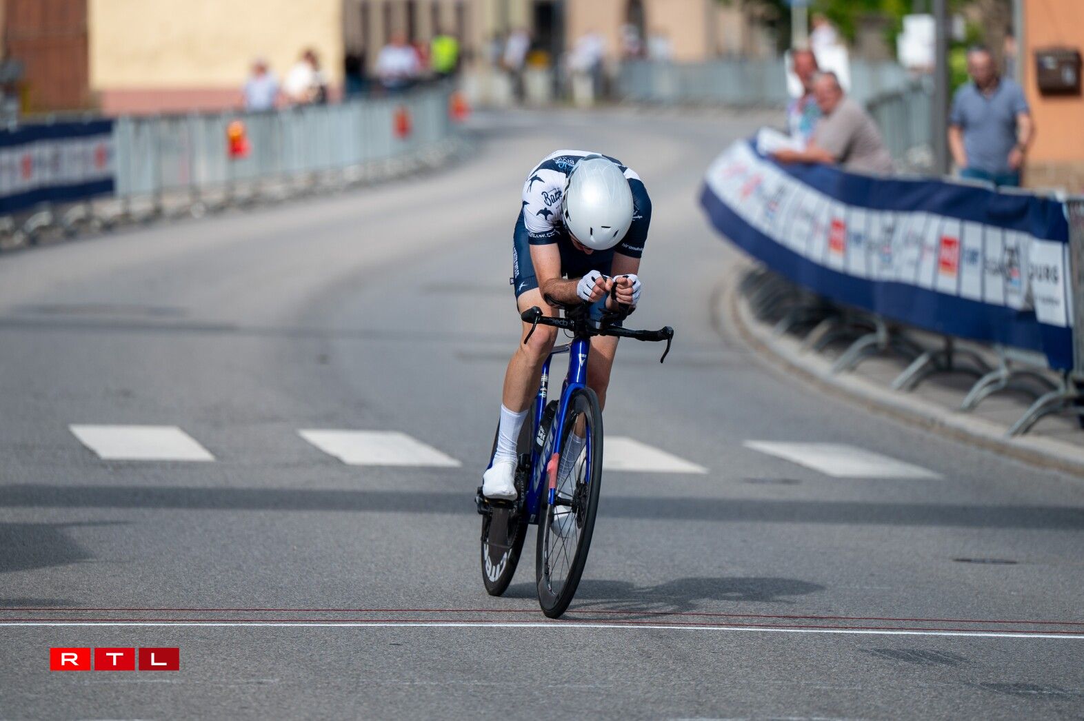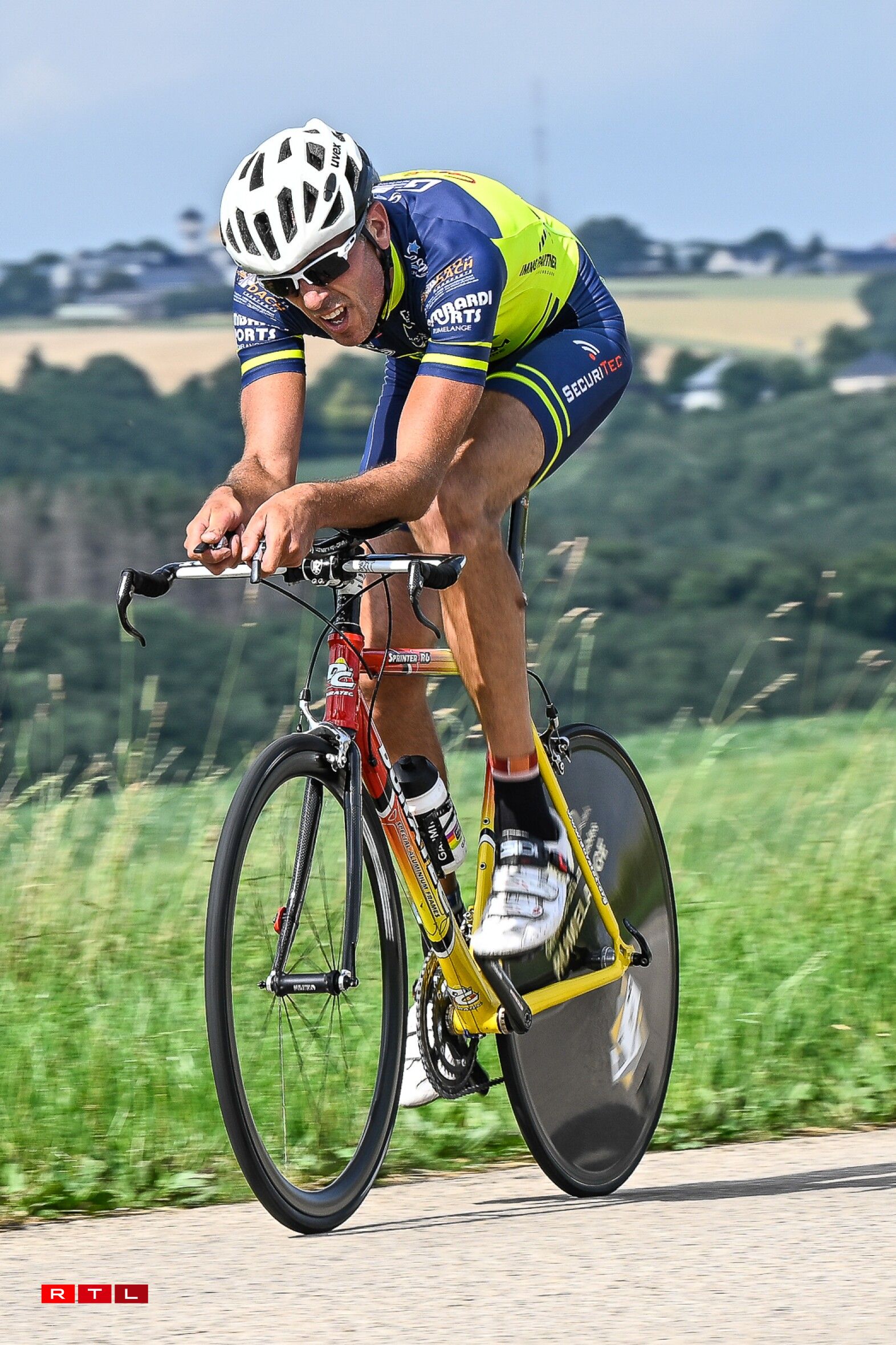 De Bob Jungels ass zeréck am rout-wäiss-bloe-Maillot. Hien huet sech en Donneschdeg de Championstitel am Zäitfuere geséchert.