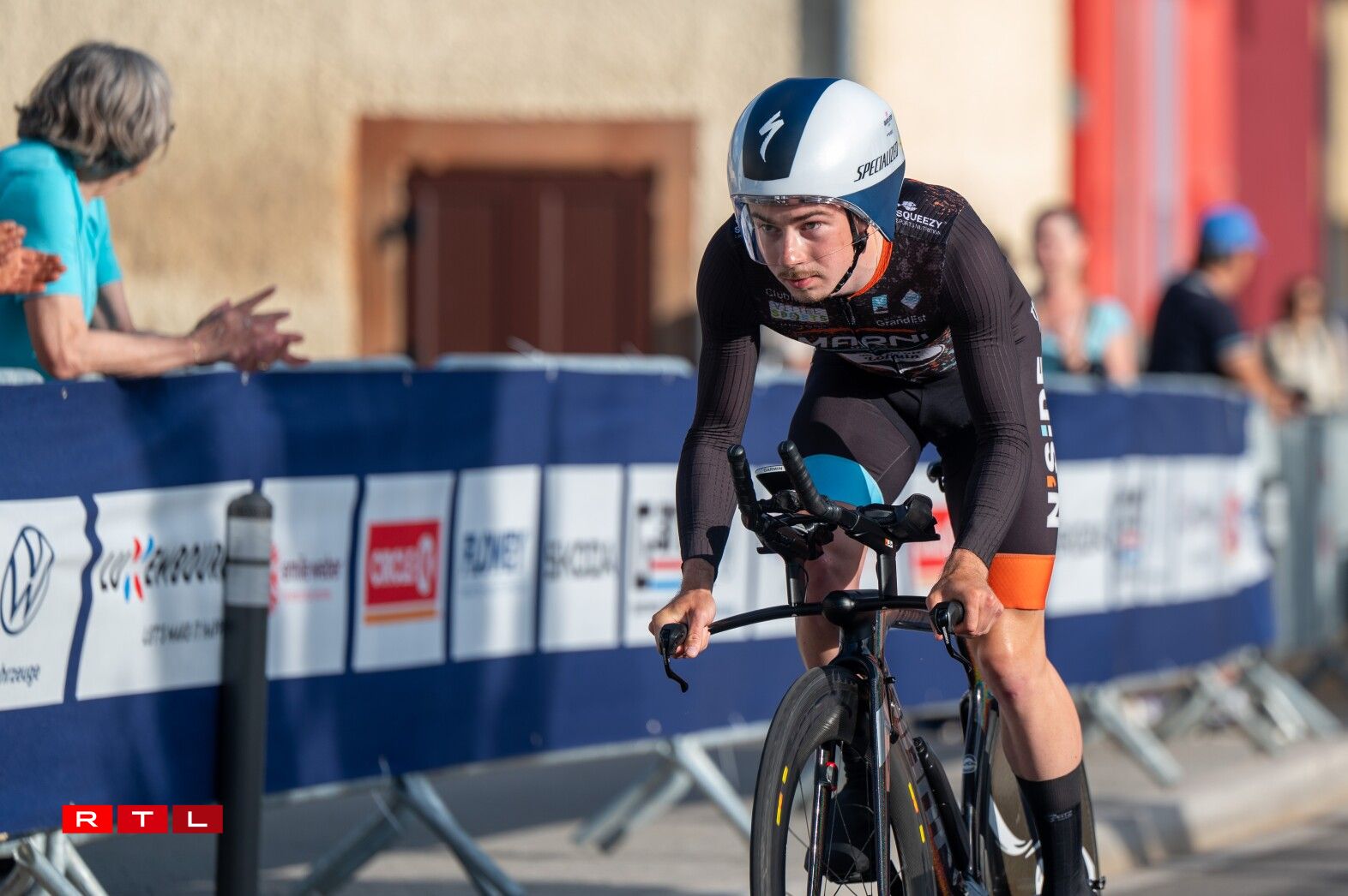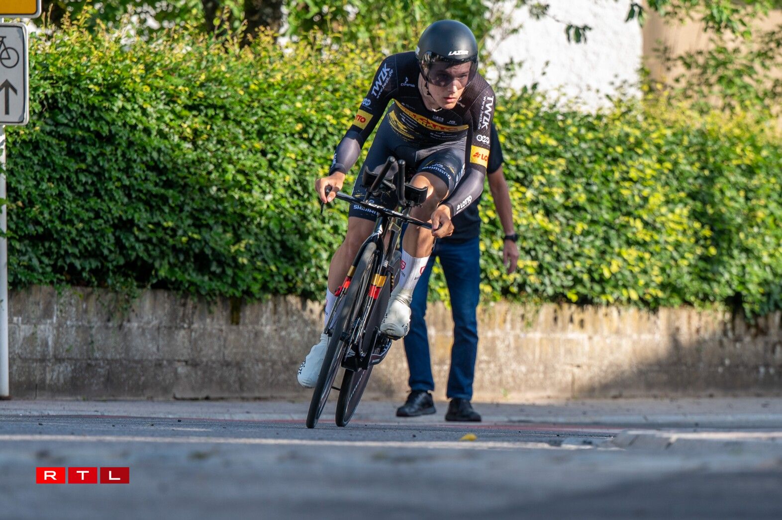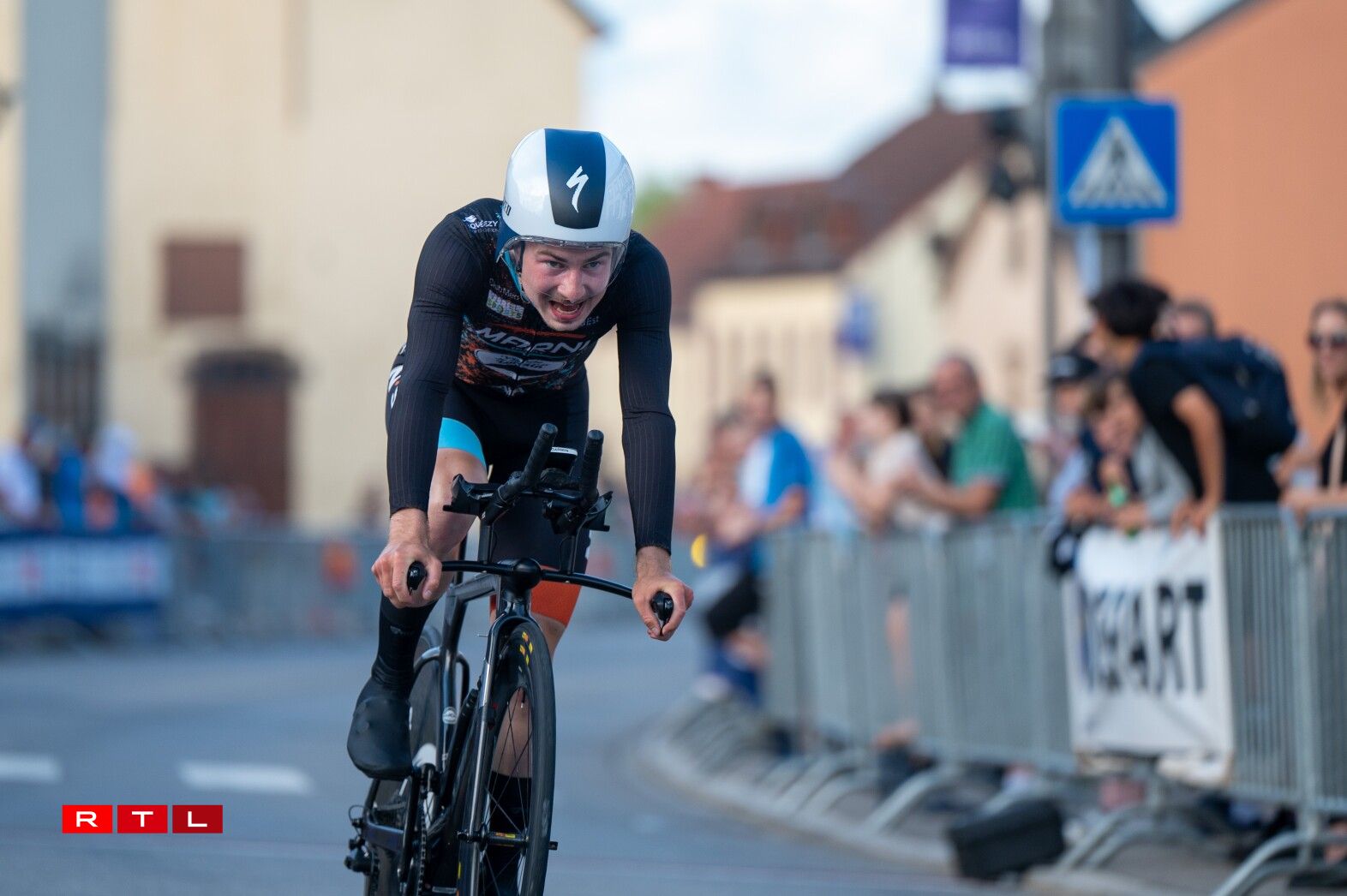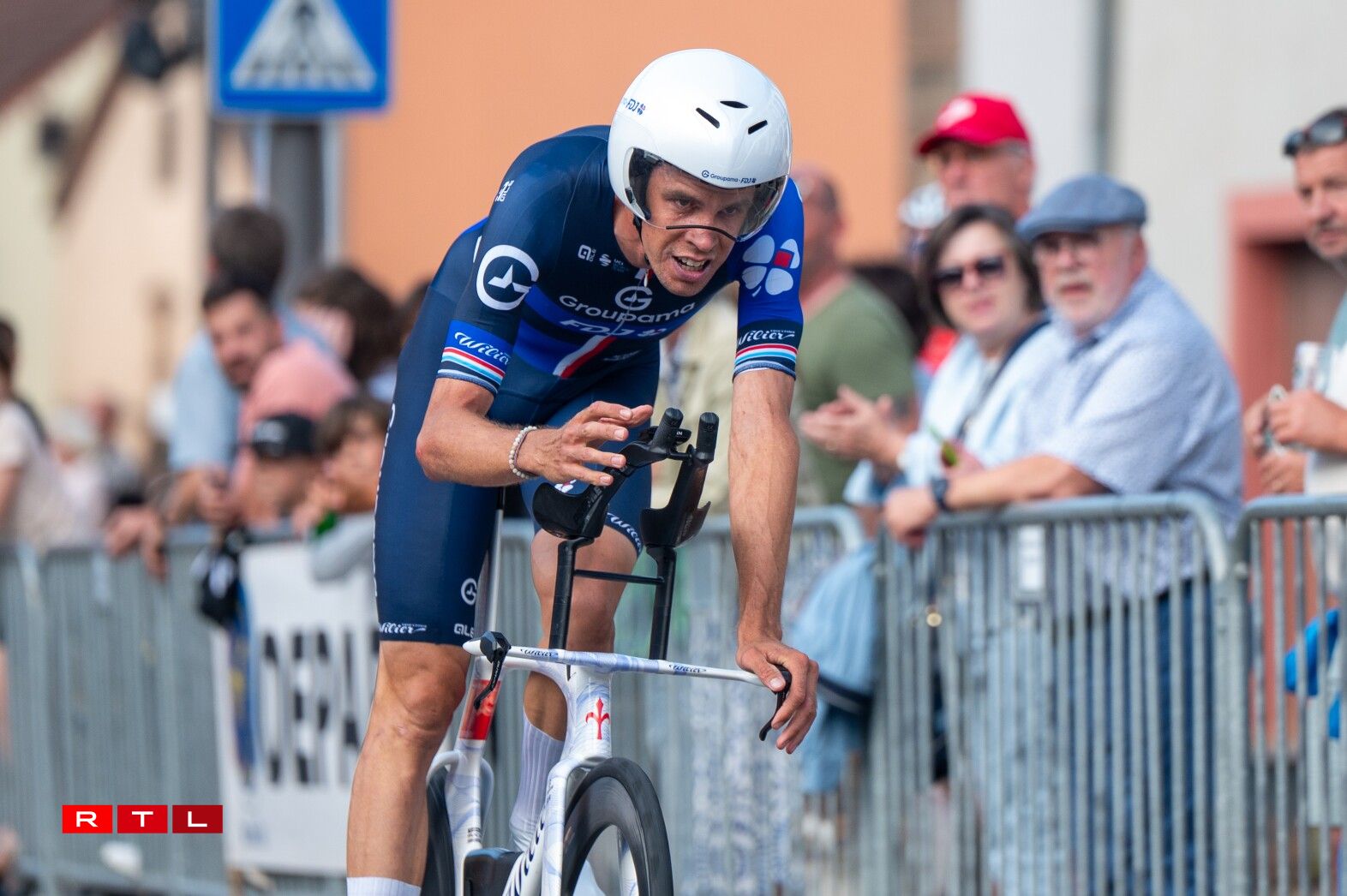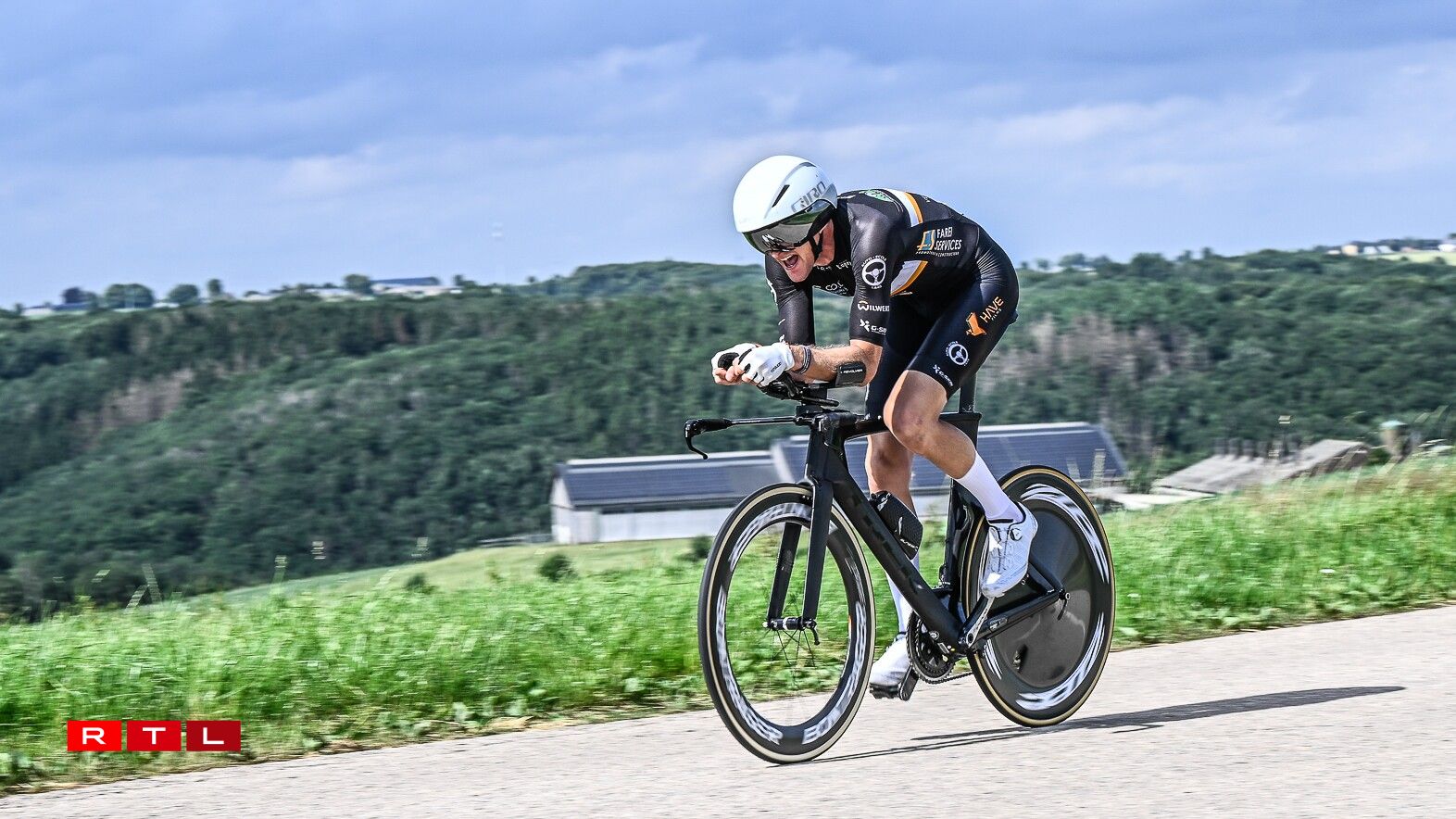 De Bob Jungels ass zeréck am rout-wäiss-bloe-Maillot. Hien huet sech en Donneschdeg de Championstitel am Zäitfuere geséchert.