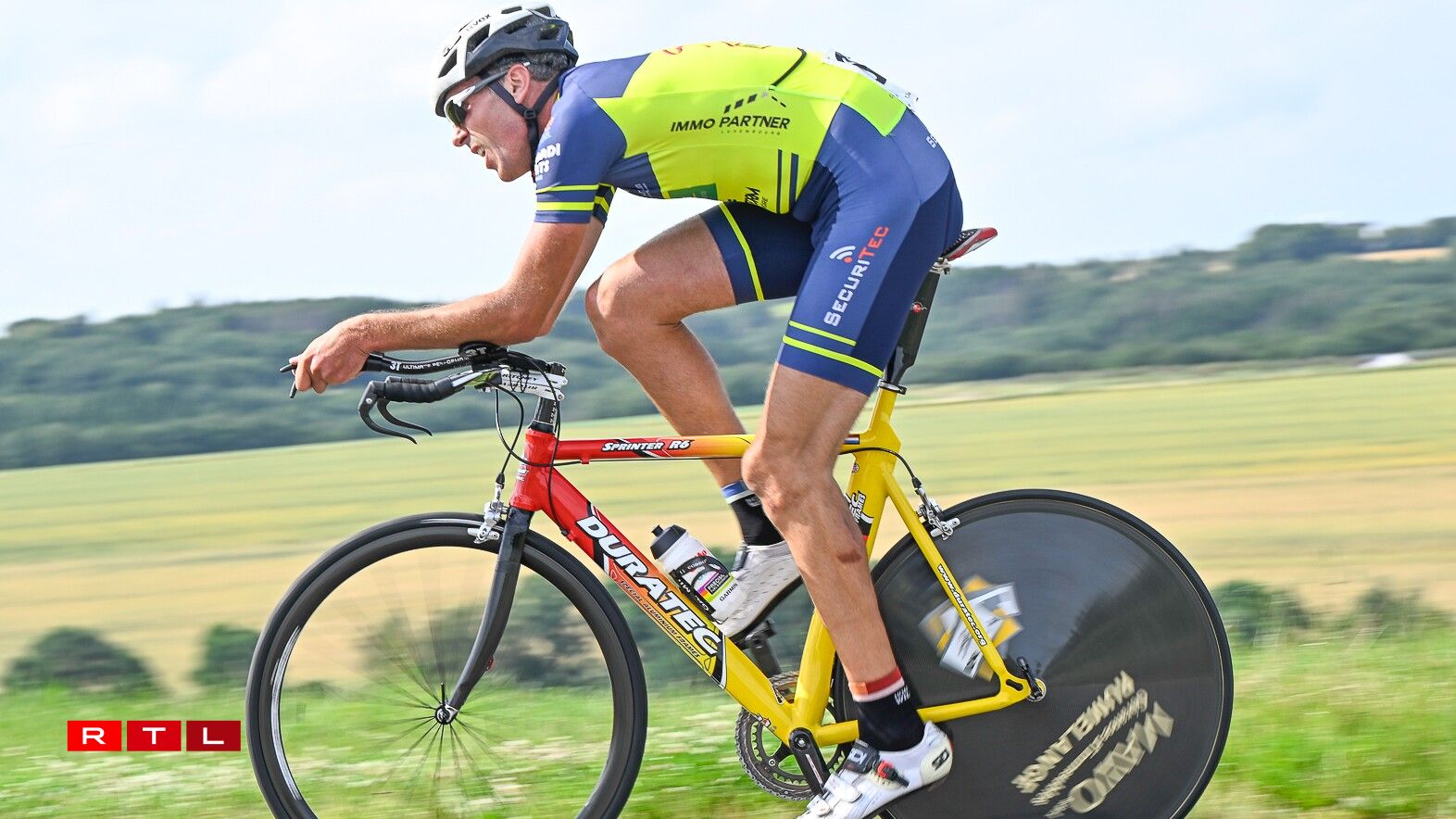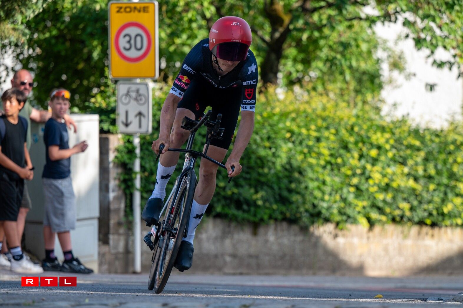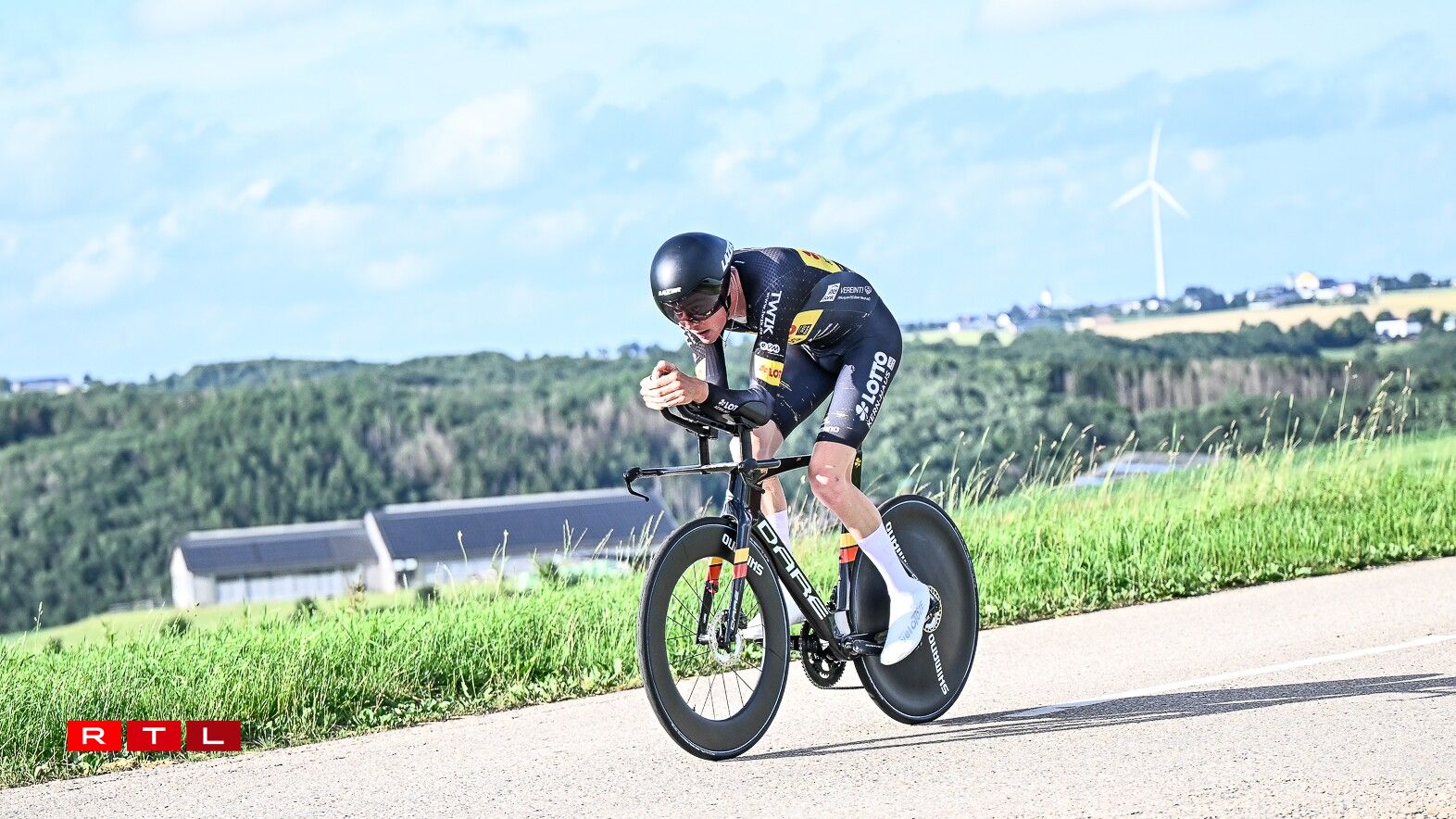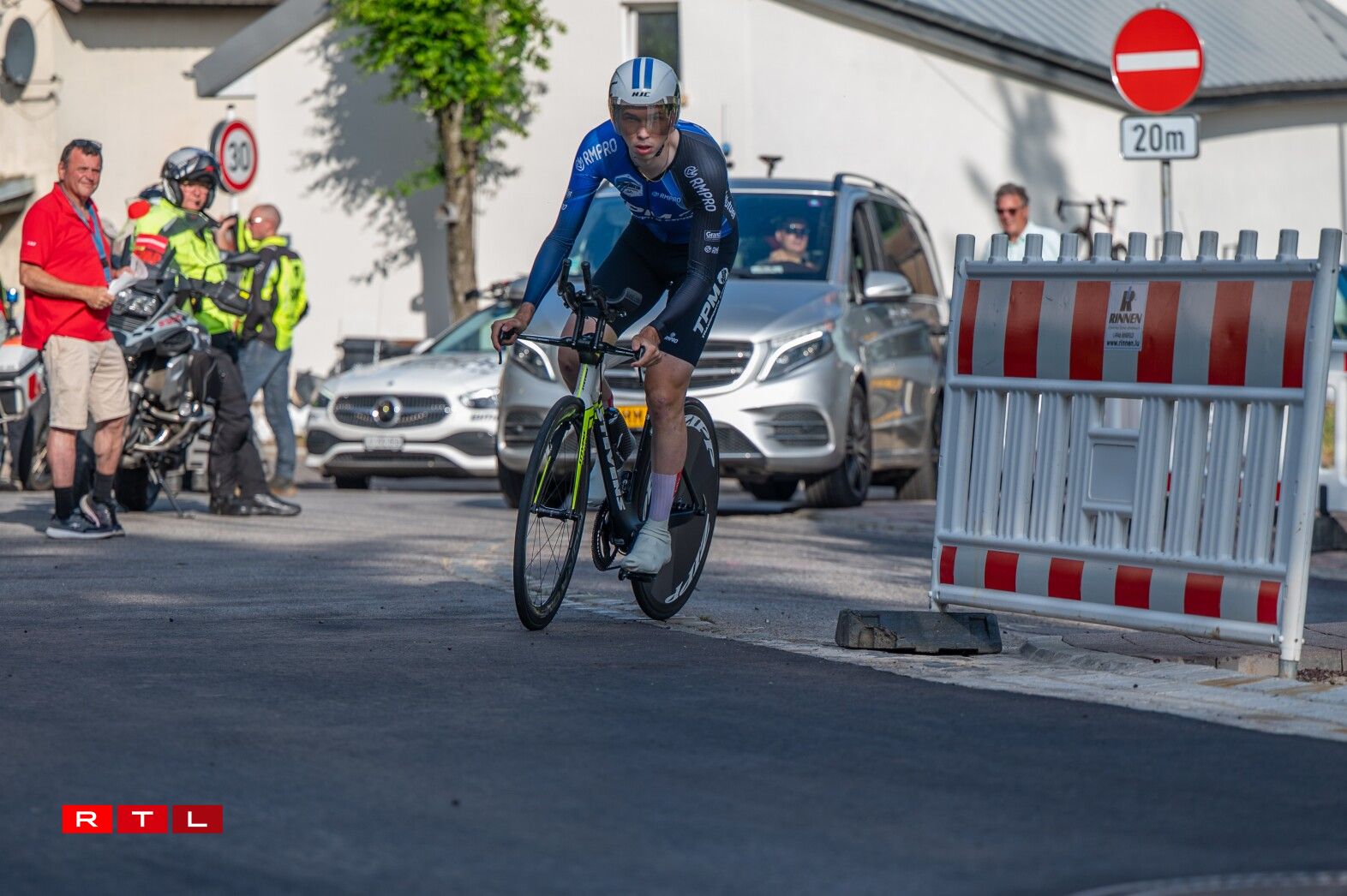 De Bob Jungels ass zeréck am rout-wäiss-bloe-Maillot. Hien huet sech en Donneschdeg de Championstitel am Zäitfuere geséchert.