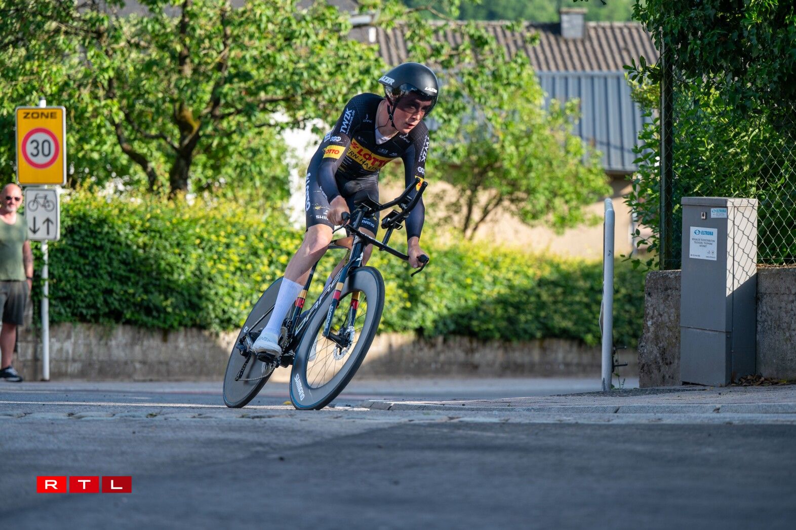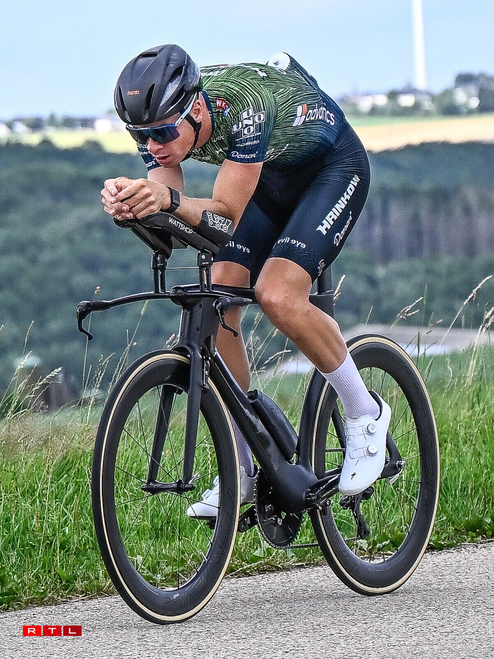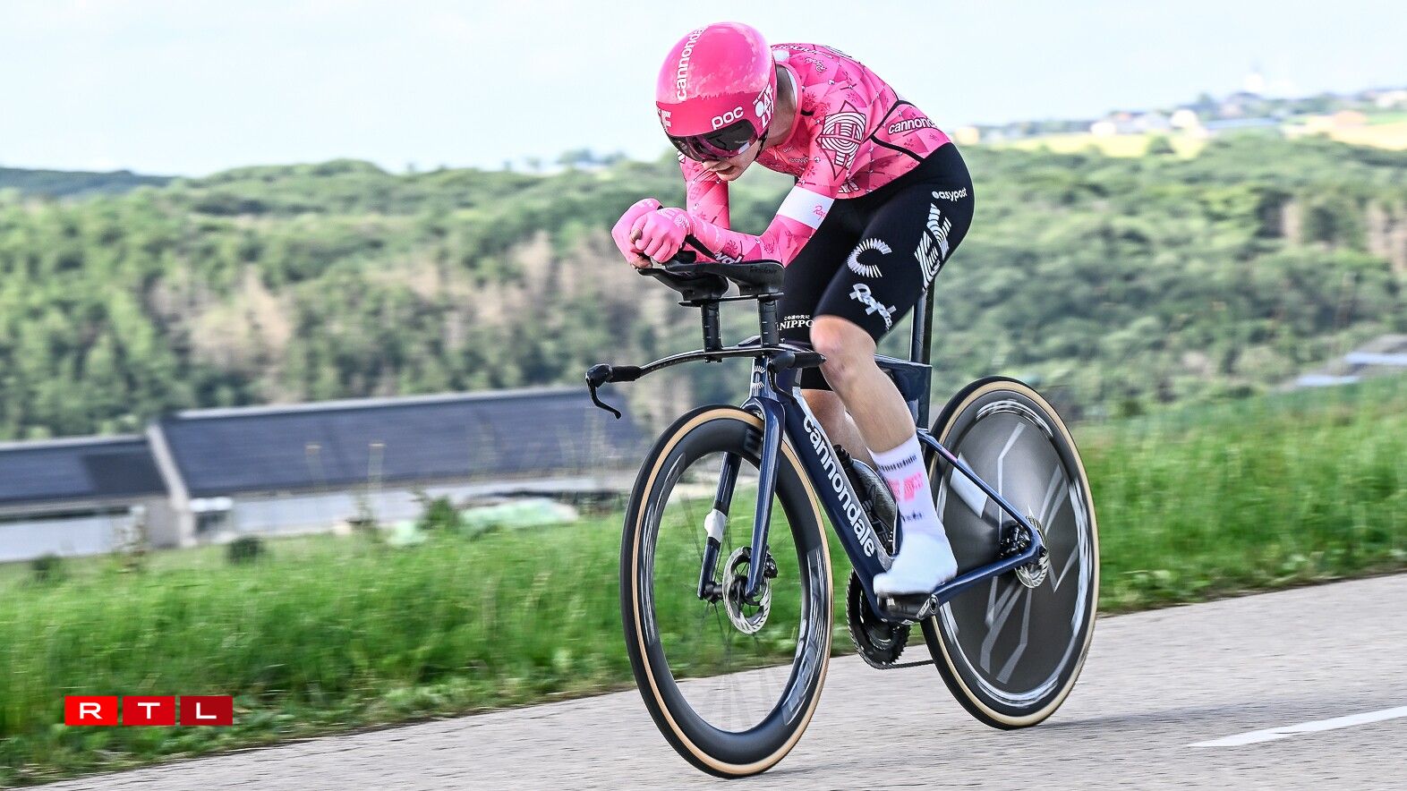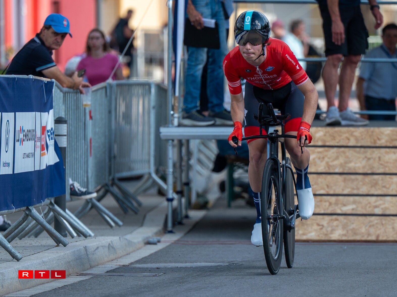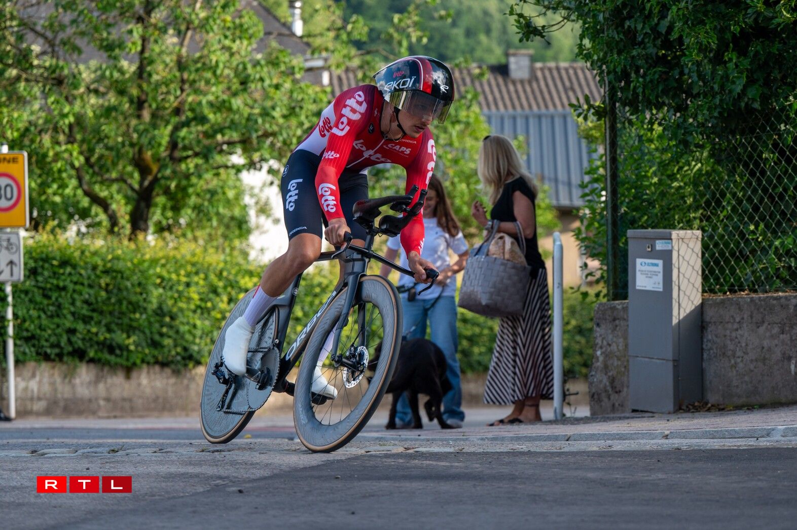 De Bob Jungels ass zeréck am rout-wäiss-bloe-Maillot. Hien huet sech en Donneschdeg de Championstitel am Zäitfuere geséchert.