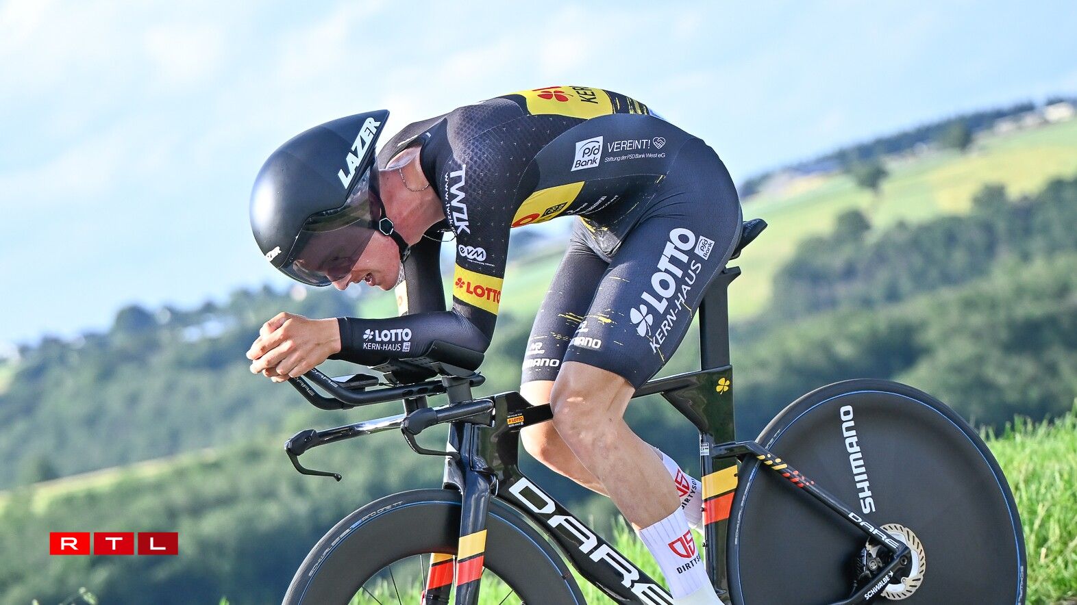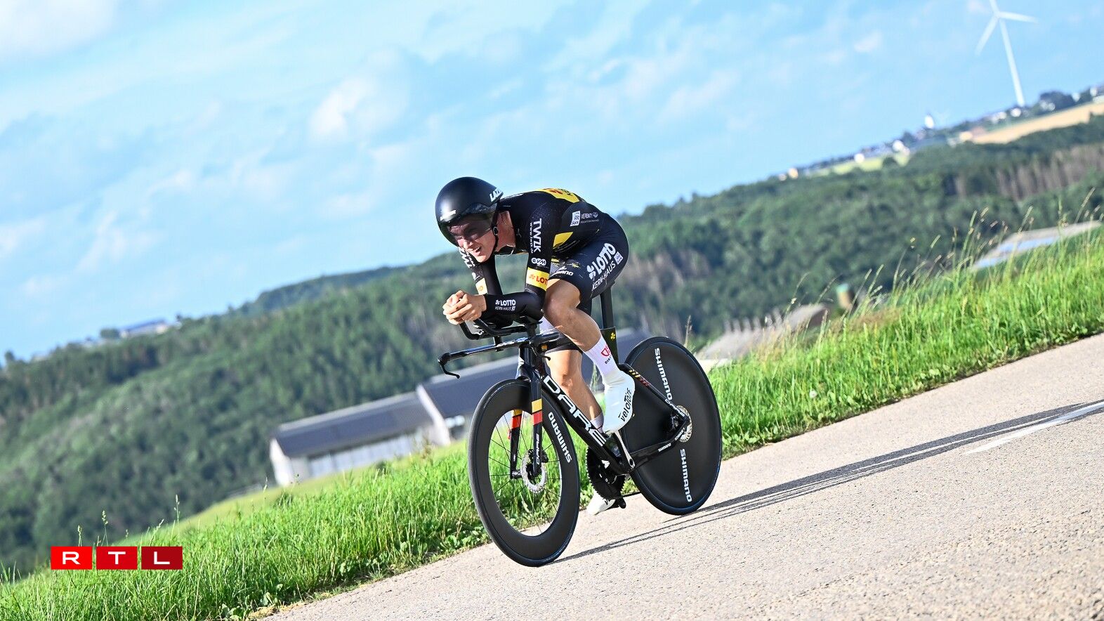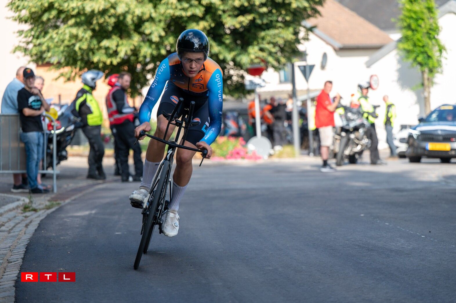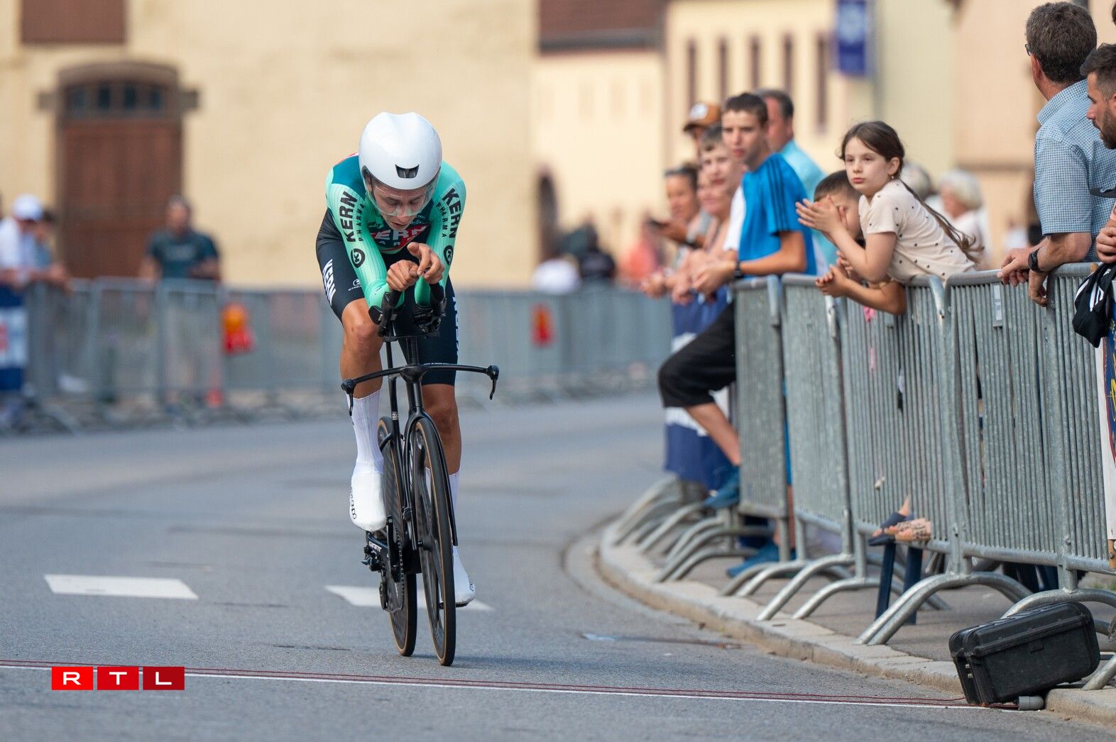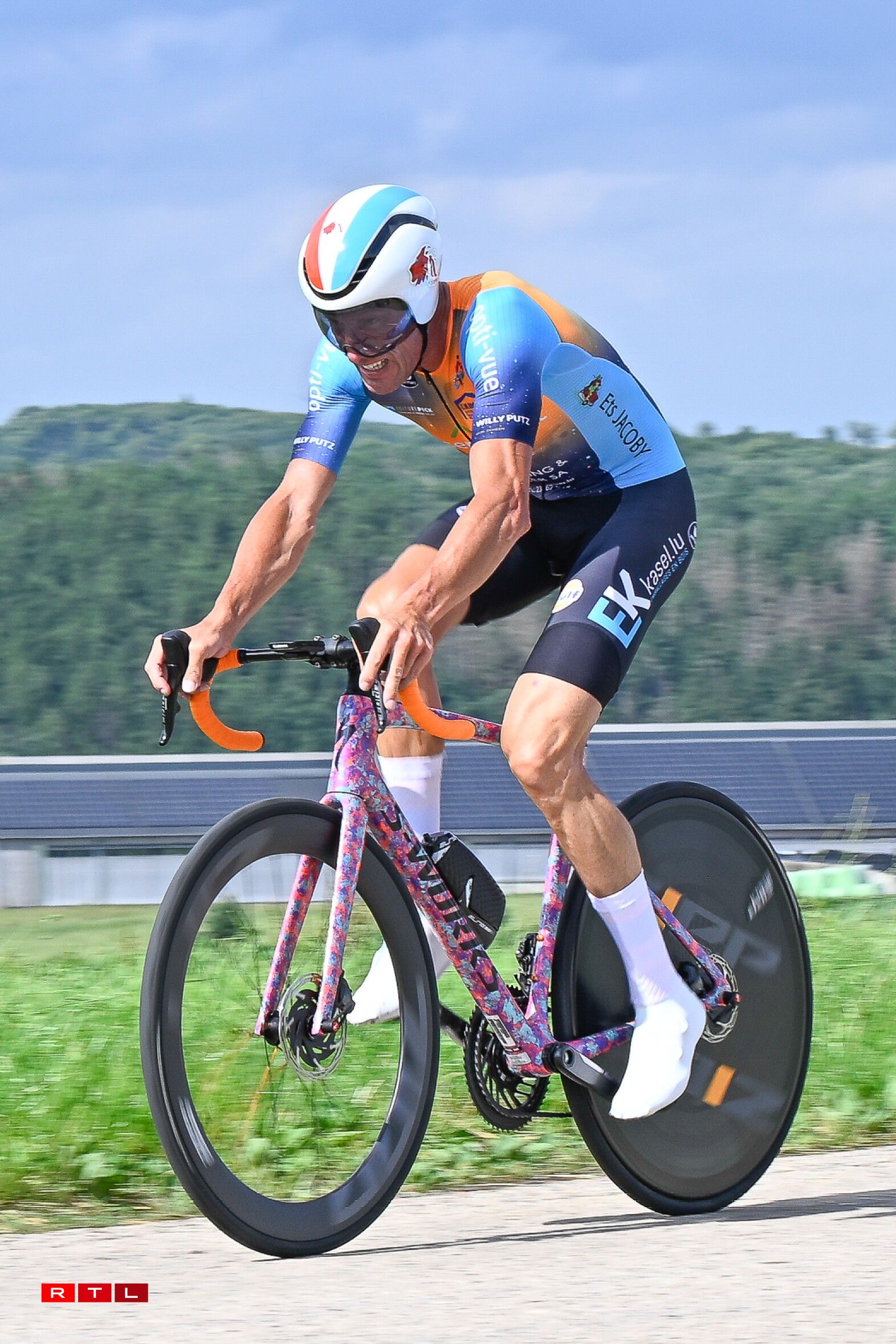 De Bob Jungels ass zeréck am rout-wäiss-bloe-Maillot. Hien huet sech en Donneschdeg de Championstitel am Zäitfuere geséchert.
