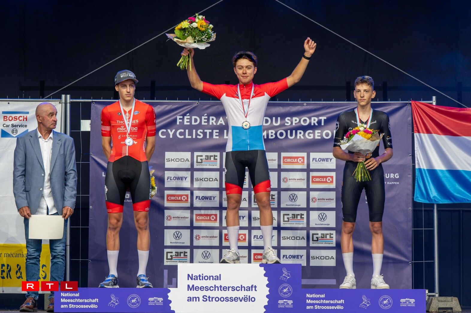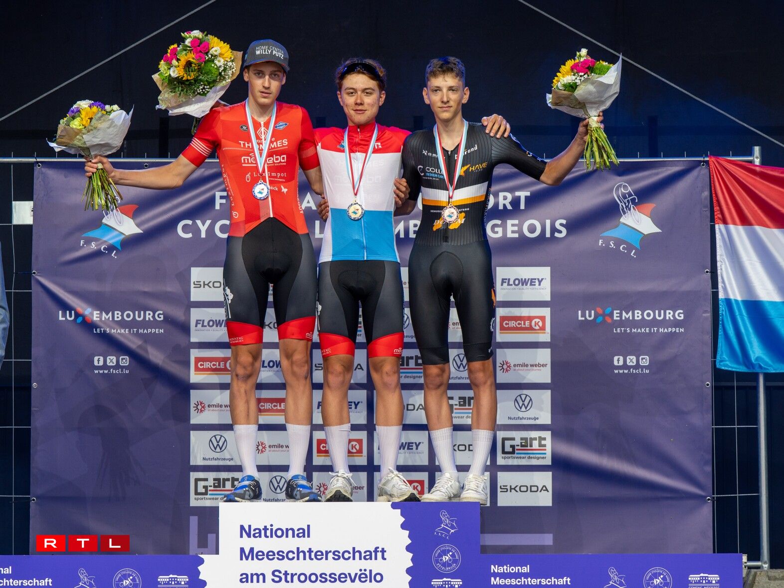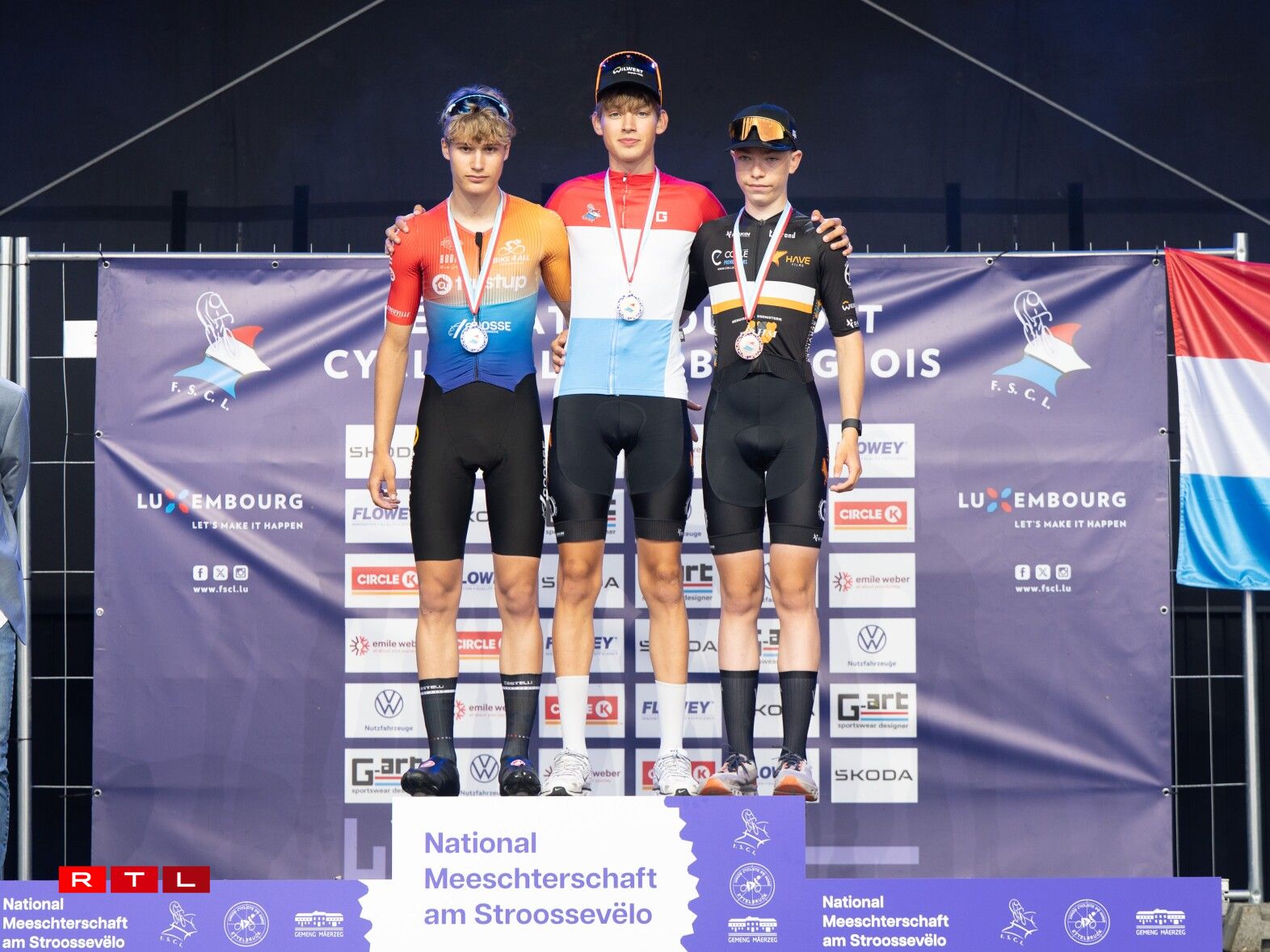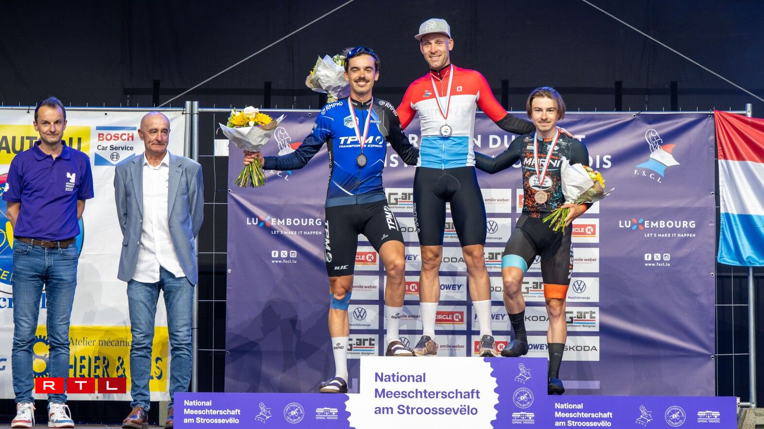 Tim Diederich (Team Snooze) heescht op en Neits de Champion bei den Hären Elite ouni Kontrakt. Hien huet sech virum Charel Meyers (VCU Schwenheim) an dem Tom Paquet (UC Dippech) duerchgesat.