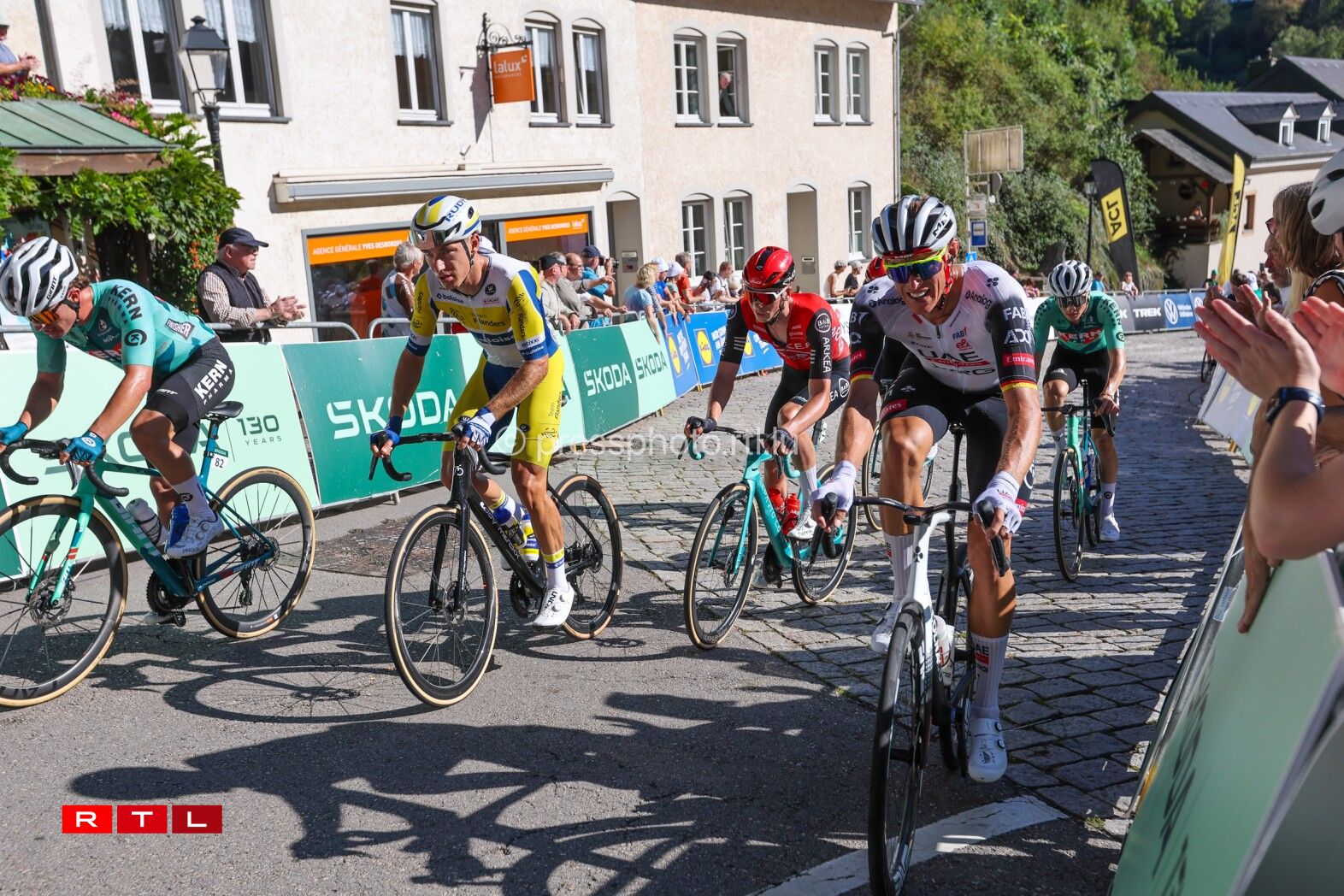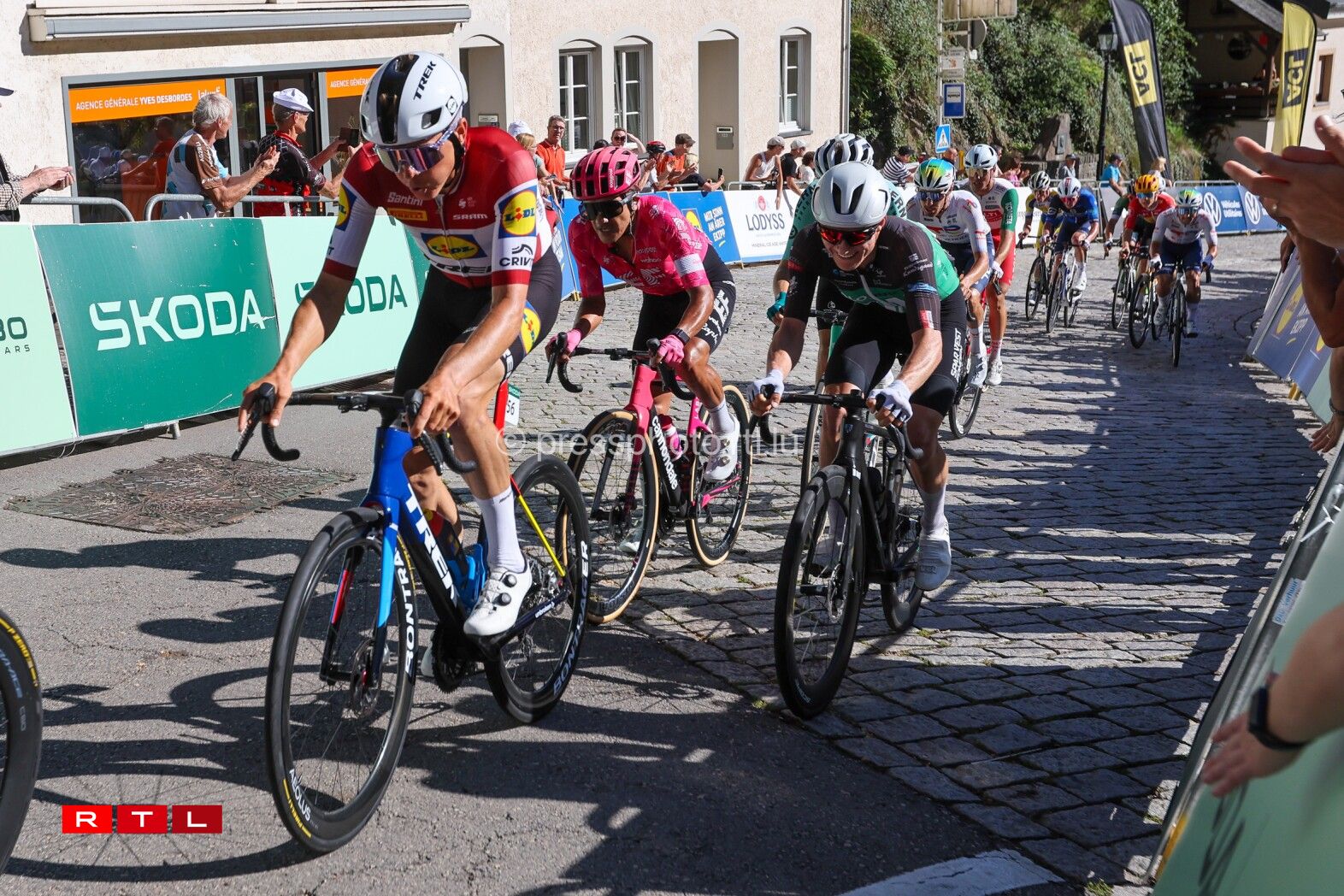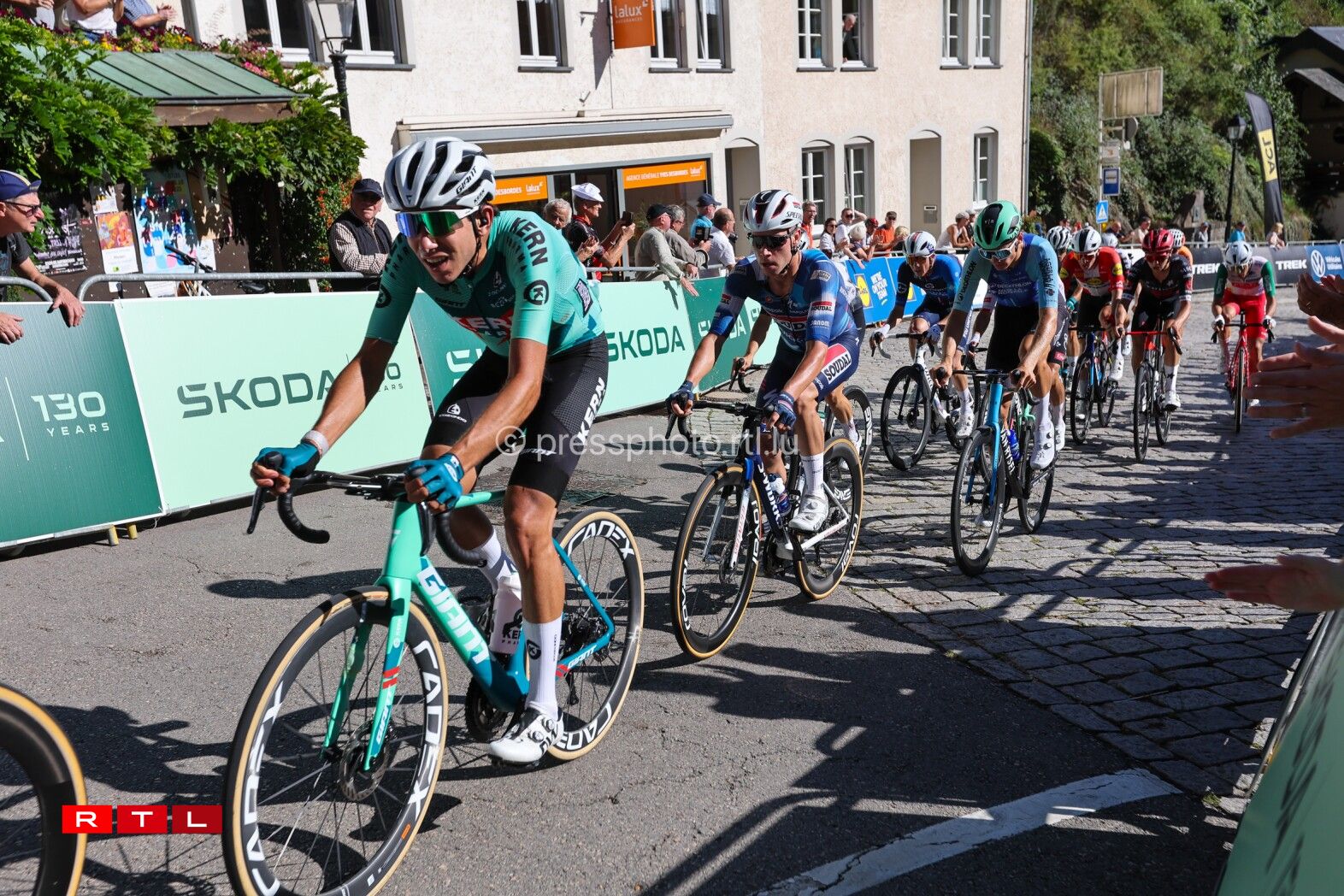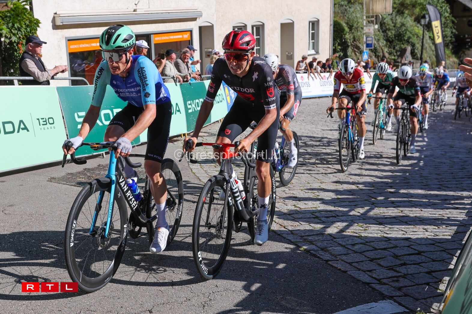 Beim leschte Passage vum Niklosbierg, eng 16 Kilometer virun der Arrivée war du Schluss fir d’Echappée vum Dag. Si si vum Grupp mat de Favoritten agefaange ginn. 9 Coureure sinn un der Spëtzt iwwereg bliwwen: Nicolas Prodhomme, Richard Carapaz, Mattias Skjelmose, Toms Skujins, Brandon McNulty, Jordan Jegat, Marco Brenner, Rafal Majka a Mathys Rondel. An der Descente ass et dem Marc Hirschi, dem Johnatan Narvaez an dem Urko Berrade gelongen, fir nach no vir bäizefueren.