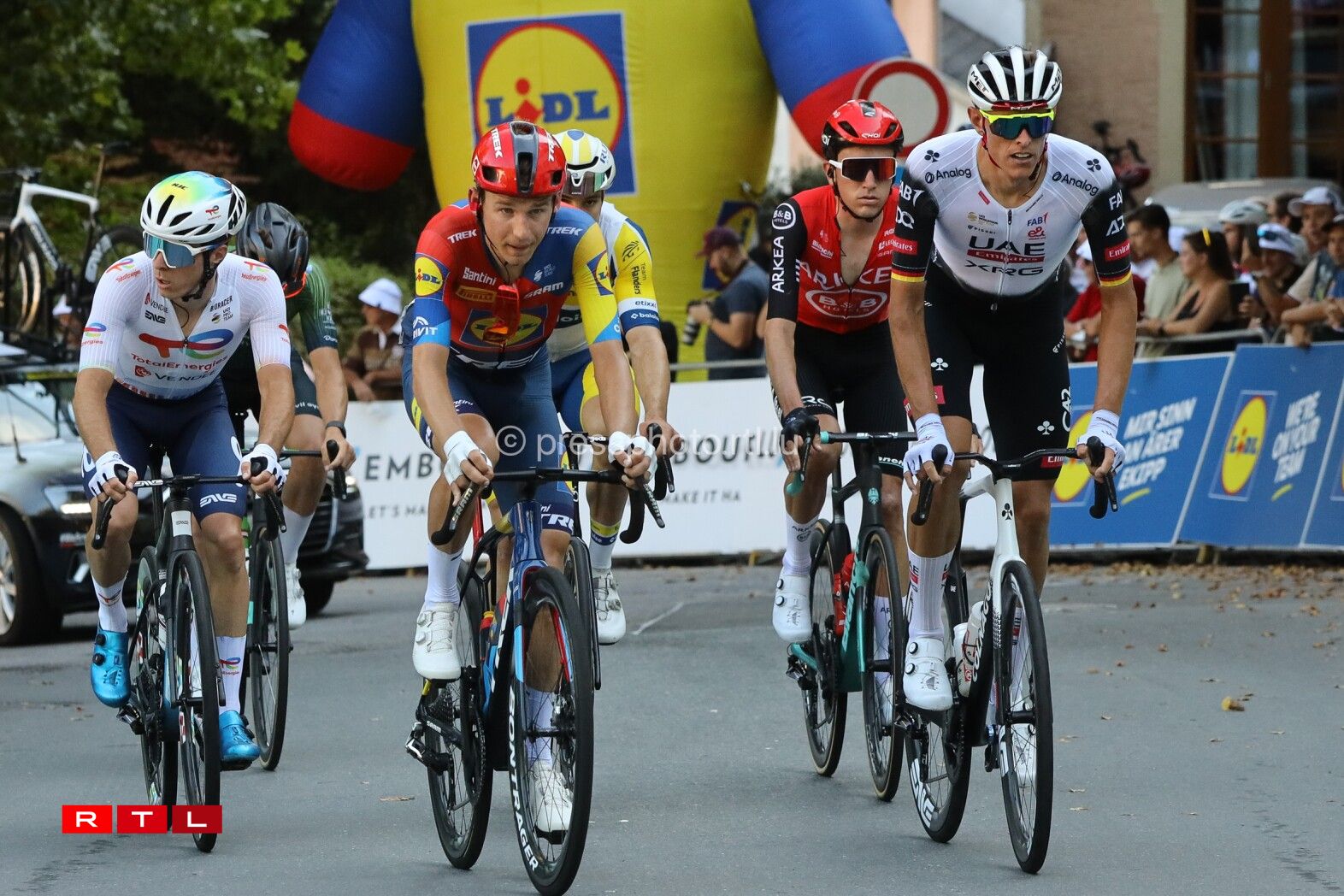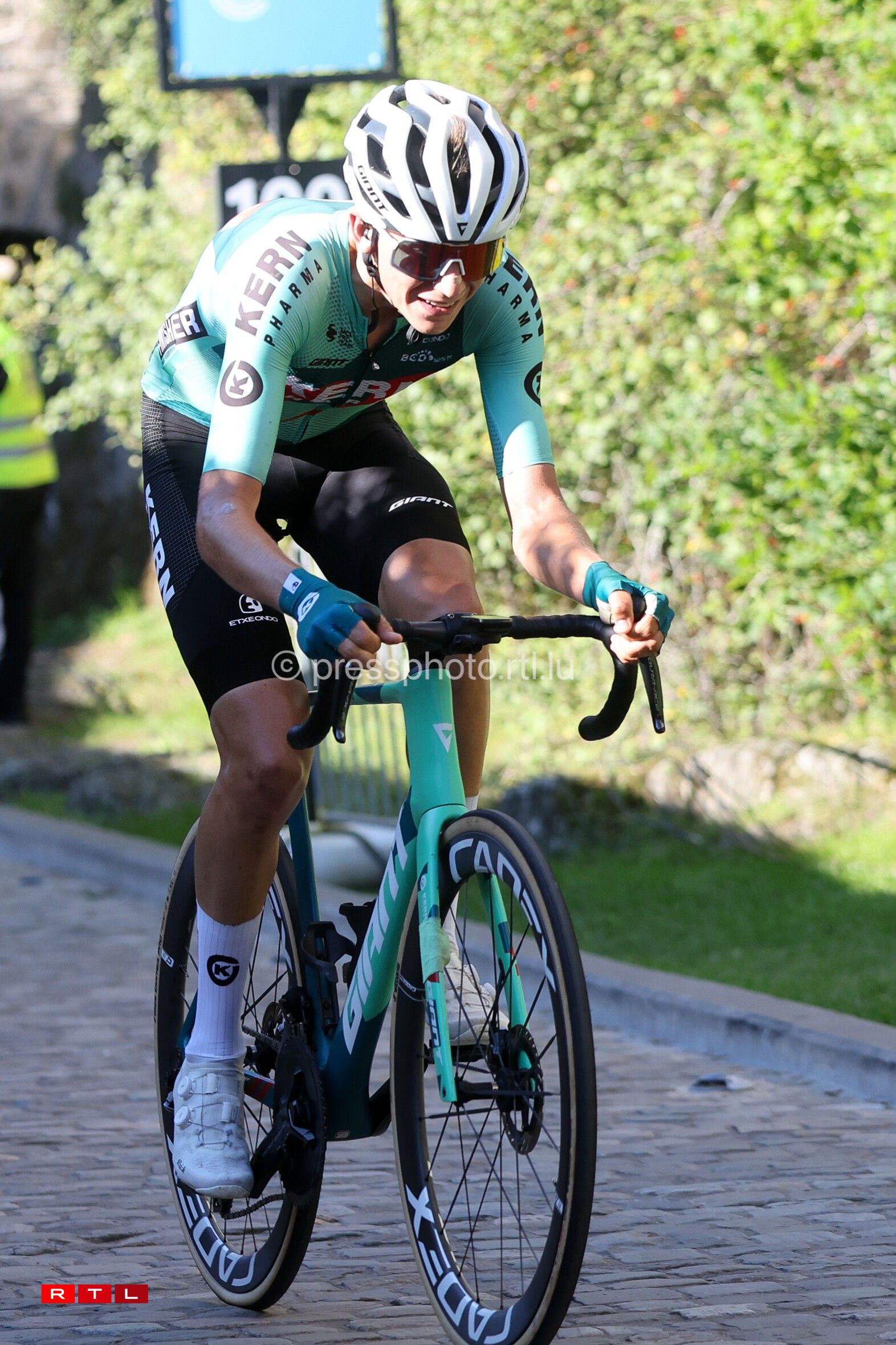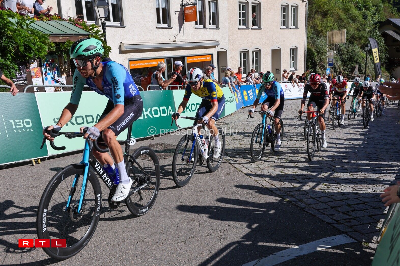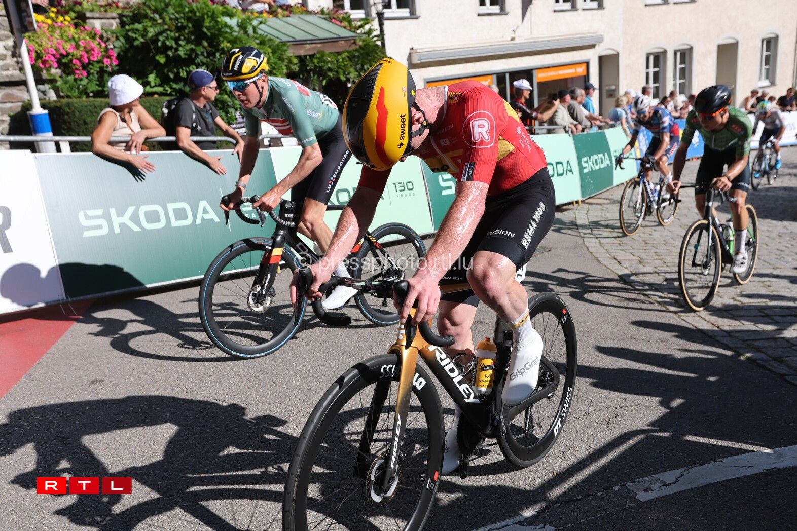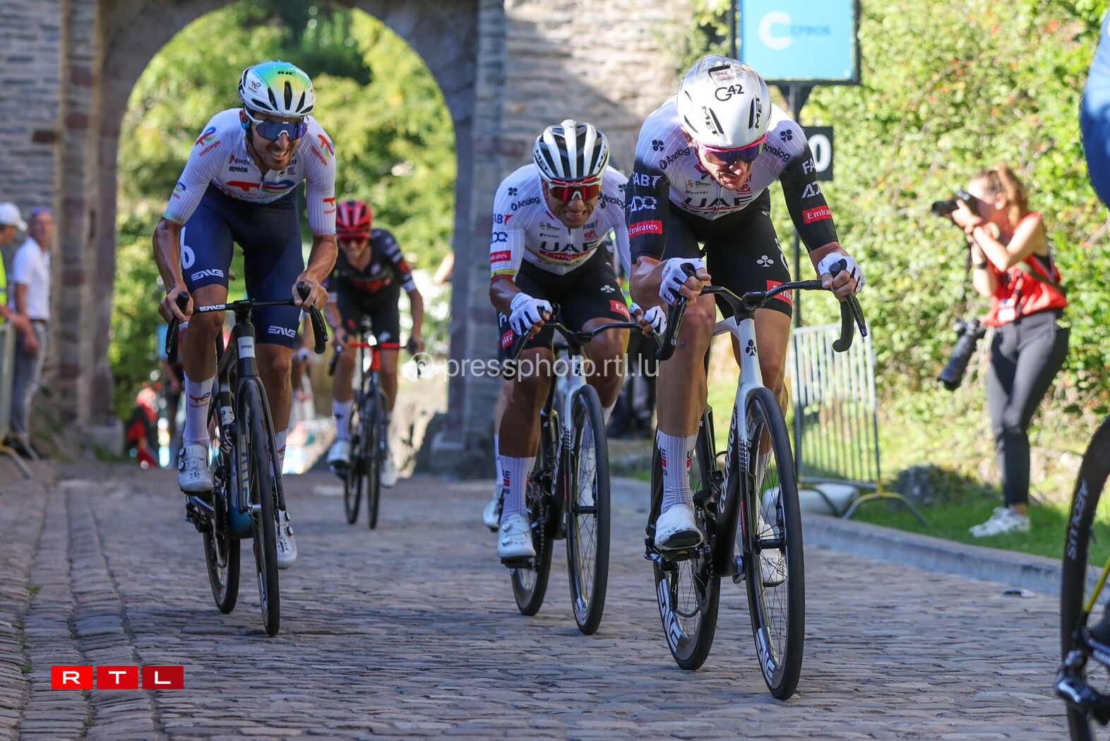Beim leschte Passage vum Niklosbierg, eng 16 Kilometer virun der Arrivée war du Schluss fir d’Echappée vum Dag. Si si vum Grupp mat de Favoritten agefaange ginn. 9 Coureure sinn un der Spëtzt iwwereg bliwwen: Nicolas Prodhomme, Richard Carapaz, Mattias Skjelmose, Toms Skujins, Brandon McNulty, Jordan Jegat, Marco Brenner, Rafal Majka a Mathys Rondel. An der Descente ass et dem Marc Hirschi, dem Johnatan Narvaez an dem Urko Berrade gelongen, fir nach no vir bäizefueren.
