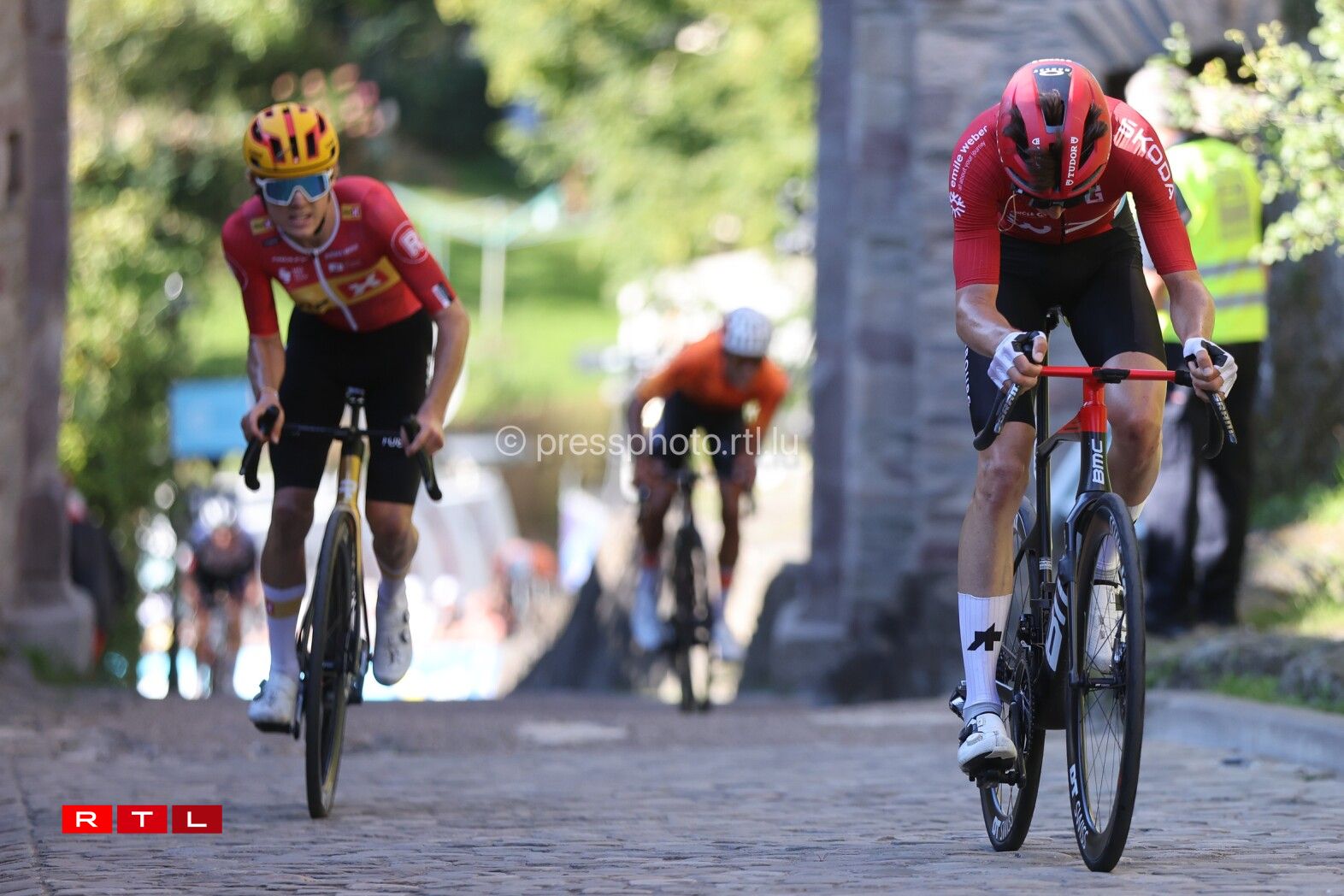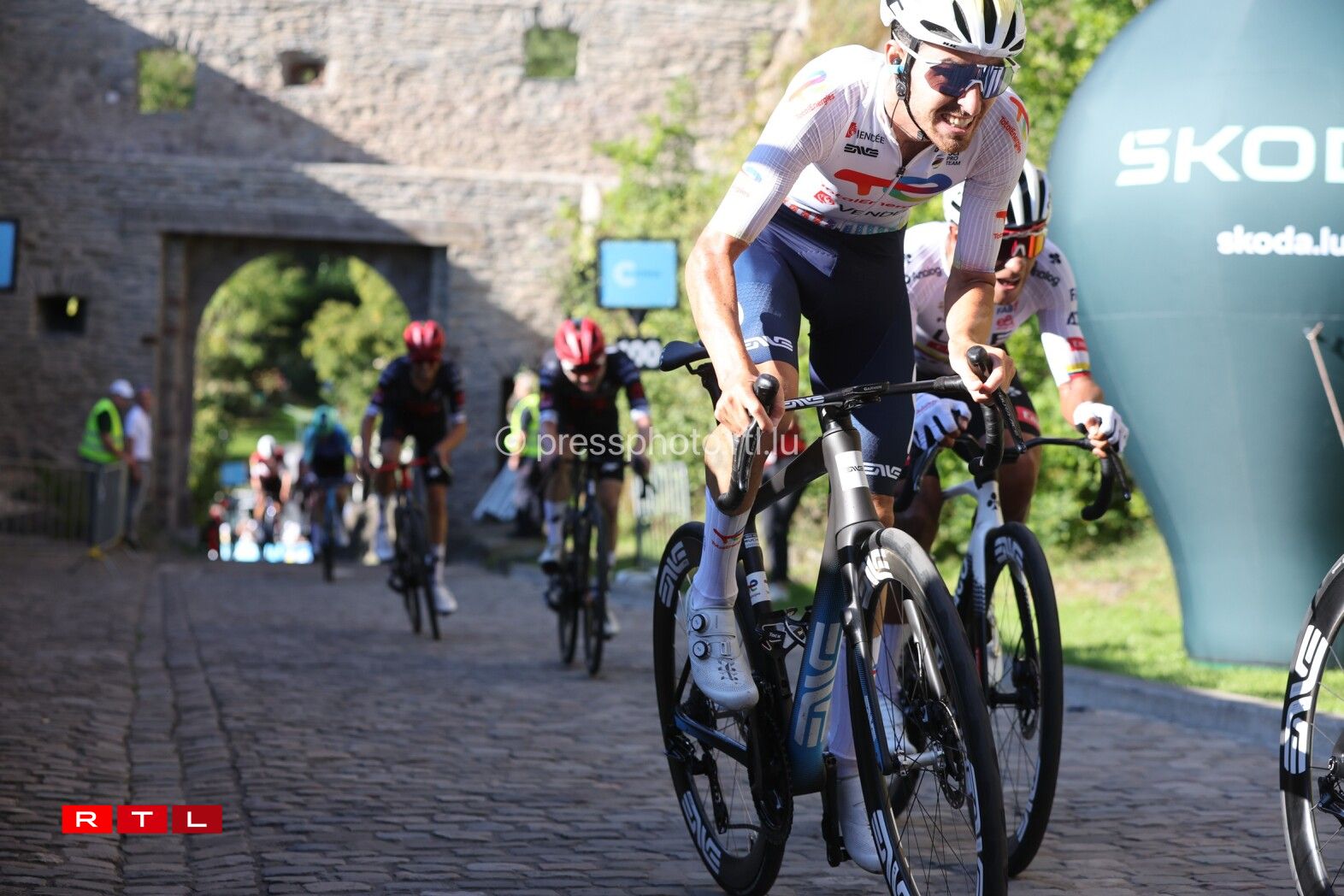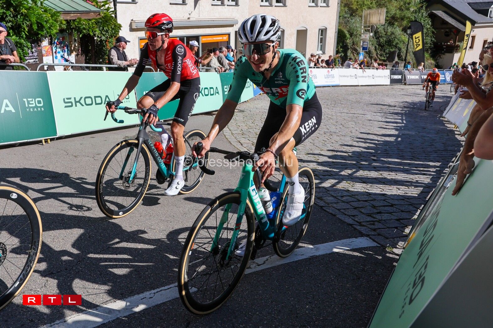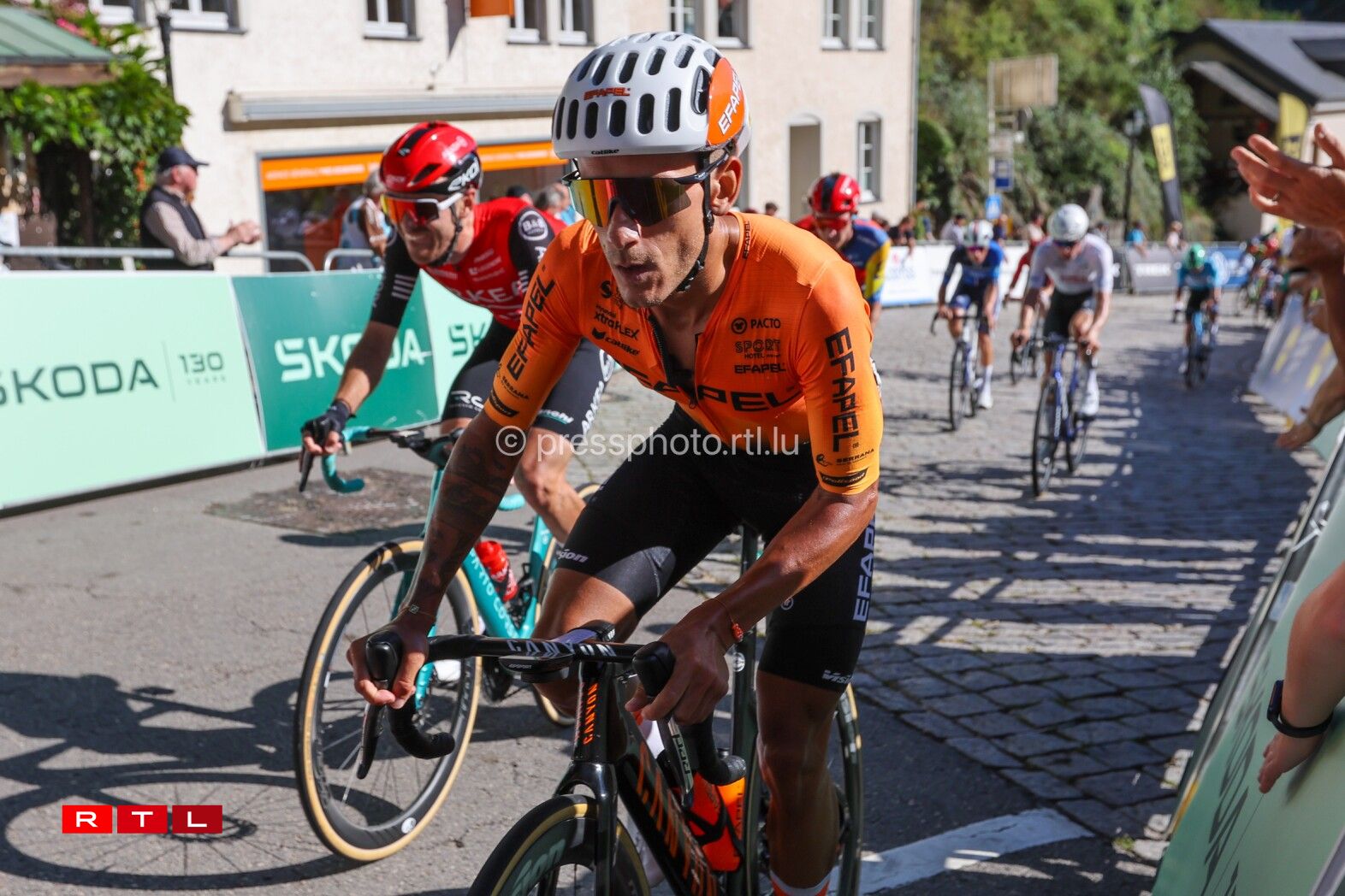 Beim leschte Passage vum Niklosbierg, eng 16 Kilometer virun der Arrivée war du Schluss fir d’Echappée vum Dag. Si si vum Grupp mat de Favoritten agefaange ginn. 9 Coureure sinn un der Spëtzt iwwereg bliwwen: Nicolas Prodhomme, Richard Carapaz, Mattias Skjelmose, Toms Skujins, Brandon McNulty, Jordan Jegat, Marco Brenner, Rafal Majka a Mathys Rondel. An der Descente ass et dem Marc Hirschi, dem Johnatan Narvaez an dem Urko Berrade gelongen, fir nach no vir bäizefueren.