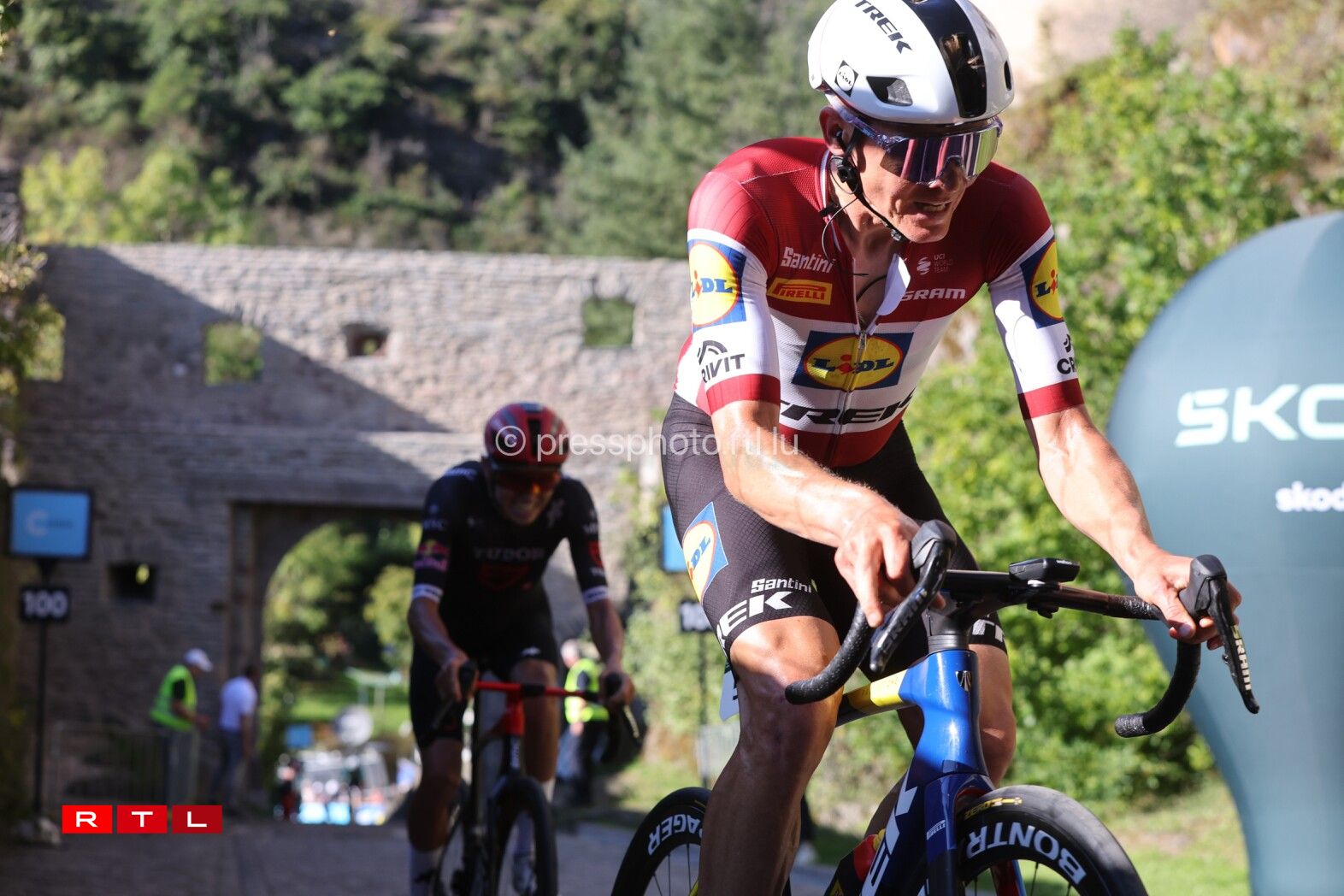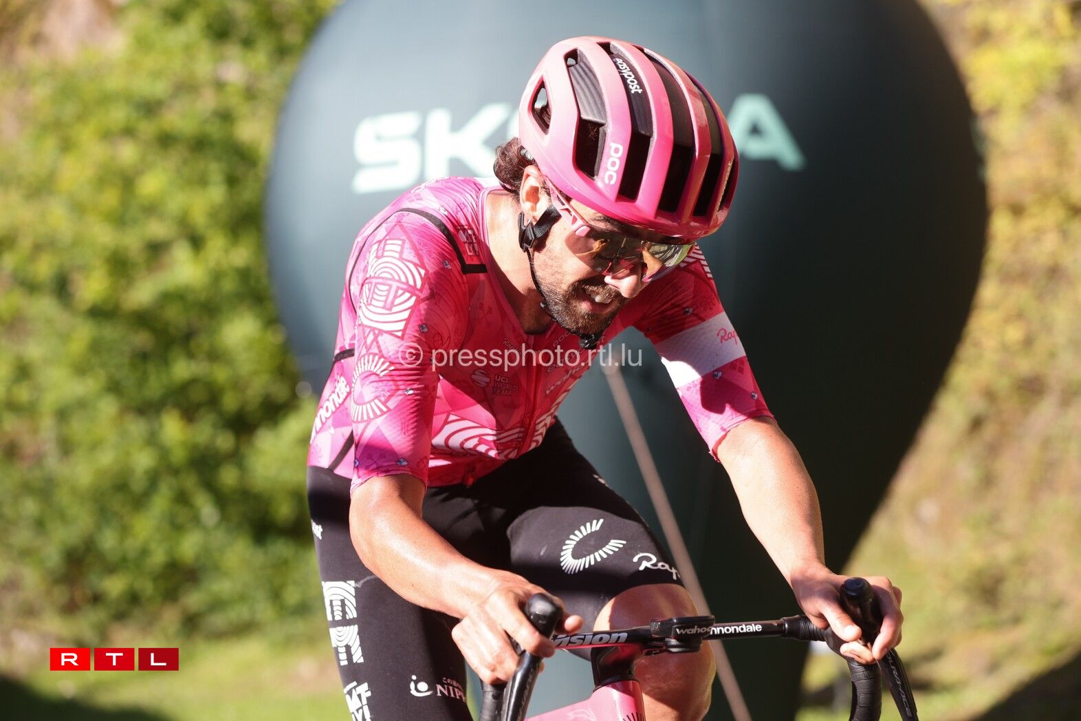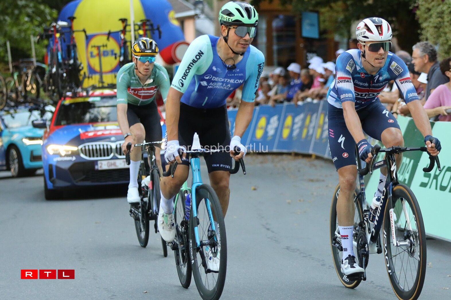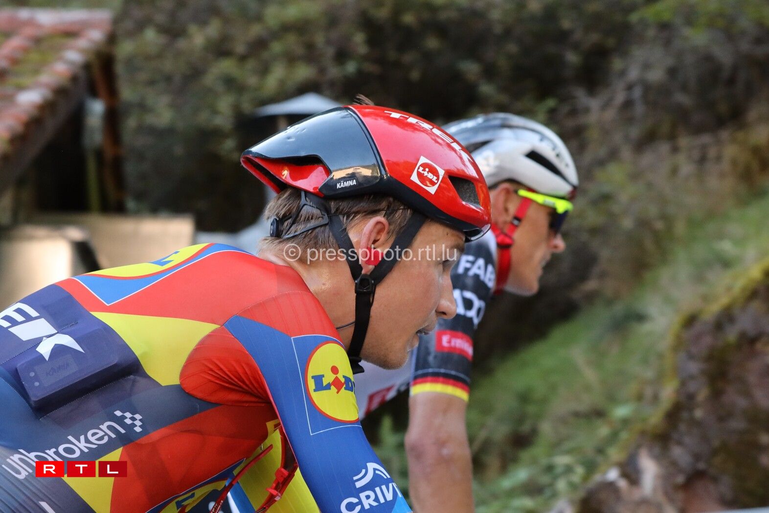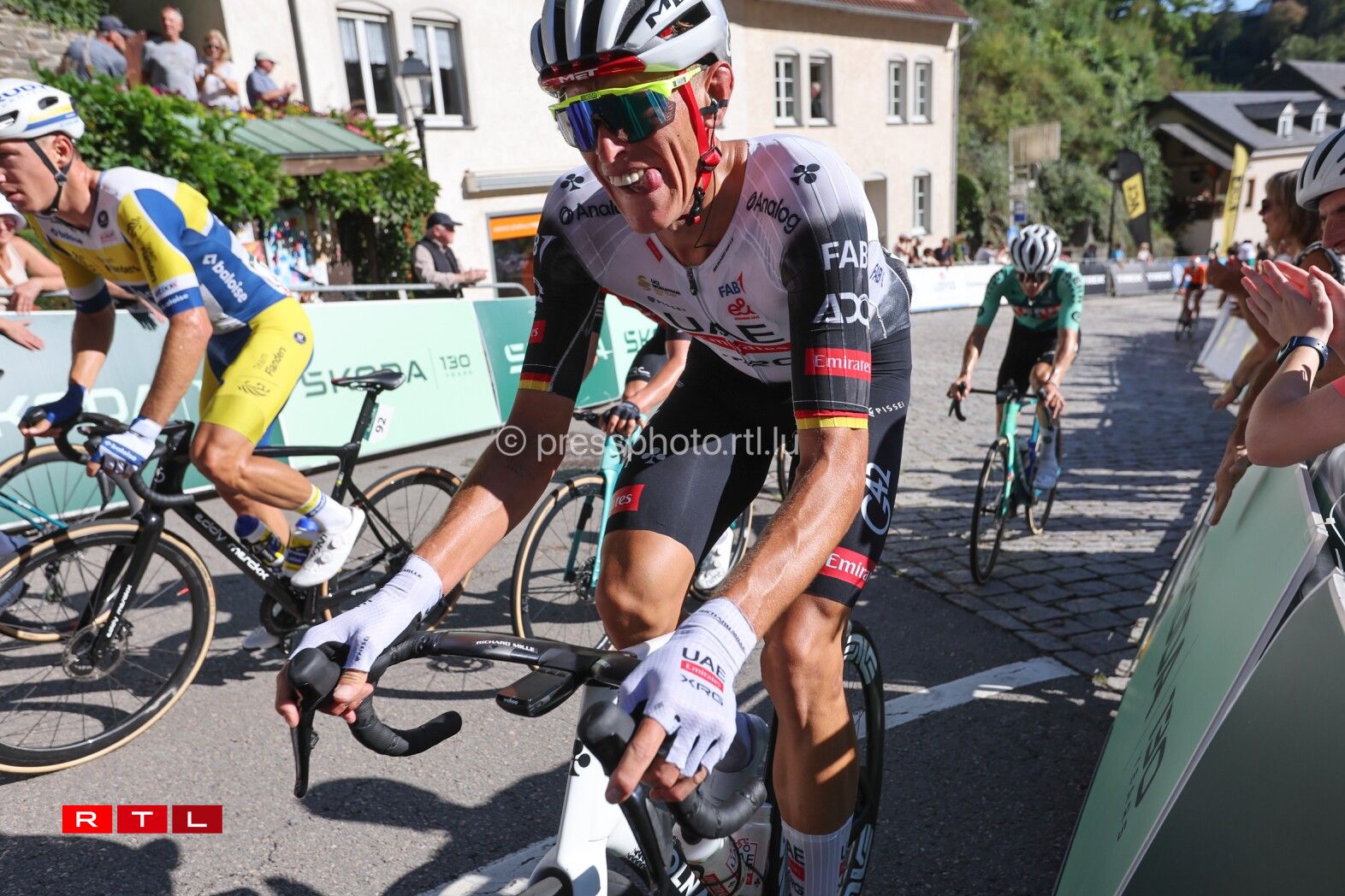 Beim leschte Passage vum Niklosbierg, eng 16 Kilometer virun der Arrivée war du Schluss fir d’Echappée vum Dag. Si si vum Grupp mat de Favoritten agefaange ginn. 9 Coureure sinn un der Spëtzt iwwereg bliwwen: Nicolas Prodhomme, Richard Carapaz, Mattias Skjelmose, Toms Skujins, Brandon McNulty, Jordan Jegat, Marco Brenner, Rafal Majka a Mathys Rondel. An der Descente ass et dem Marc Hirschi, dem Johnatan Narvaez an dem Urko Berrade gelongen, fir nach no vir bäizefueren.