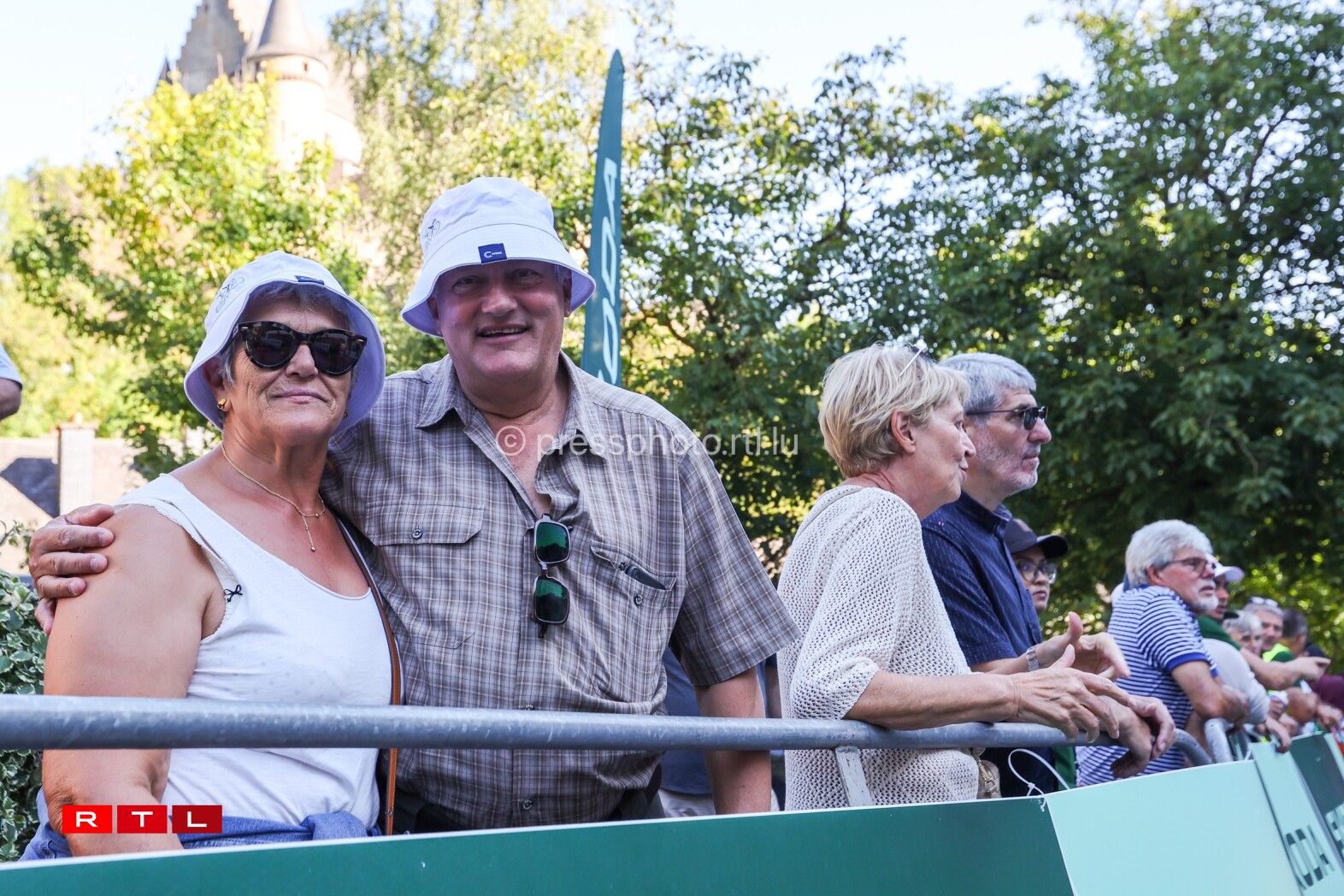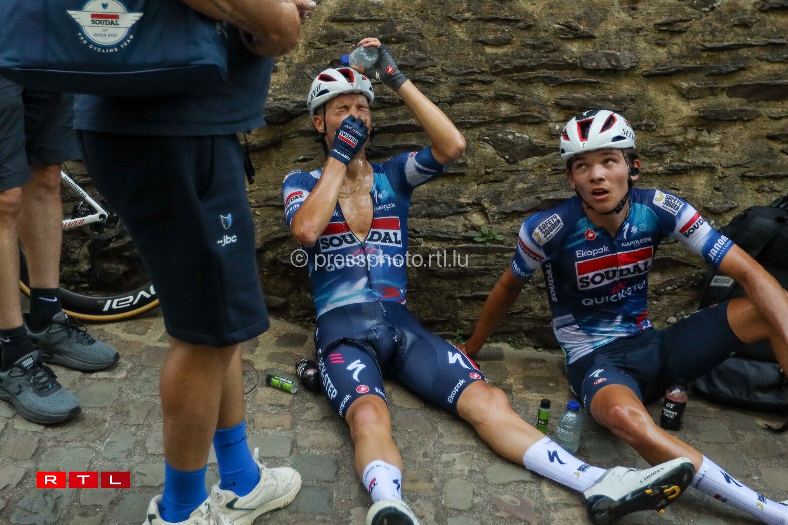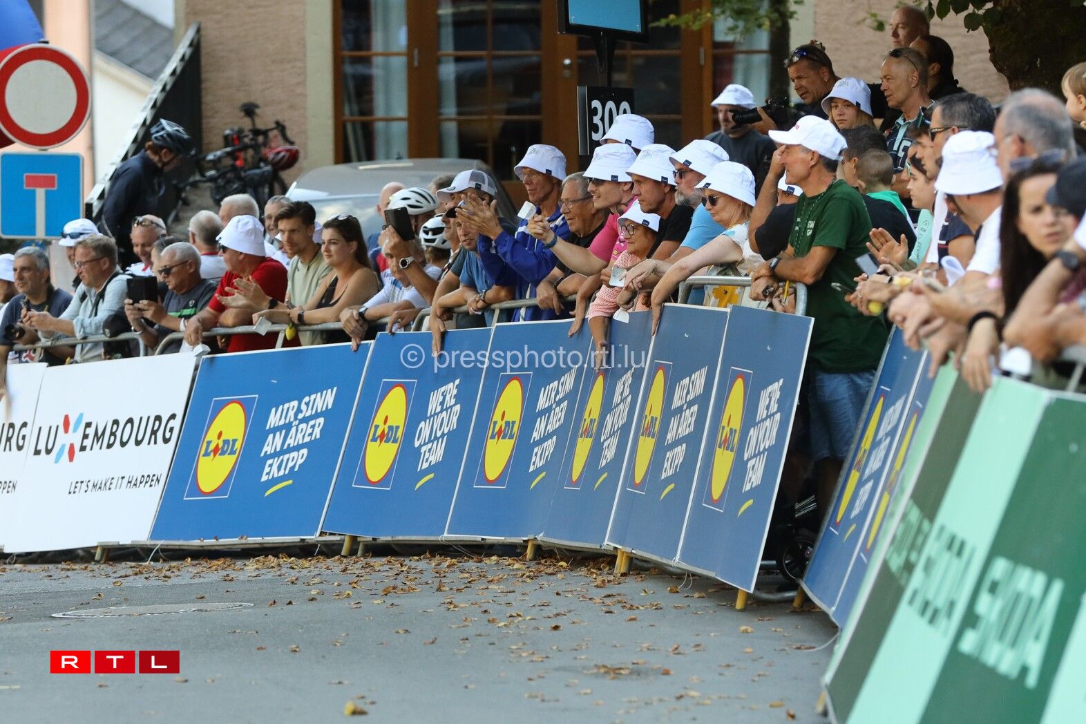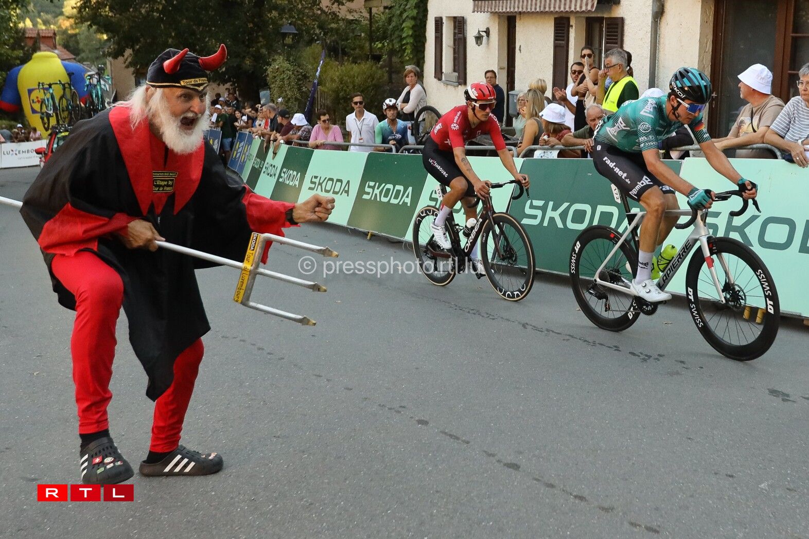 34 Kilometer virun der Arrivée ass et eng zweete Kéier den Niklosbierg eropgaangen. Un der Spëtzt louche mat Guglielmi, Gachignard, Renard-Haquin an Holter weiderhi véier Coureuren. Do hannendrun huet sech een neien zweete Grupp mat 18 Coureure forméiert. Mat dobäi fënnef Coureure vun UEA (Torres, Arrieta, McNulty, Narvaez a Majka) an dann och engem Richard Carapaz oder dem Mattias Skjelmose. Si haten nach e Retard vu gutt 35 Sekonnen op d’Spëtzt. An engem drëtte Grupp hu sech de Maillot Jaune Romain Grégoire an och d’Lëtzebuerger Mats Wenzel an Arno Wallenborn erëmfonnt.