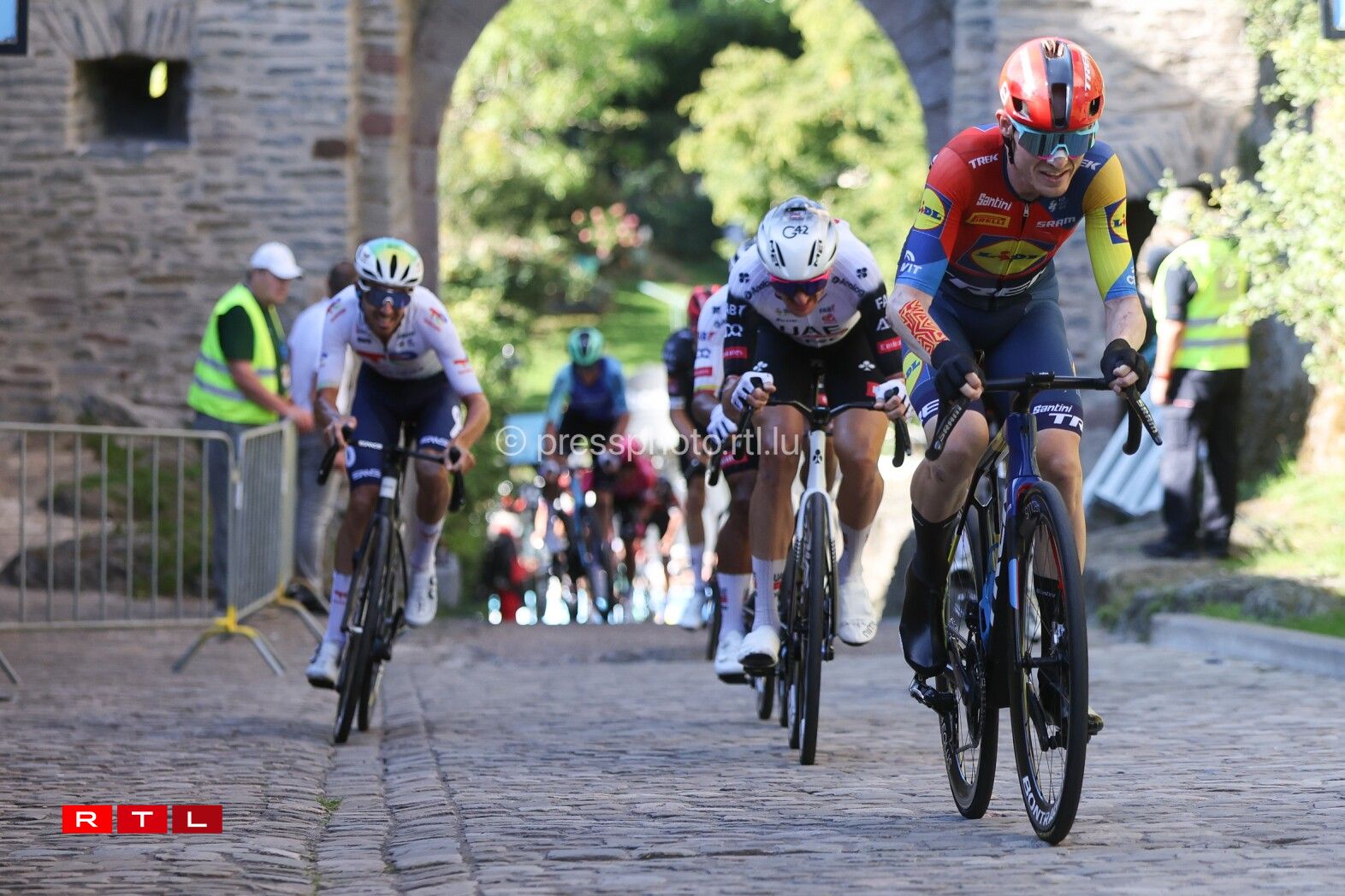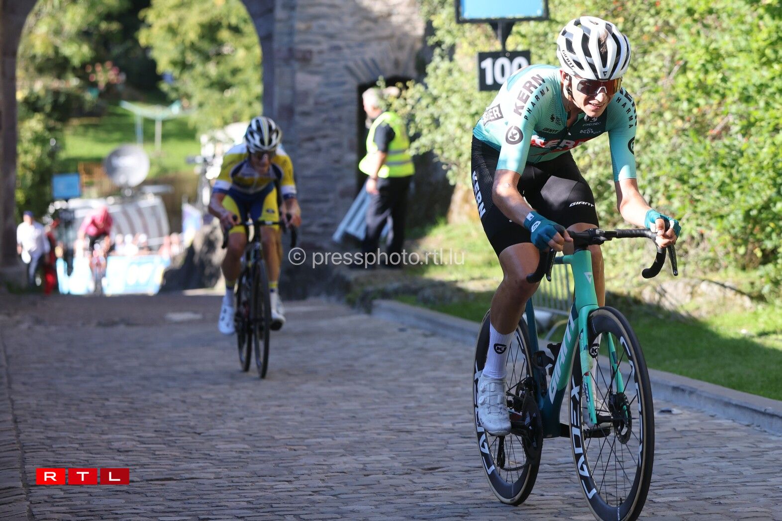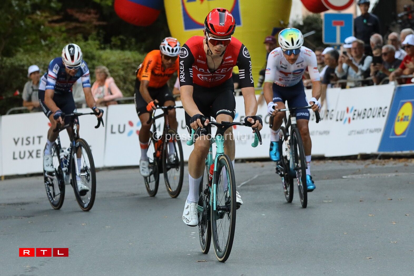 Um Schlusscircuit ass d’Decisioun ëm d’Victoire gefall. Direkt beim éischte Passage vum Niklosbierg (50km virun der Arrivée) hunn am Spëtzegrupp missen dräi Leit lassloossen an nëmmen nach Guglielmi, Gachignard, Renard-Haquin an Holter sinn iwwreg bliwwen. Am Peloton war den Tempo och extrem héich, esou datt dësen ausernee gefuer ass. Et huet sech en zweete Grupp mat 15 Coureure forméiert, ënnert hinnen de Sören Kragh Andersen an de Rafal Majka. Gefeelt hunn Nimm wéi Brandon McNulty, Ben Healy oder dee vum Leader Romain Grégoire. An och d’Lëtzebuerger Arno Wallenborn a Mats Wenzel haten de Sprong an deen zweete Grupp verpasst.