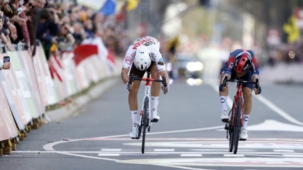 Aus deem Grupp war et de Michal Kwiatkowski, dee konnt dovun zéien a just nach vum Benoît Cosnefroy ageholl konnt ginn. 10 Kilometer virun der Arrivée haten déi zwee Coureuren ee Virsprong vu 27 Sekonnen, dee kee vun den néng Coureuren aus dem Spëtzegrupp méi konnt ophuelen. Am Sprint ass et nach eemol ganz knapp ginn, ma de Michal Kwiatkowski wënnt duerch de Photo Finish virum Benoît Cosnefroy. Drëtten ass den Tiesj Benoot ginn wärend de Favorit Mathieu van der Poel sech mat der 4. Plaz muss zefridde ginn.