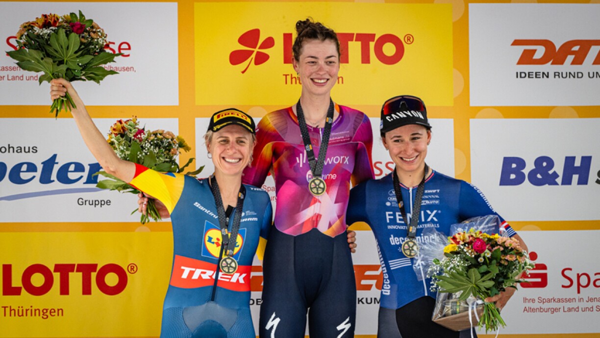 Beim Zäitfuere ronderëm Altenburg am däitschen Thüringen ass d’Mischa Bredewold déi séierst Zäit gefuer. D’Hollännerin huet déi 31,5 Kilometer an 43 Minutten a 4 Sekonnen hannert sech bruecht a war domat eelef Sekonne méi séier wéi d’Brodie Chapman aus Australien. D’Christina Schweinberger aus Éisträich (+ 22'’) huet de Podium komplettéiert.