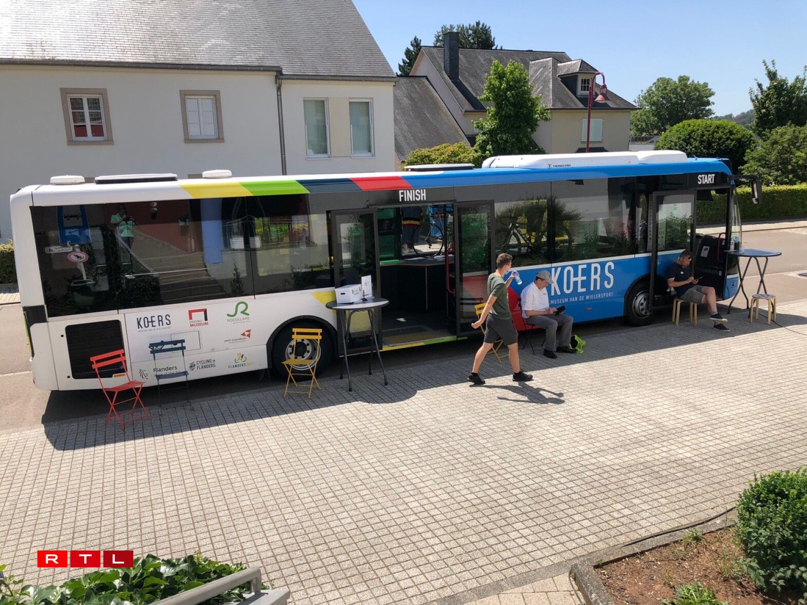 De KoersBus, e gebrauchte Bus, deen zu engem Vëlosmusée ëmgebaut gouf, war e Sonndeg zu Garnech. Am Bus fënnt een ënnert anerem Vëloe vum Eddy Merckx, Annemiek van Vleuten an Tony Martin. Donieft fënnt ee Poustere vun organiséierte belsche Weltcup-Manchen, grad wéi Medailen an Trikoten. D’Zil ass et, de Visiteuren besonnesch ze weisen, firwat Flandern fir d’Weltmeeschterschaft erausgesicht gouf.