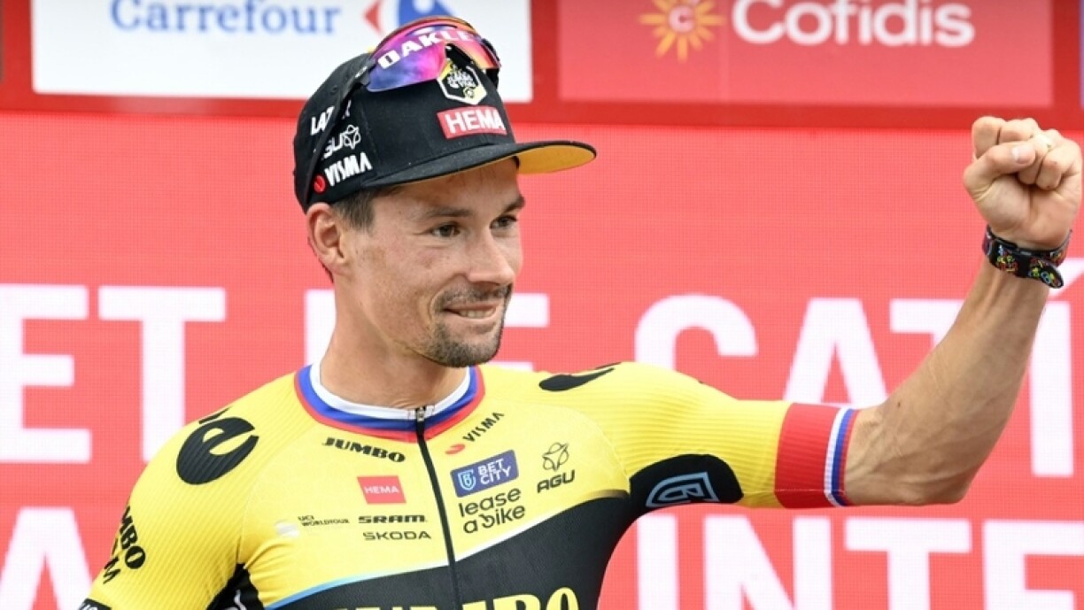 Et sollt e gudden Dag fir Jumbo Visma ginn. Mam Roglic konnte si sech d’Victoire vun dëser Etapp sécheren a mam Kuss dréit elo och ee vun hire Coureuren de roude Maillot op senge Schëlleren. Béid waren an der Grupp vun de Favoritten ënnerwee, déi an der leschter Montée vun der Kategorie 1 déi lescht Coureure vun der Echappée ageholl haten. Ëmmerhin hate sech eng 30 Mann zesummefonnt, déi d’Course ënnert sech ausmaache wollten.