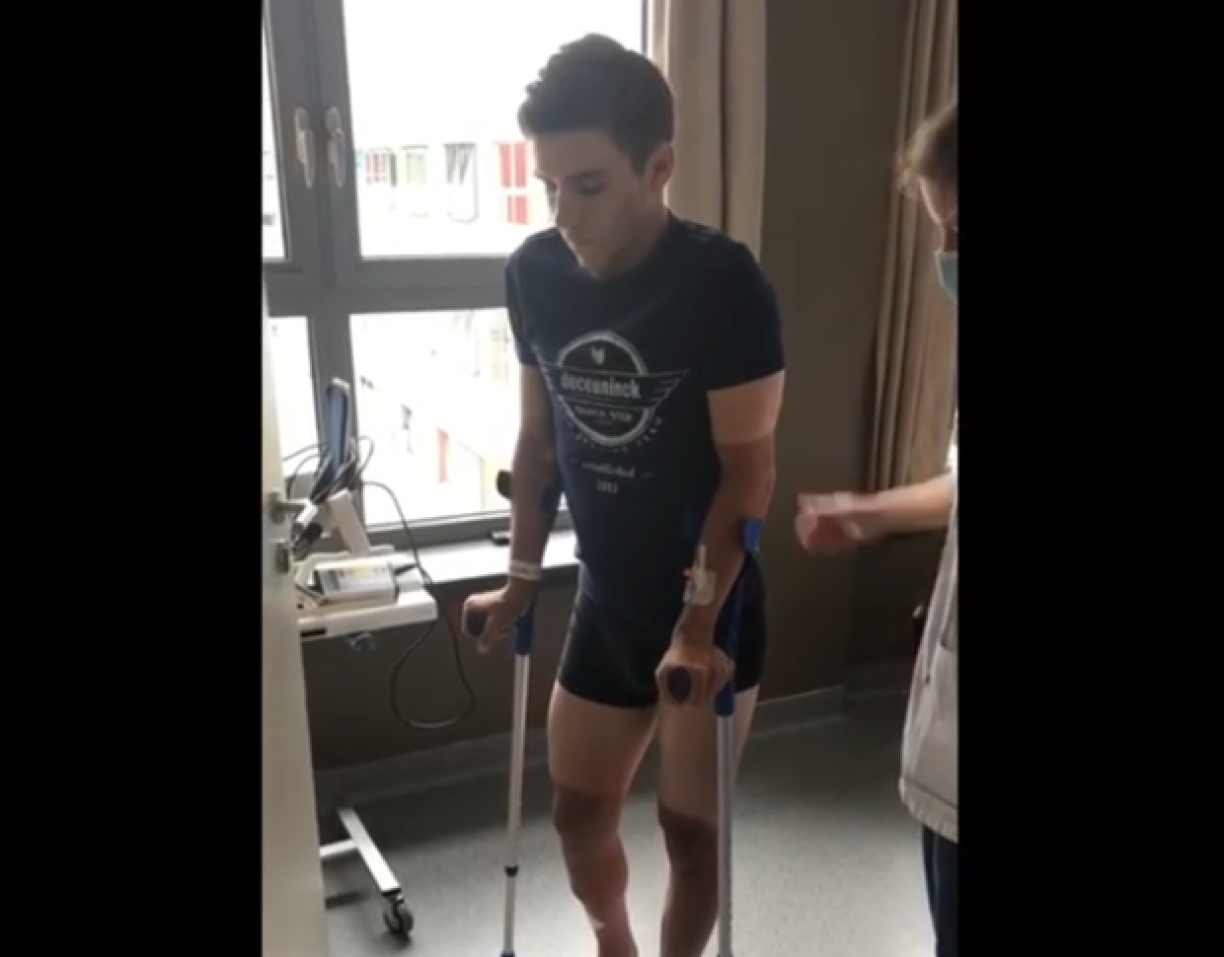 De Coureur vun Deceuninck-Quick-Step huet en Donneschdeg ee Video op sengem Instagram-Account verëffentlecht, wou hie mat Kretsche seng éischt Schrëtt zanter sengem Accident mécht.