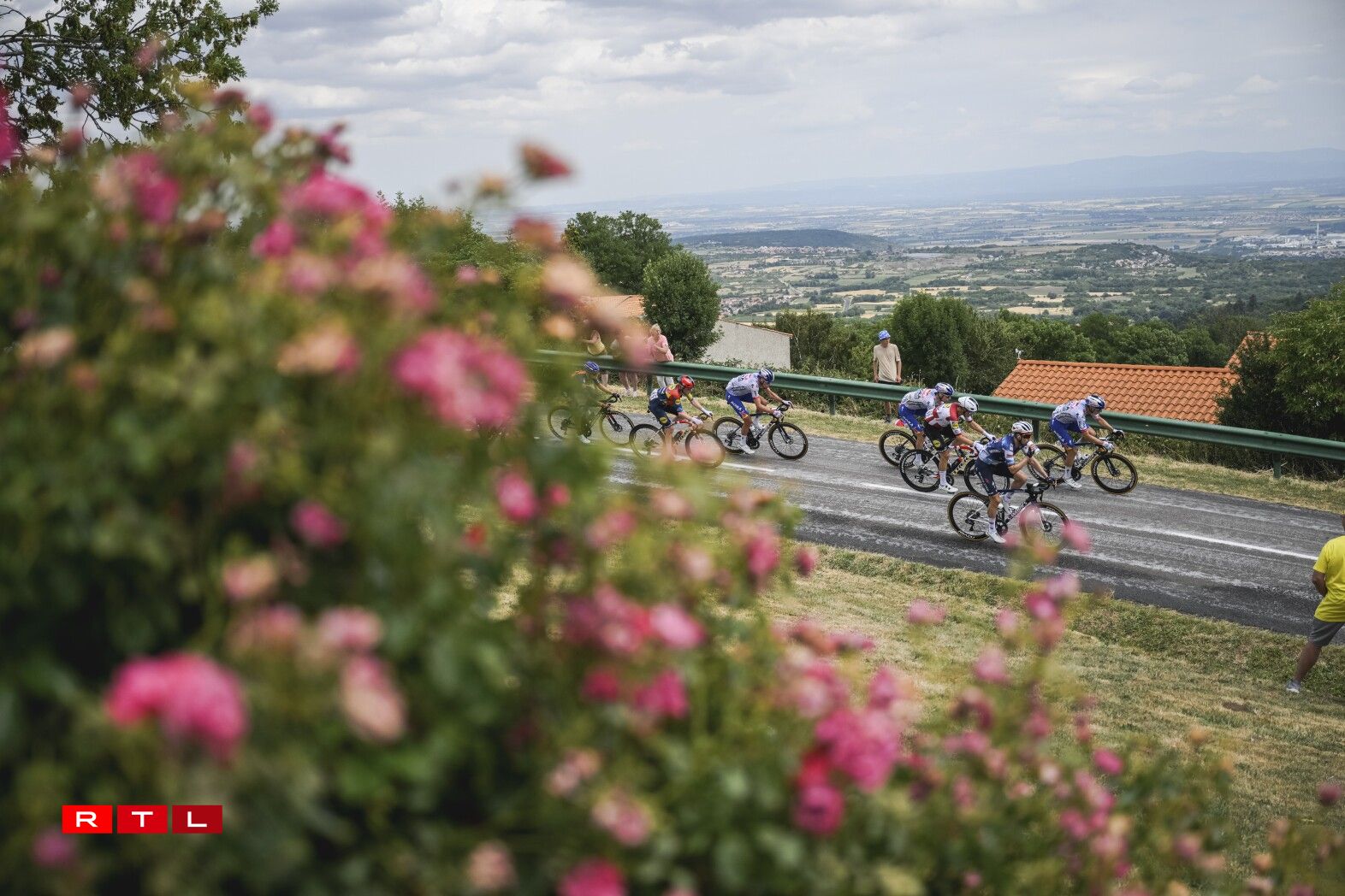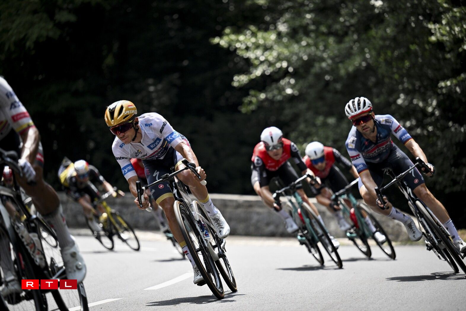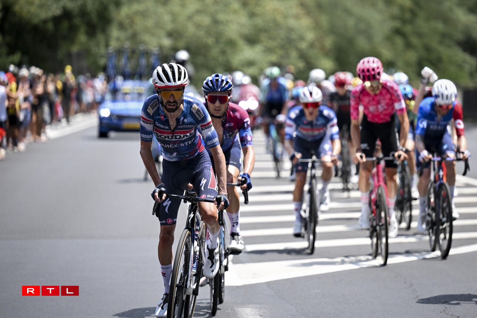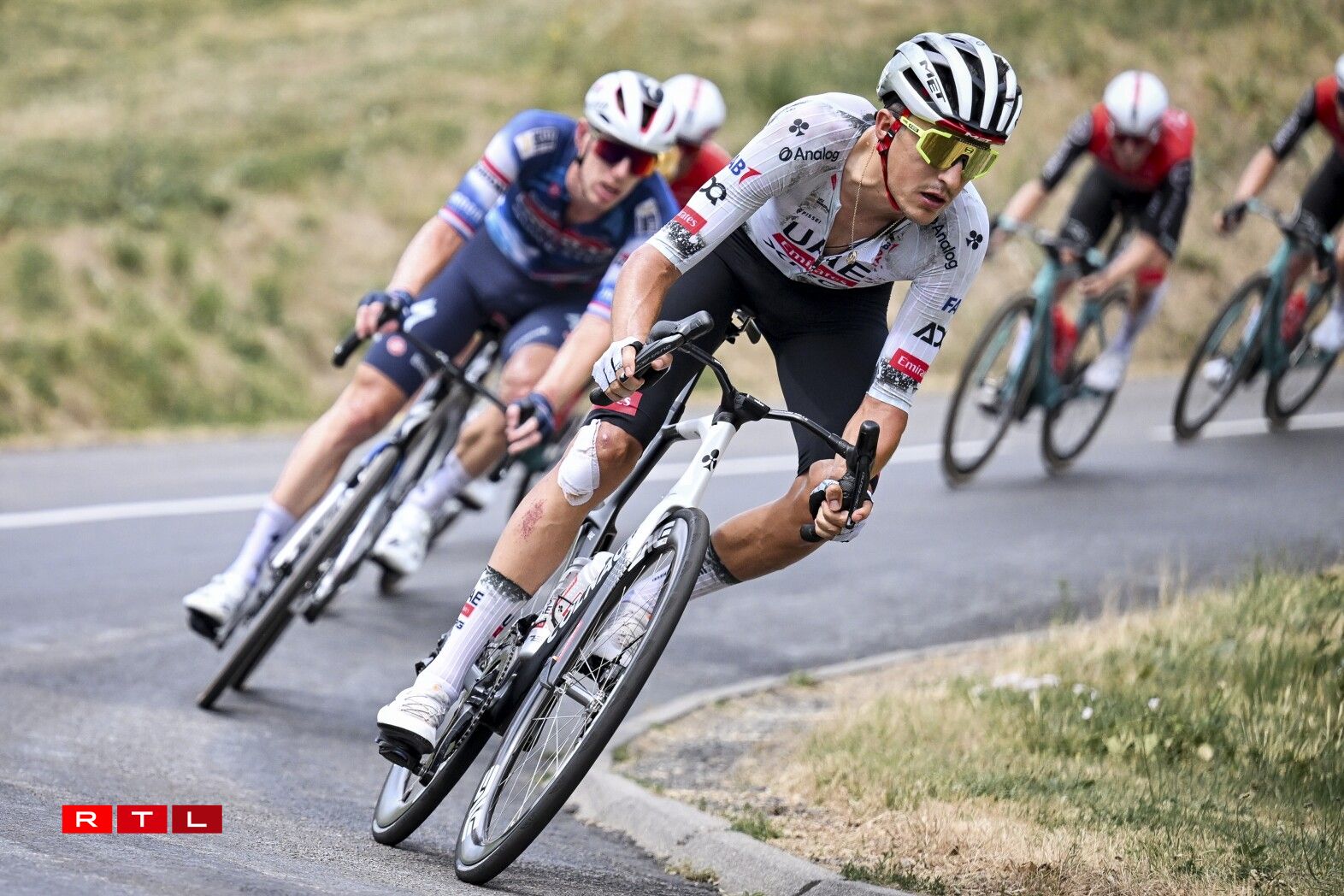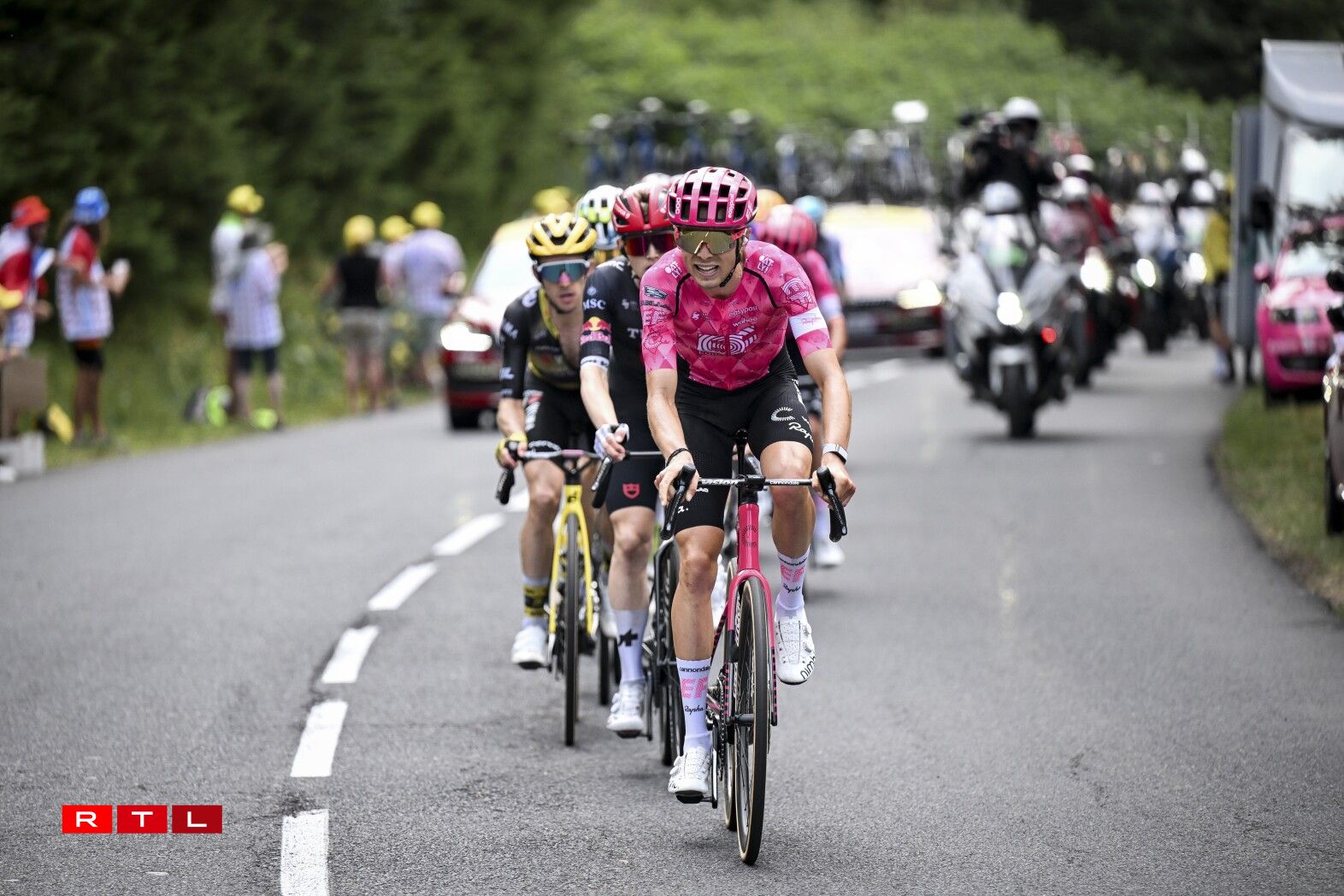 Am Spëtzegrupp goufen et ëmmer rëm Attacken, zum Beispill vum Remco Evenepoel a vum Florian Lipowitz. An der Suite huet den Tadej Pogacar den Tempo ugezunn. De Jonas Vingegaard konnt reagéieren, den Evenepoel gouf distanzéiert. An der Suite huet den Duo Tempo rausgeholl an hat um Enn e Retard vu véier Minutten an 51 Sekonnen op de Simon Yates.