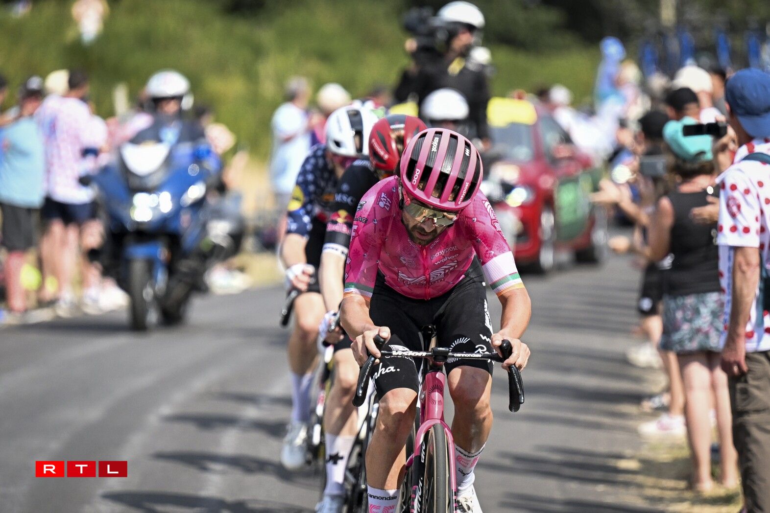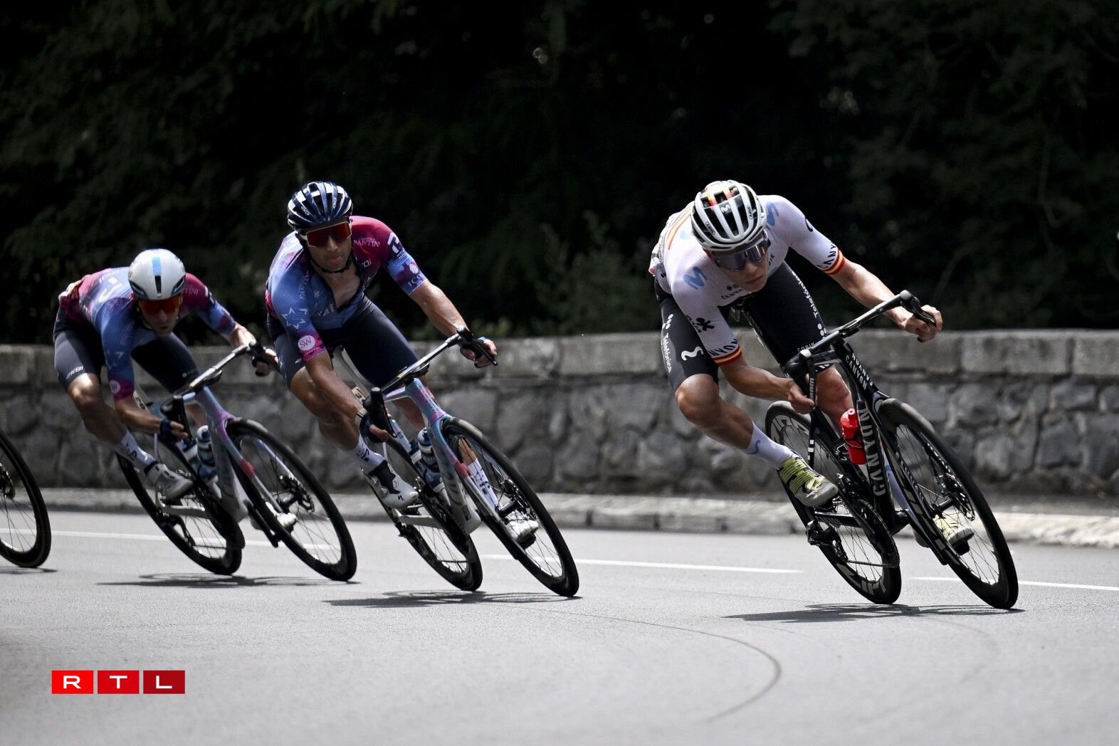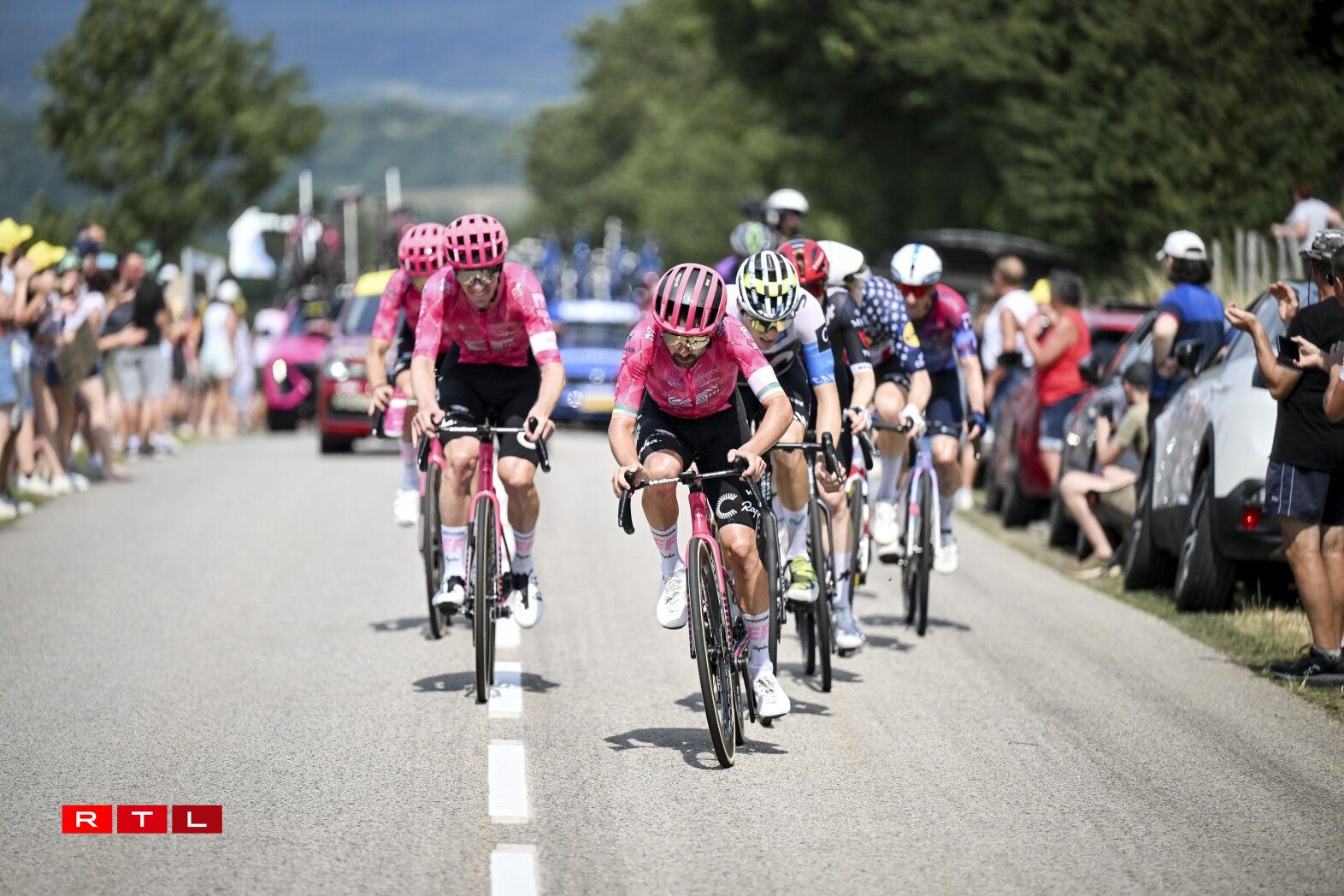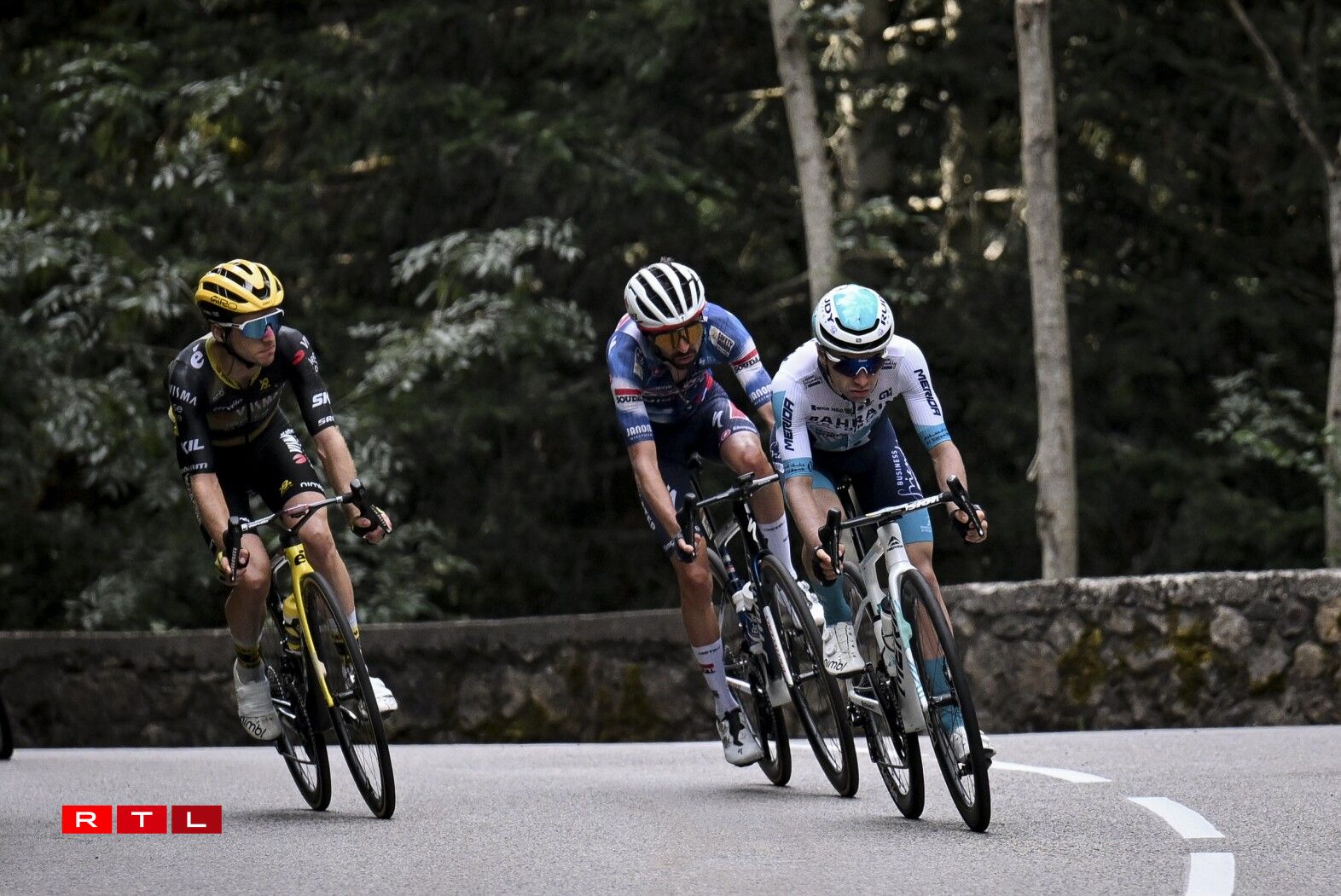 Am Spëtzegrupp goufen et ëmmer rëm Attacken, zum Beispill vum Remco Evenepoel a vum Florian Lipowitz. An der Suite huet den Tadej Pogacar den Tempo ugezunn. De Jonas Vingegaard konnt reagéieren, den Evenepoel gouf distanzéiert. An der Suite huet den Duo Tempo rausgeholl an hat um Enn e Retard vu véier Minutten an 51 Sekonnen op de Simon Yates.