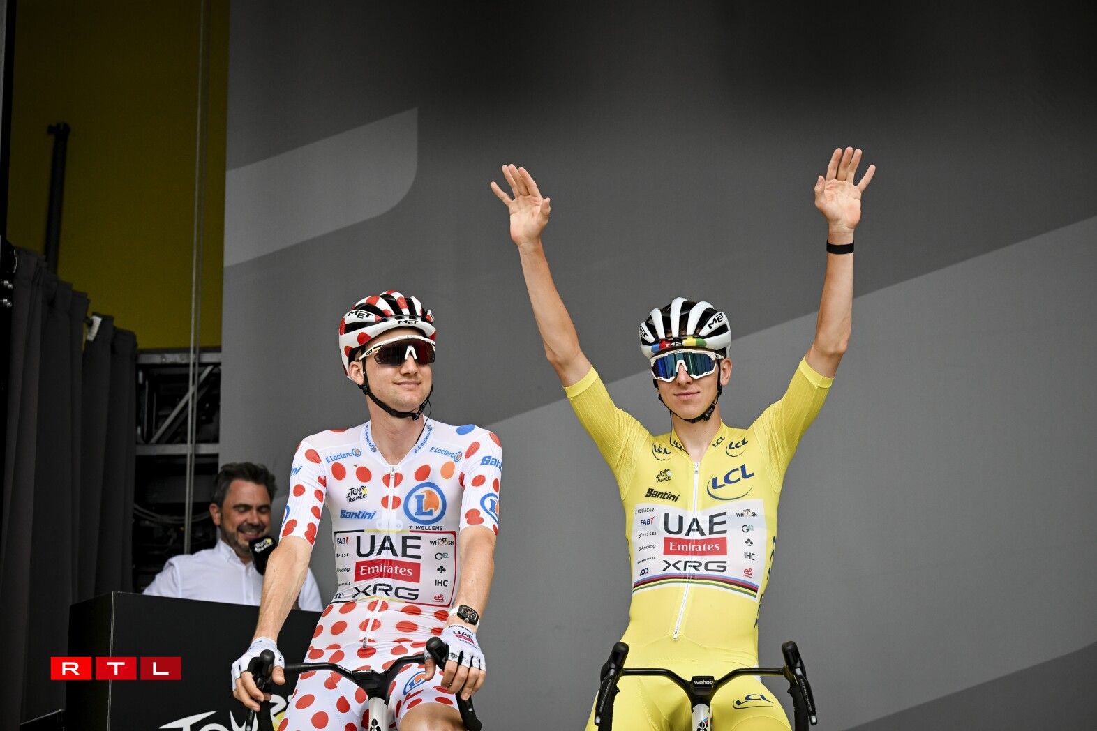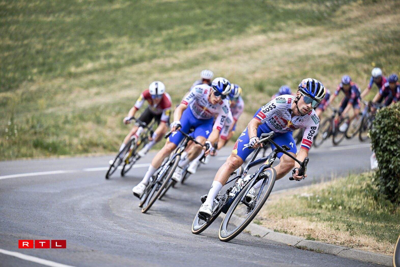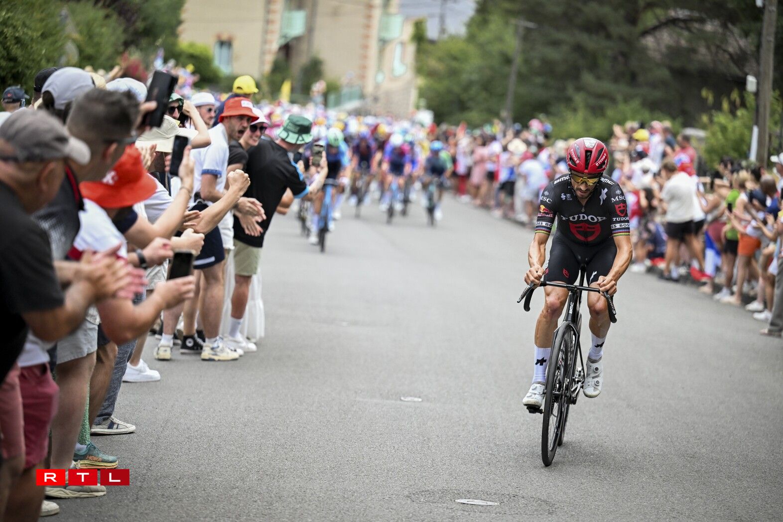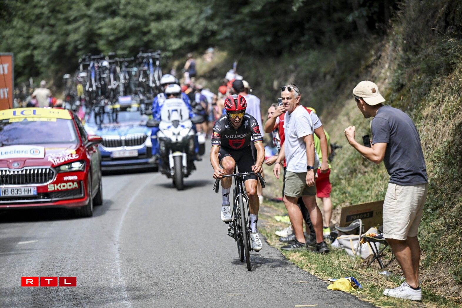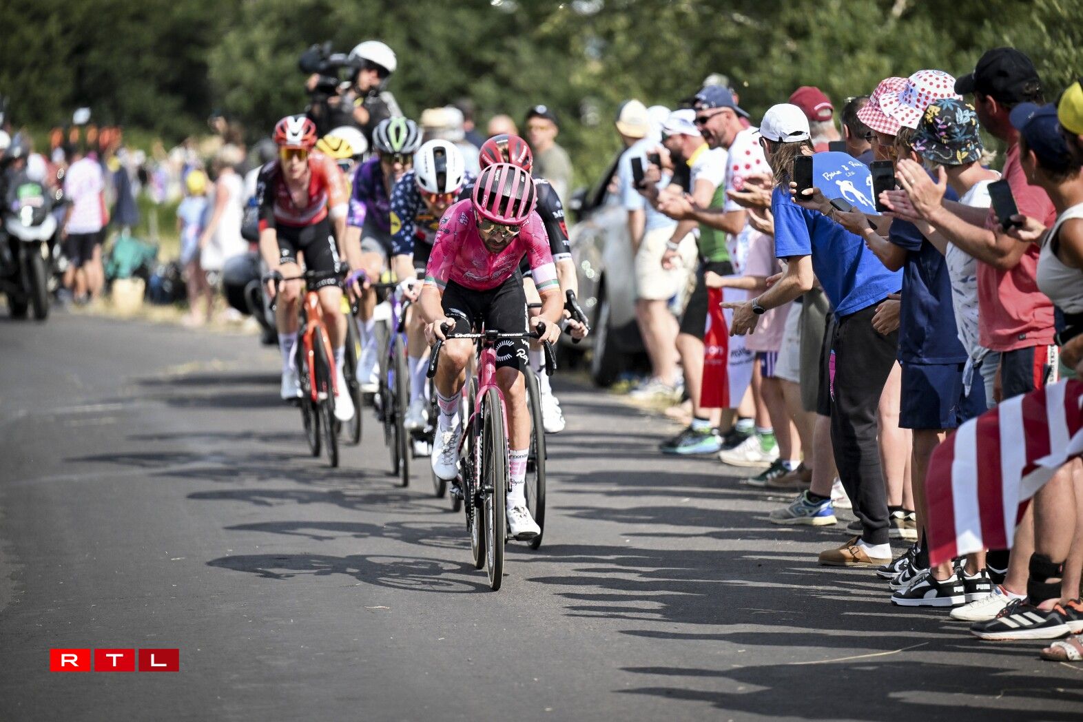 Am Spëtzegrupp goufen et ëmmer rëm Attacken, zum Beispill vum Remco Evenepoel a vum Florian Lipowitz. An der Suite huet den Tadej Pogacar den Tempo ugezunn. De Jonas Vingegaard konnt reagéieren, den Evenepoel gouf distanzéiert. An der Suite huet den Duo Tempo rausgeholl an hat um Enn e Retard vu véier Minutten an 51 Sekonnen op de Simon Yates.