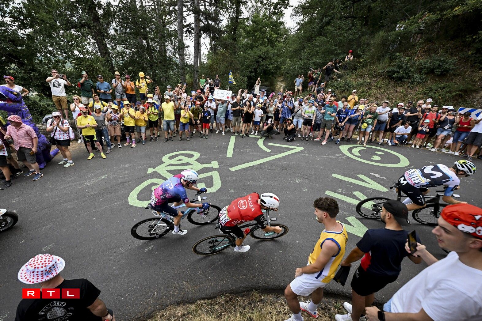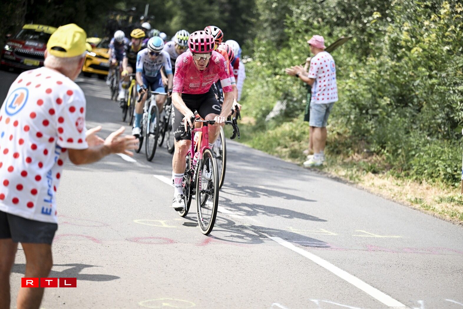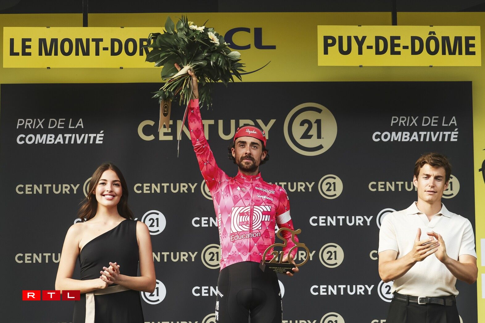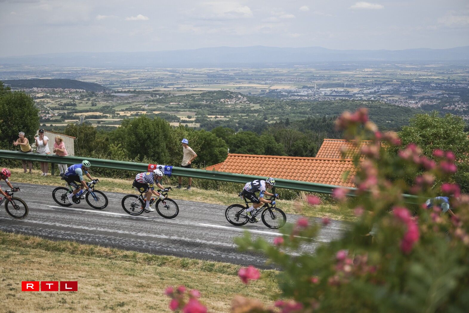 Op der 10. Etapp vun der Grande Boucle goung et iwwer 165,3 Kilometer a 4461 Héichtemeter iwwer 8 Montéeë vun Ennezat op Le Mont-Dore Puy de Sancy. Um franséische Nationalfeierdag huet sech eng grouss Echappée mat 18 Coureure forméiert. Mat dobäi waren ënner anerem de Simon Yates oder och de Ben Healy. De Gros vun hinne konnt sech eng Avance vu ronn 8 Minutten erausfueren. Den Tim Wellens an de Lenny Martinez goufen ënner anerem distanzéiert. De Fransous huet awer genuch Punkten am Bierg gesammelt a krut doduerch de Maillot a Pois.