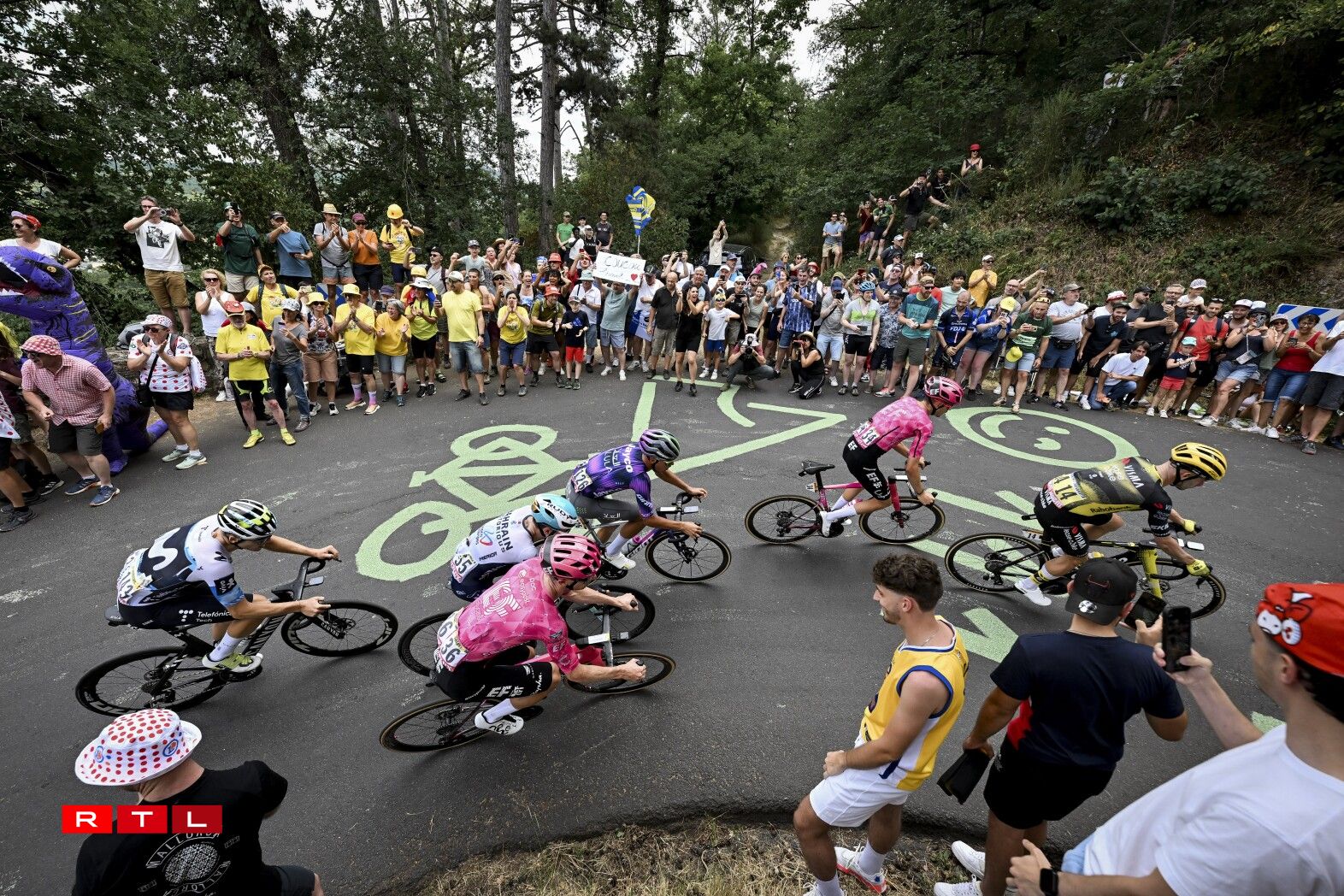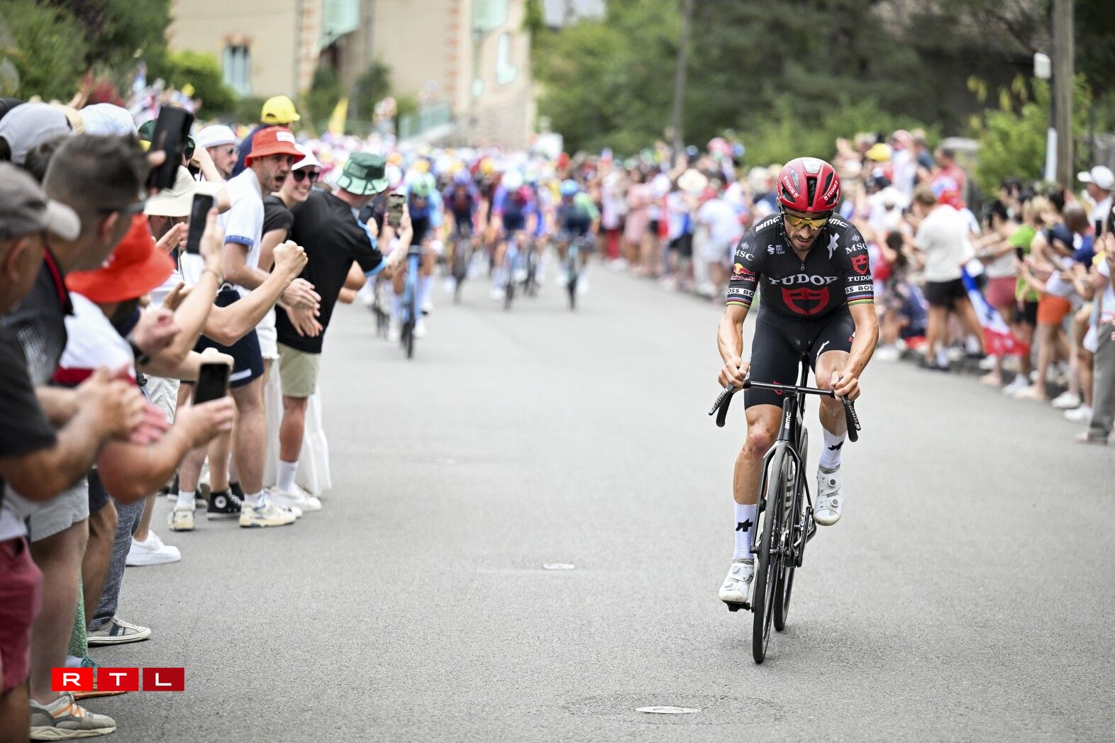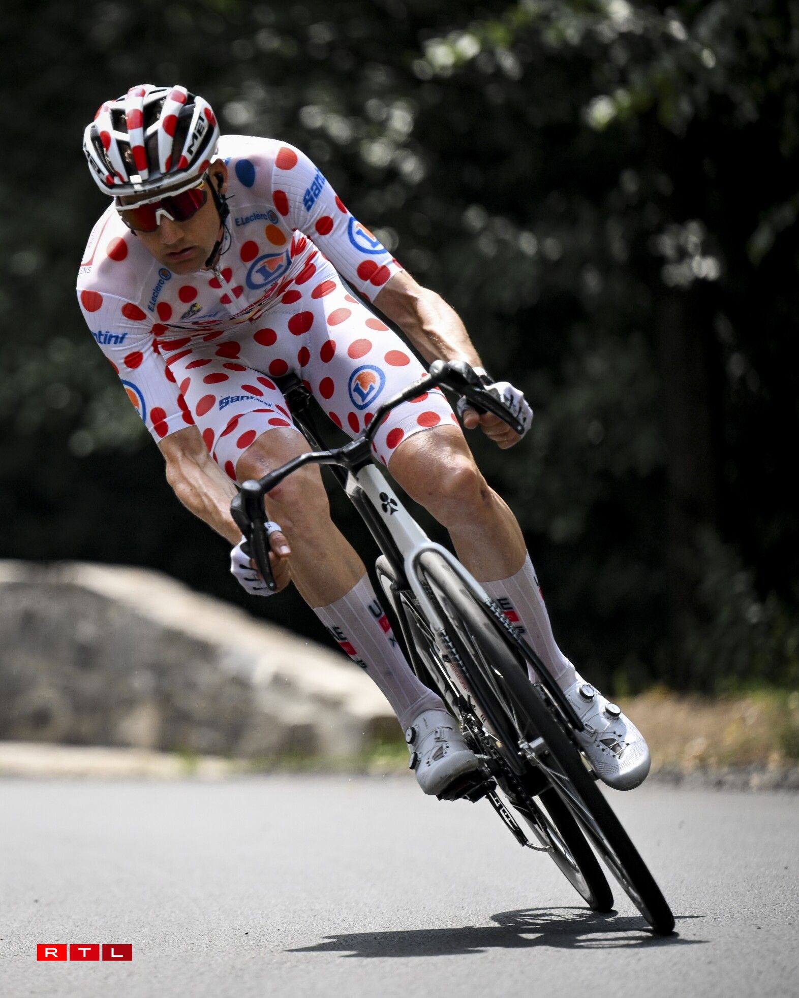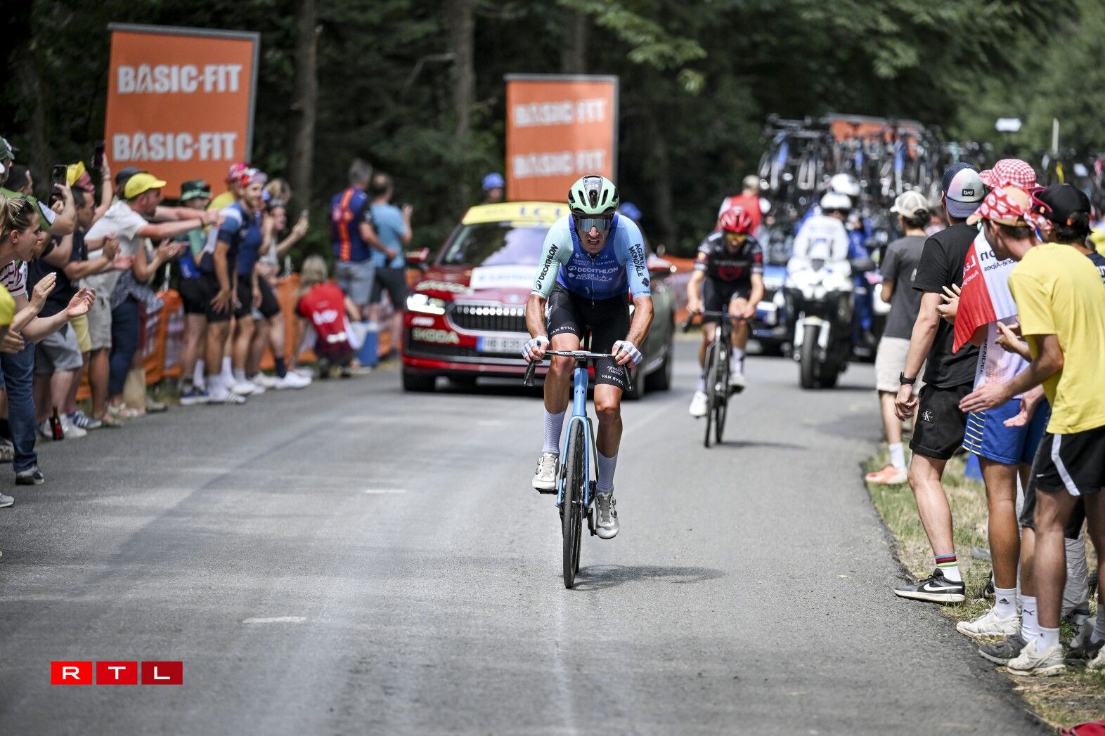 Op der 10. Etapp vun der Grande Boucle goung et iwwer 165,3 Kilometer a 4461 Héichtemeter iwwer 8 Montéeë vun Ennezat op Le Mont-Dore Puy de Sancy. Um franséische Nationalfeierdag huet sech eng grouss Echappée mat 18 Coureure forméiert. Mat dobäi waren ënner anerem de Simon Yates oder och de Ben Healy. De Gros vun hinne konnt sech eng Avance vu ronn 8 Minutten erausfueren. Den Tim Wellens an de Lenny Martinez goufen ënner anerem distanzéiert. De Fransous huet awer genuch Punkten am Bierg gesammelt a krut doduerch de Maillot a Pois.