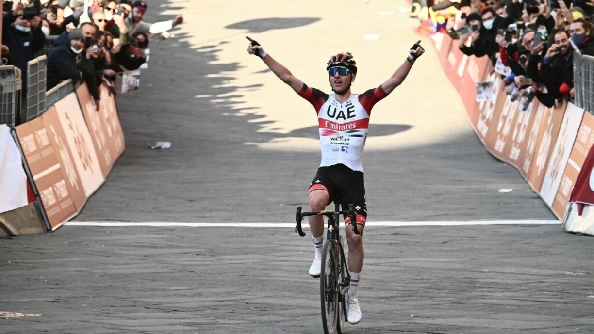 Dee gewënnt domat no bal 5 Stonnen däitlech déi 16. Editioun vun der Strade Bianche virum Alejandro Valverde an dem Kasper Asgreen.