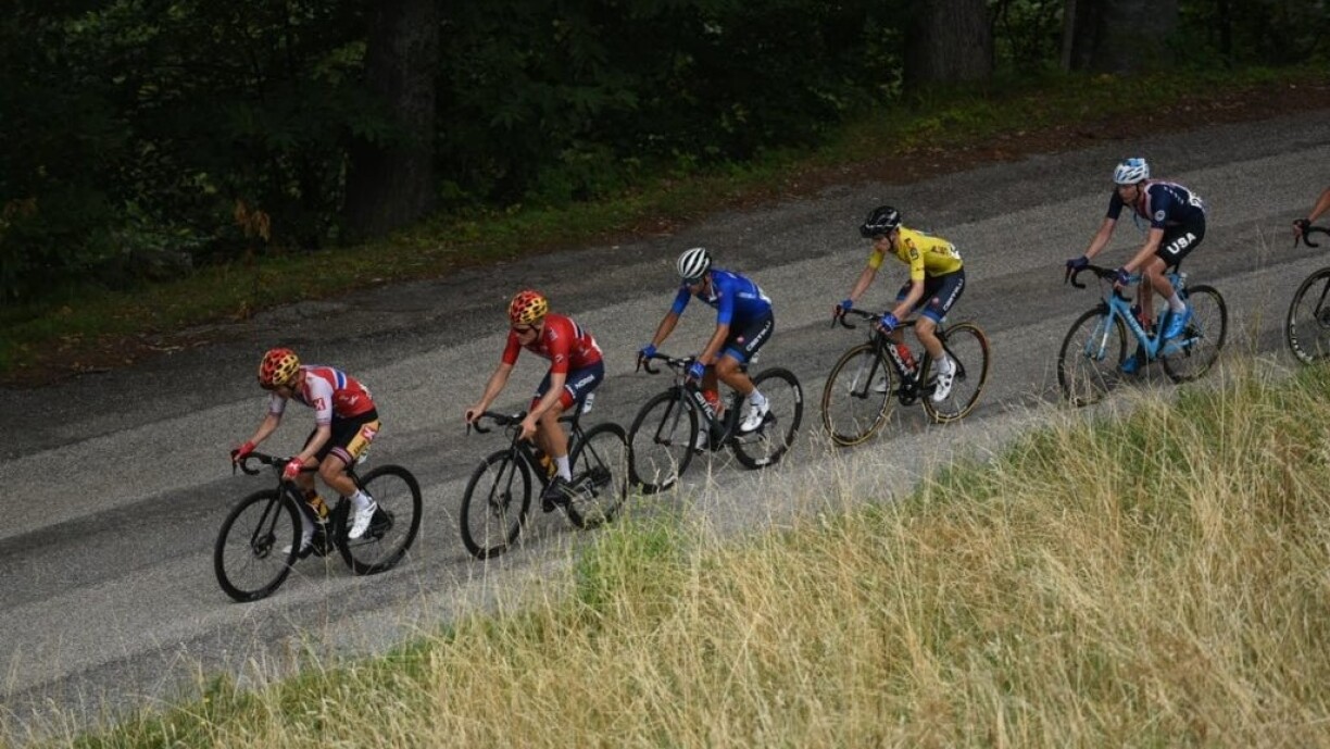 Kuerz duerno koum den 2. Ausräissergrupp an zwou Minutte méi spéit de Peloton zu La Giettaz un. Dorënner och de Michel Ries, deen en Donneschdeg als gudden 13. den Top 10 nëmme just verpasst huet. Den Arthur Kluckers hat als 58. ee Retard vu bal 16 Minutten.