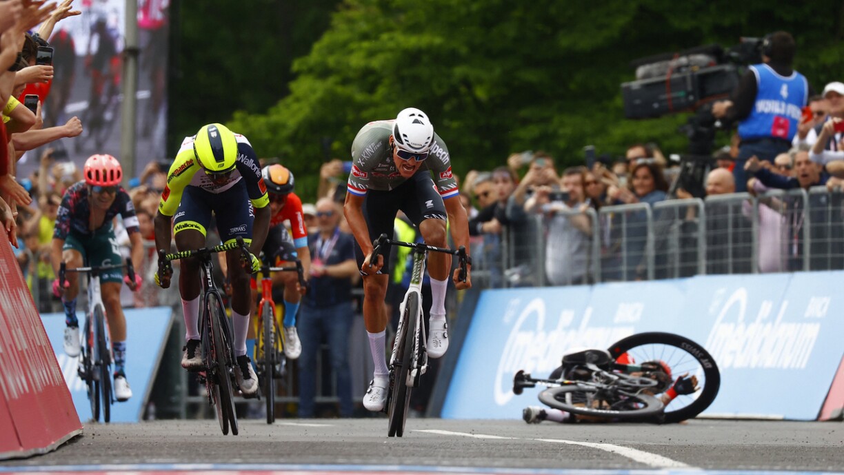 Verschidde Coureuren haten nach probéiert erauszefueren, fir eng Avance op de leschte Kilometer ze kréien, wat hinnen awer net gegléckt ass. Zum Schluss setzt sech de Mathieu van der Poel duerch, dat virum Biniam Girmay an dem Pello Bilbao. E Bemol op dëser Etapp gouf et awer net. E puer Meter virun der Arrivée war nach eng Kéier ze meeschteren an hei koum et am Spëtzegrupp zu enger Chutte vum Caleb Ewan, dee mat ëm d’Victoire gekämpft hat.
