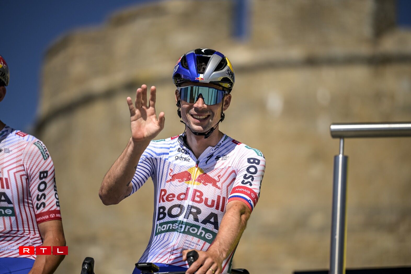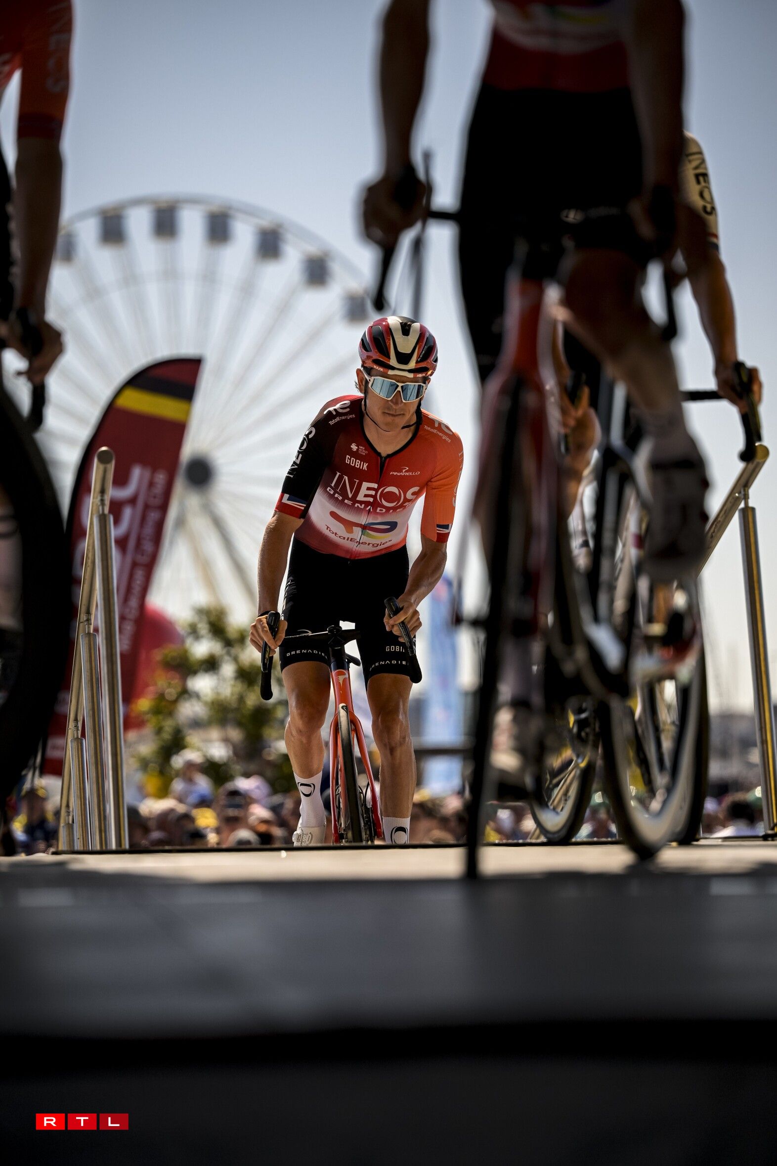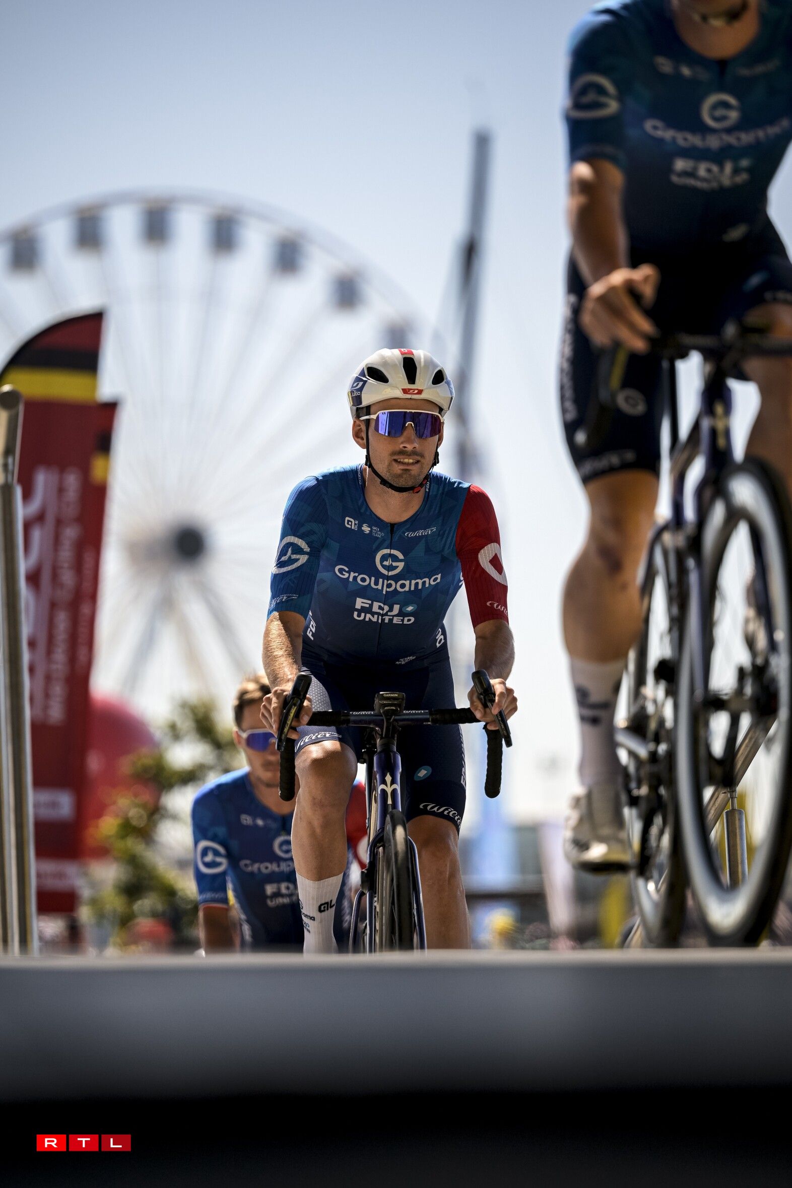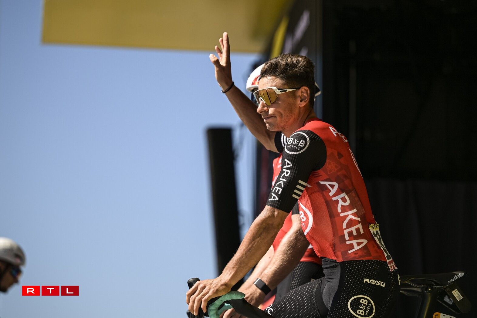 Et huet bis bei Kilometer 55 gedauert, bis d‘Echappée vum Dag sech forméiert hat. An där ware 5 Leit dran: den Alex Baudin, de fréieren Tour de France Gewënner Geraint Thomas, de Marco Haller, den Ewen Costiou an den Ivan Garcia Cortina. D‘Avance vun dësem Grupp ass awer just op knapps 2 Minutten erop gaangen. Den Train am Peloton hunn haaptsächlech d‘Ekipp Alpecin-Deceuninck vum Maillot Jaune Mathieu van der Poel assuréiert, an UAE vum Tadej Pogacar.