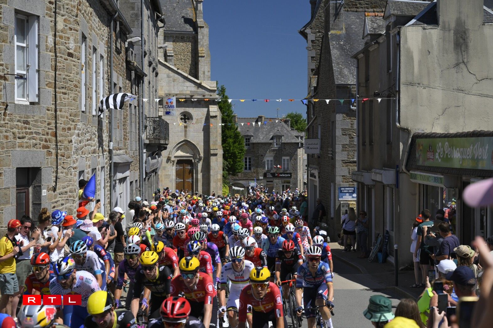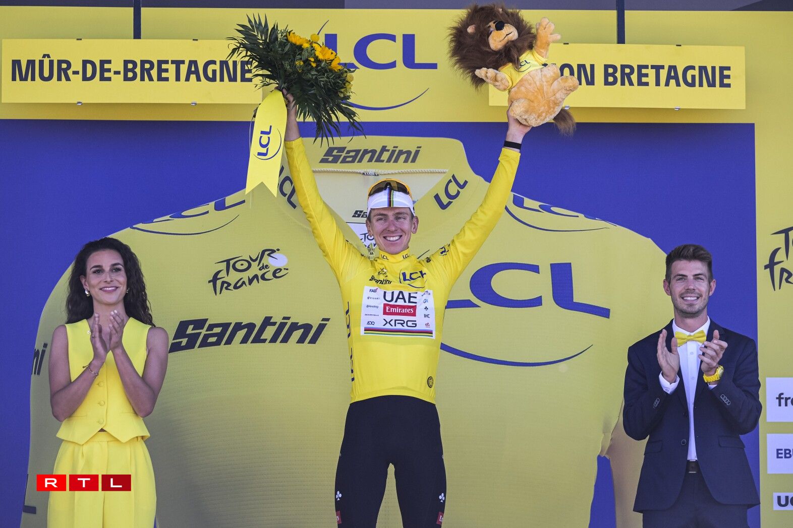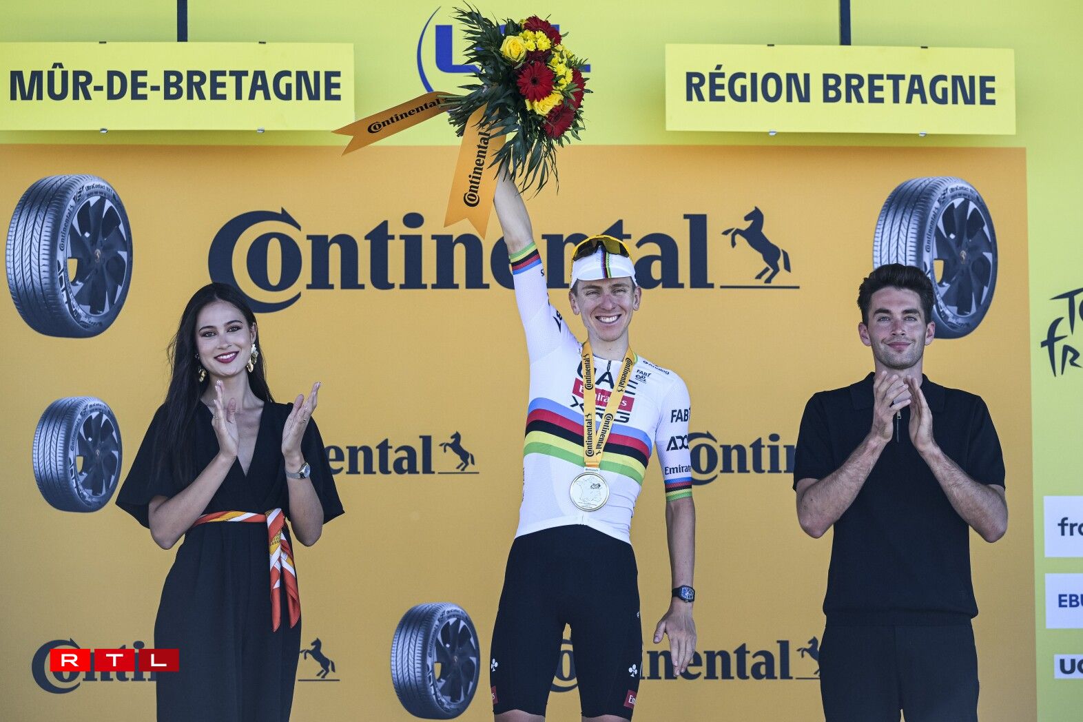 De Weltmeeschter Tadej Pogacar huet sech uewen zu Mûr-de-Bretagne, knapps géint de Jonas Vingaard behaapt. De Slowen iwwerhëlt elo och nees de Maillot Jaune. Hien huet 54 Sekonnen Avance op de Remco Evenepoel.