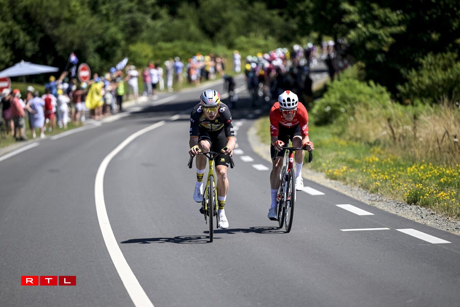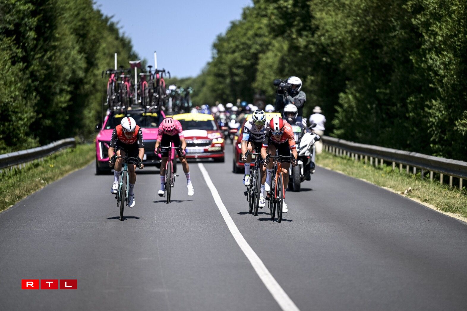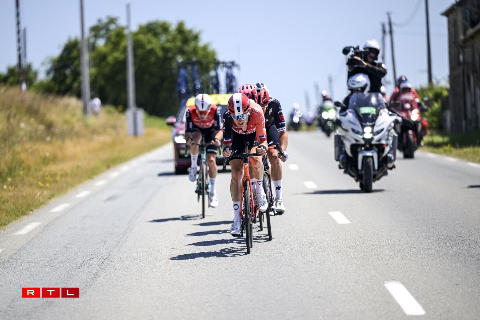 Virun allem déi franséisch Ekippen a Coureuren wollten, nodeems se gëschter de gudde Coup verpasst haten, haut déi gutt Echappée erwëschen. Dat war awer net esou einfach. D‘Vitess am Peloton war op en Neits extreem héich. An der éischter Stonn ass eng Moyenne vun 53,7 Kilometer gefuer ginn. Dat ass bis elo Rekord an dësem Tour.