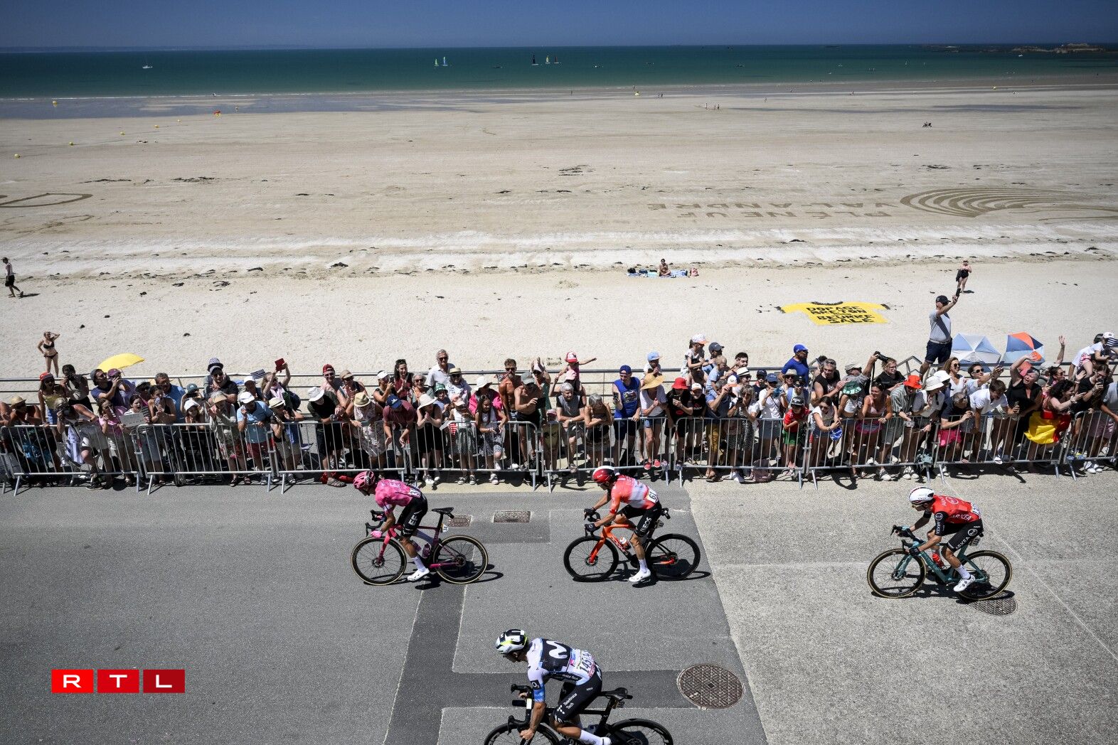 Eng 42 Kilometer virun der Arrivée huet de Maco Haller an der Echappée musse lass loossen. D‘Avance op de Peloton ass och ëmmer méi kleng ginn. Virun der Côte du Village de Mûr de Bretagne, 20 Kilometer virun der Arrivée, hunn d‘Equipiere vum Jonas Vingeaard am Peloton den Tempo eropgesat an d‘Avance vun der Echappée ass weider erof gaangen. An där Echappée, hunn den Thomas an de Garcia Costia musse lass loossen a just den Costiu ass vir bliwwen. De Fransous ass nach mat enger Avance vun 20 Sekonnen, beim éischte Passage, iwwer d‘Ligne d‘Arrivée zu Mûr-de-Bretagne gefuer.