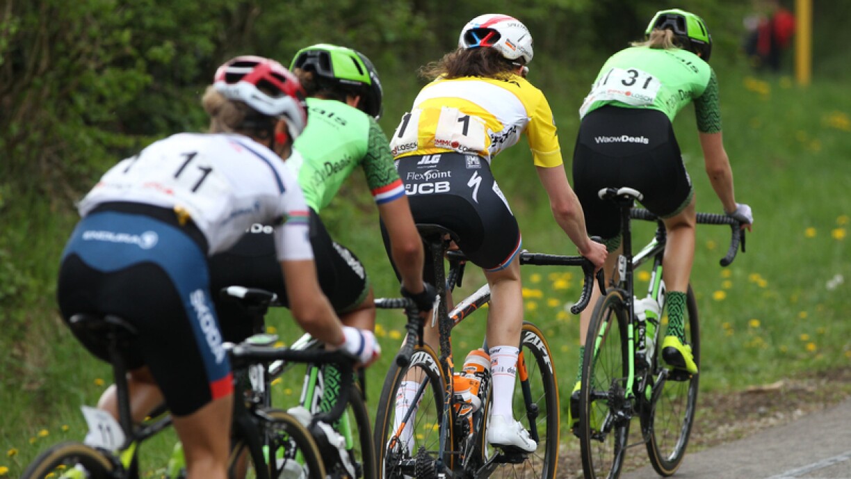 D’Sportlerin vu SD Worx hat eng Avance vun 38 Sekonnen op en éischte Verfolgergrupp. D’Plazen 2 an 3 si vir Chiara Consonni aus Italien an d’Marianne Vos aus Holland.