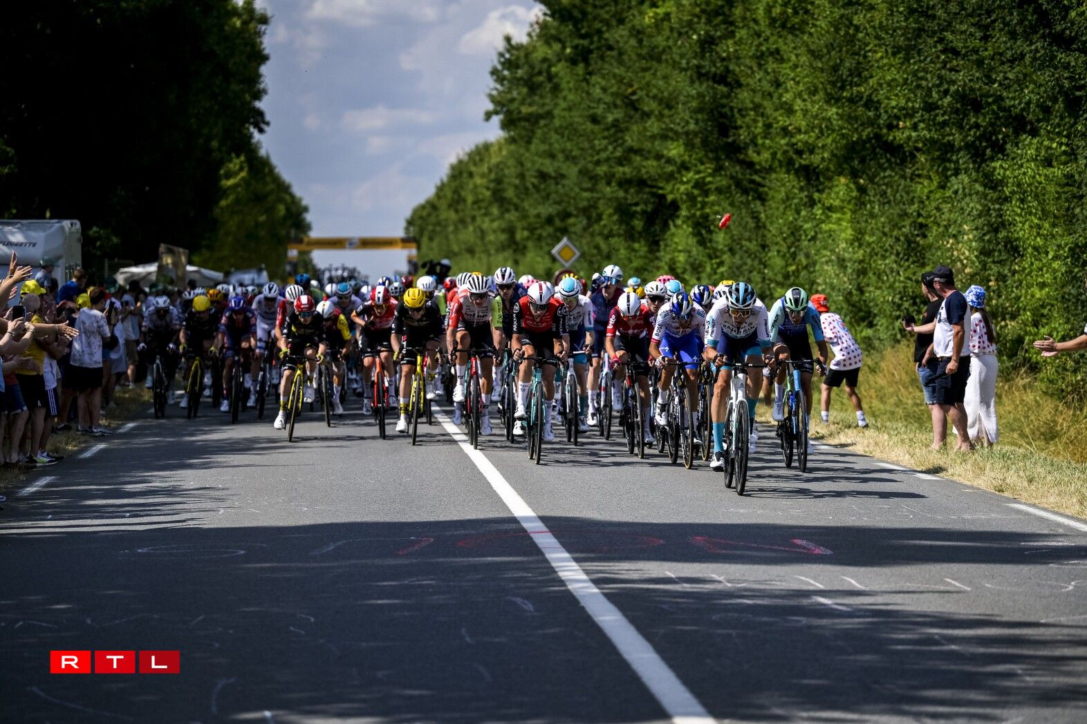 Op de leschte Meteren ass et dann awer nach zum Massesprint komm. De Belsch Tim Merlier war um Sonndeg dee Séiersten virum Jonathan Milan, dee domatt säin Maillot Vert ka verdeedegen. Déi drëtte Plaz ass fir den Arnaud de Lie.