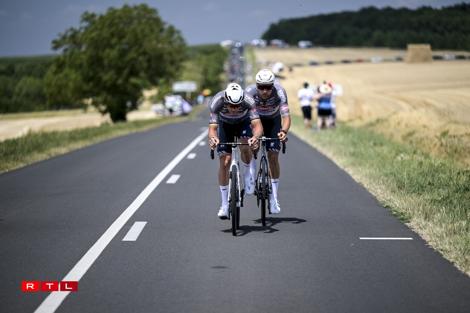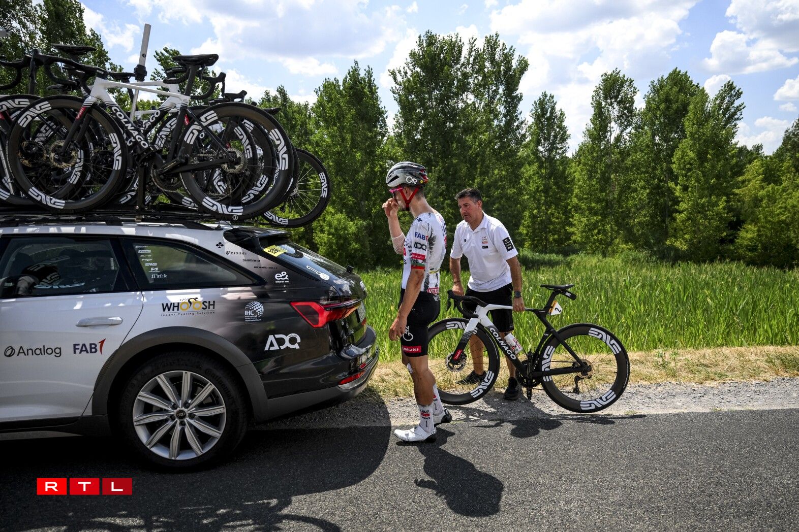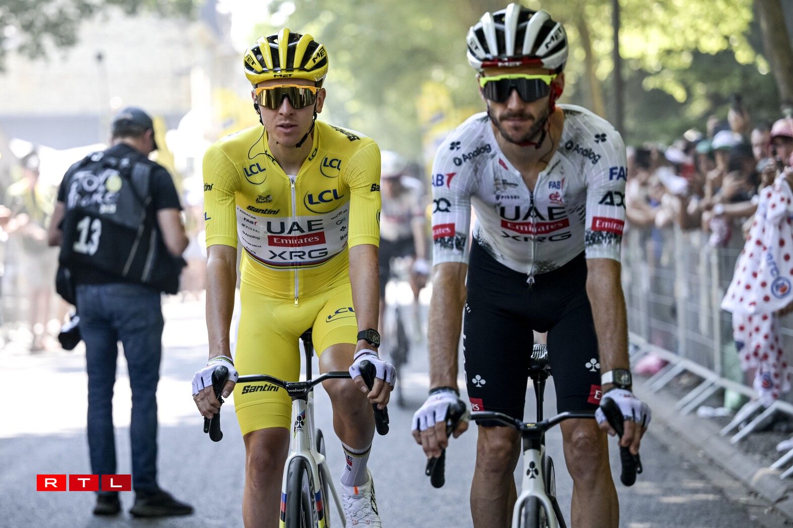 Ronn 80 Kilometer virun der Arrivée gouf et Réckschlag fir dem Tadej Pogacar säin Team. De João Almeida huet d’Course wéinst enger gebrachener Rëpp missten opginn.