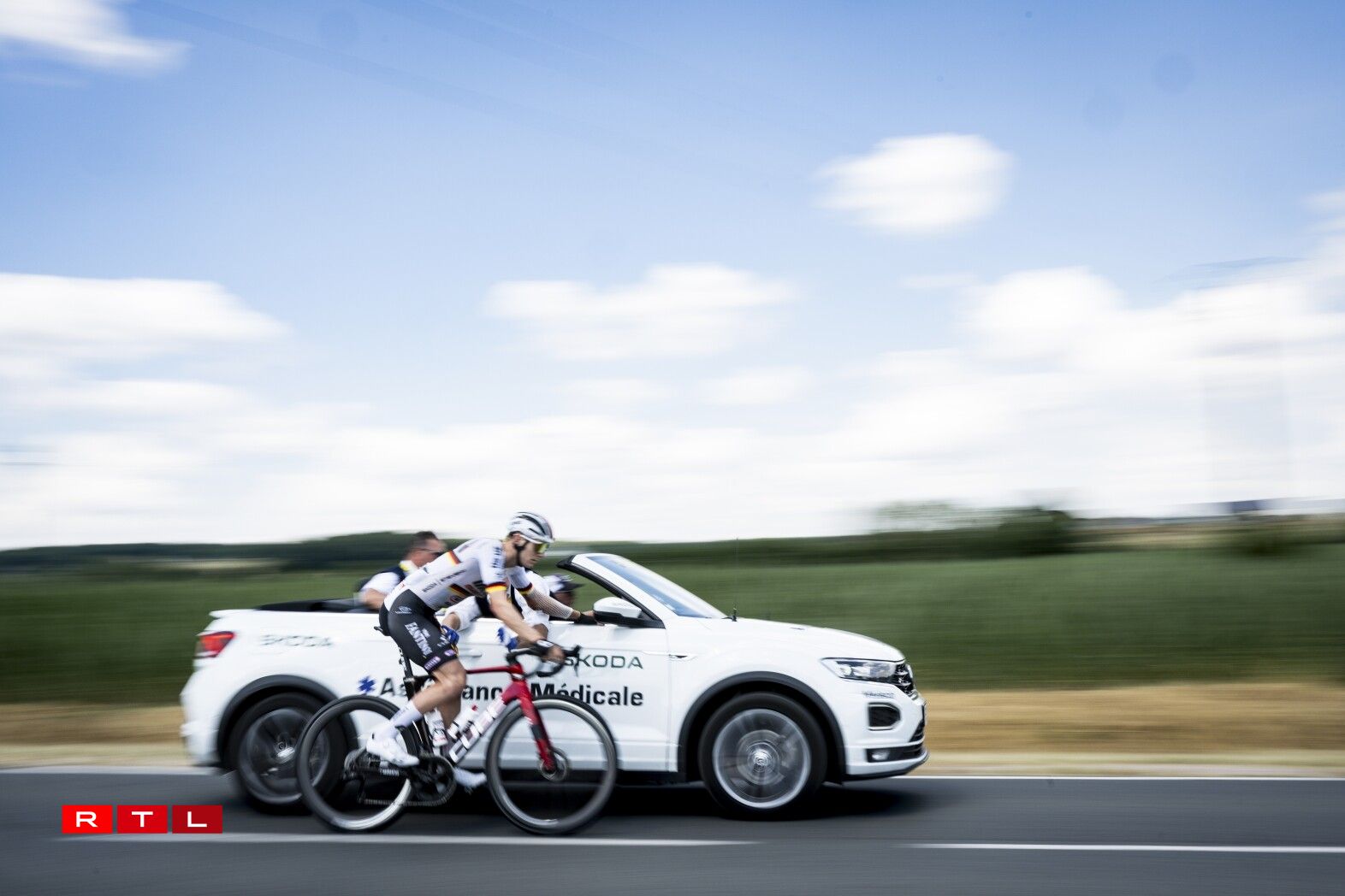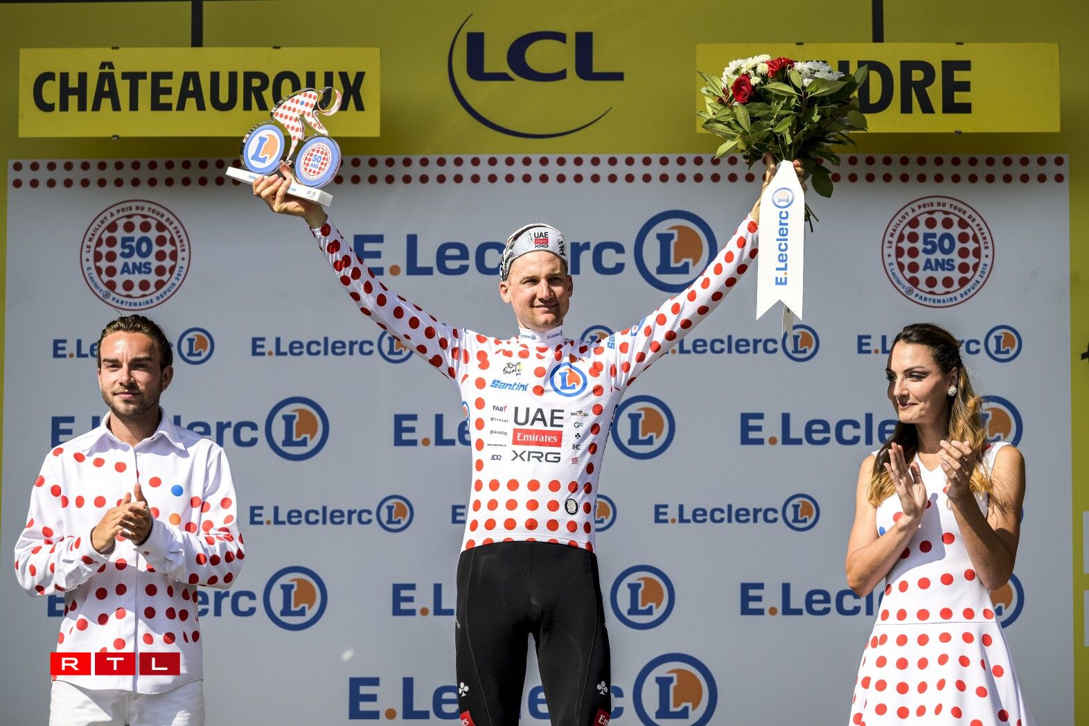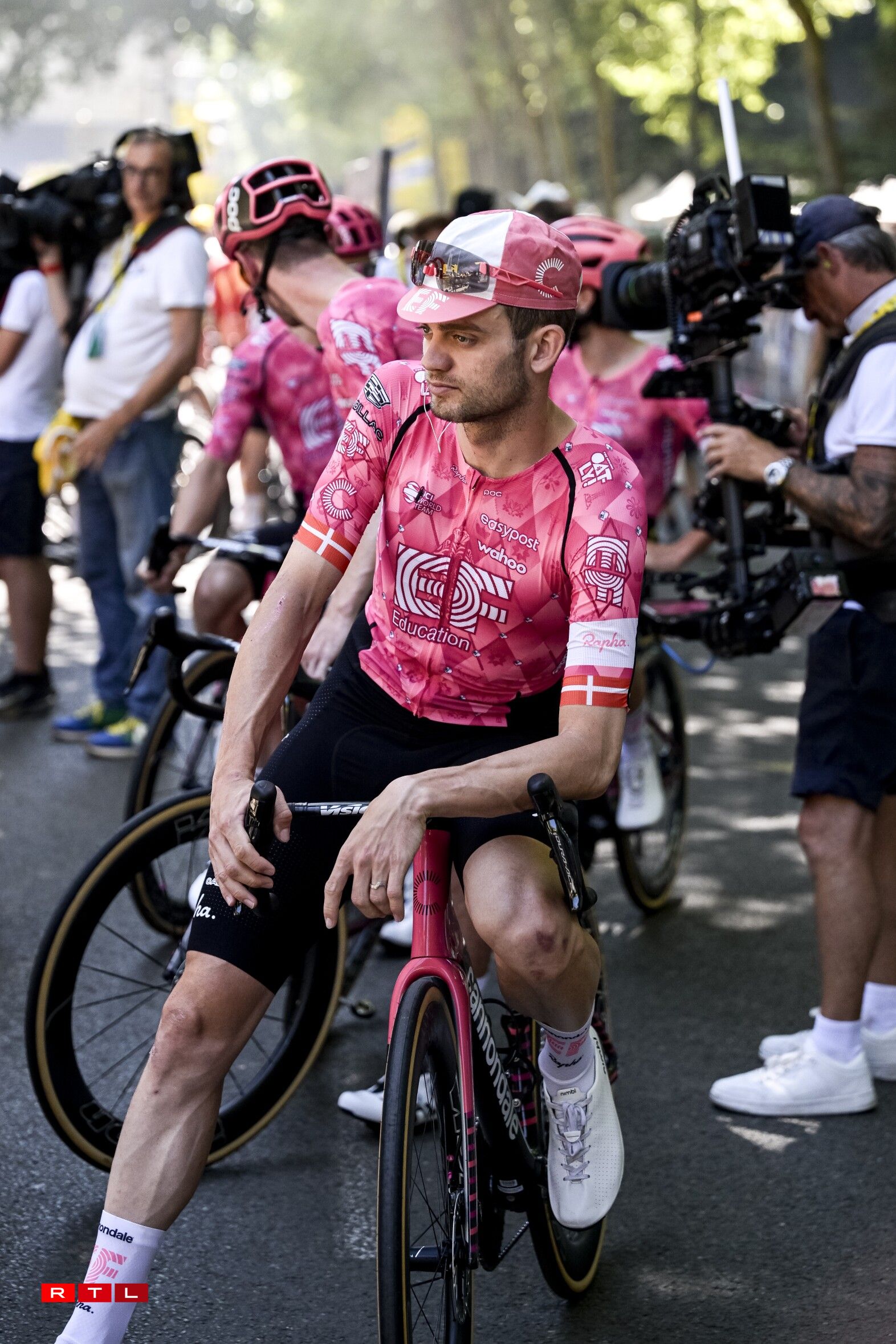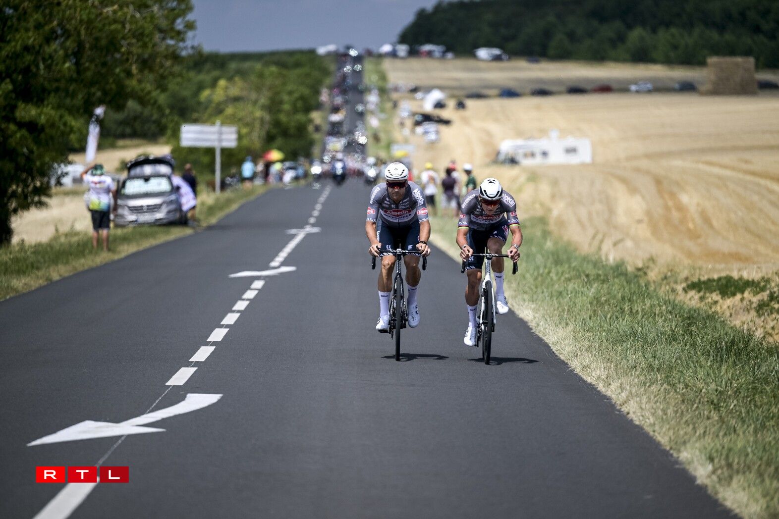 Ronn 80 Kilometer virun der Arrivée gouf et Réckschlag fir dem Tadej Pogacar säin Team. De João Almeida huet d’Course wéinst enger gebrachener Rëpp missten opginn.